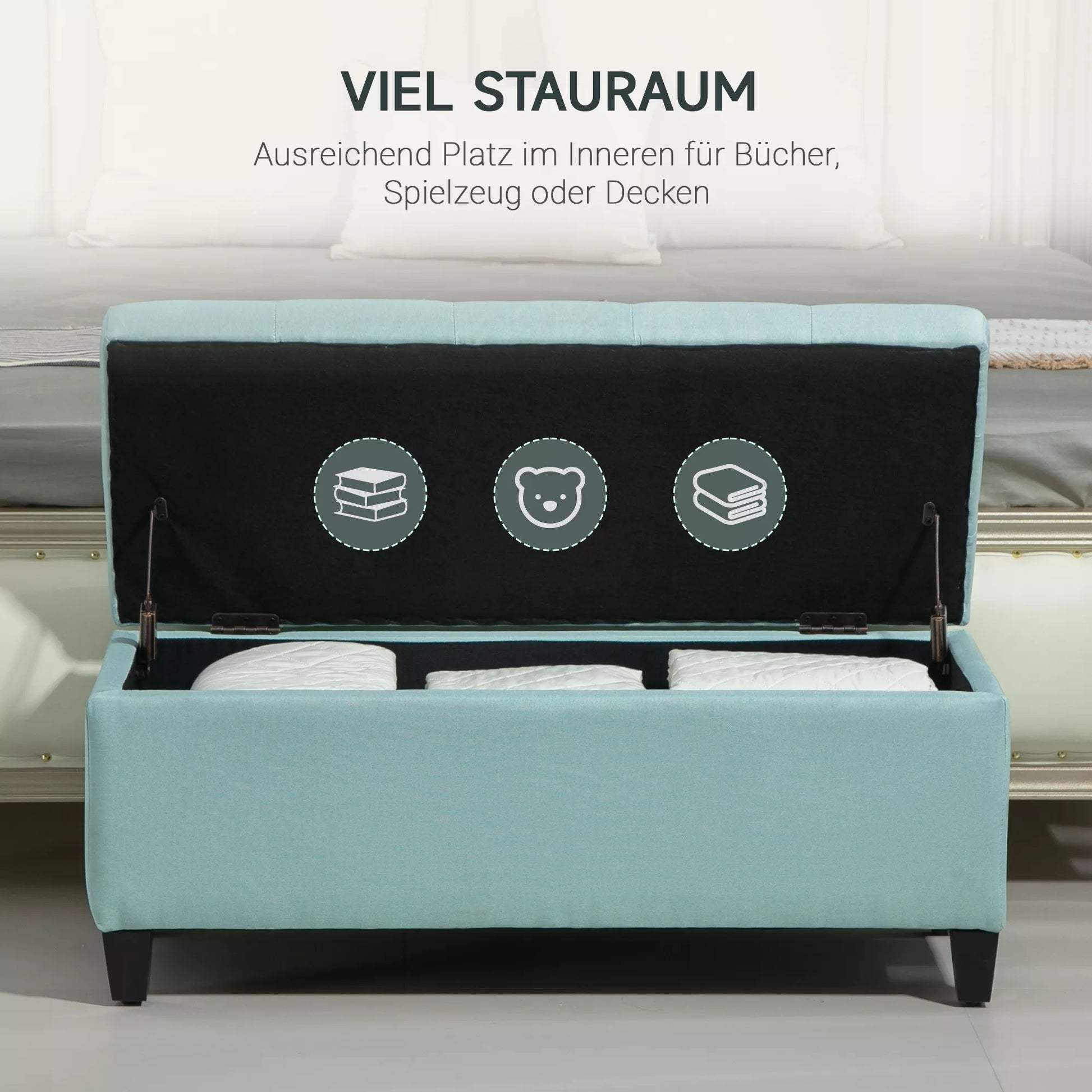 Sėdynė, minkštas suolas su daiktadėže, lininio tipo poliesteris, kaučiukmedžio mediena, 100 x 40 x 44 cm, žalia