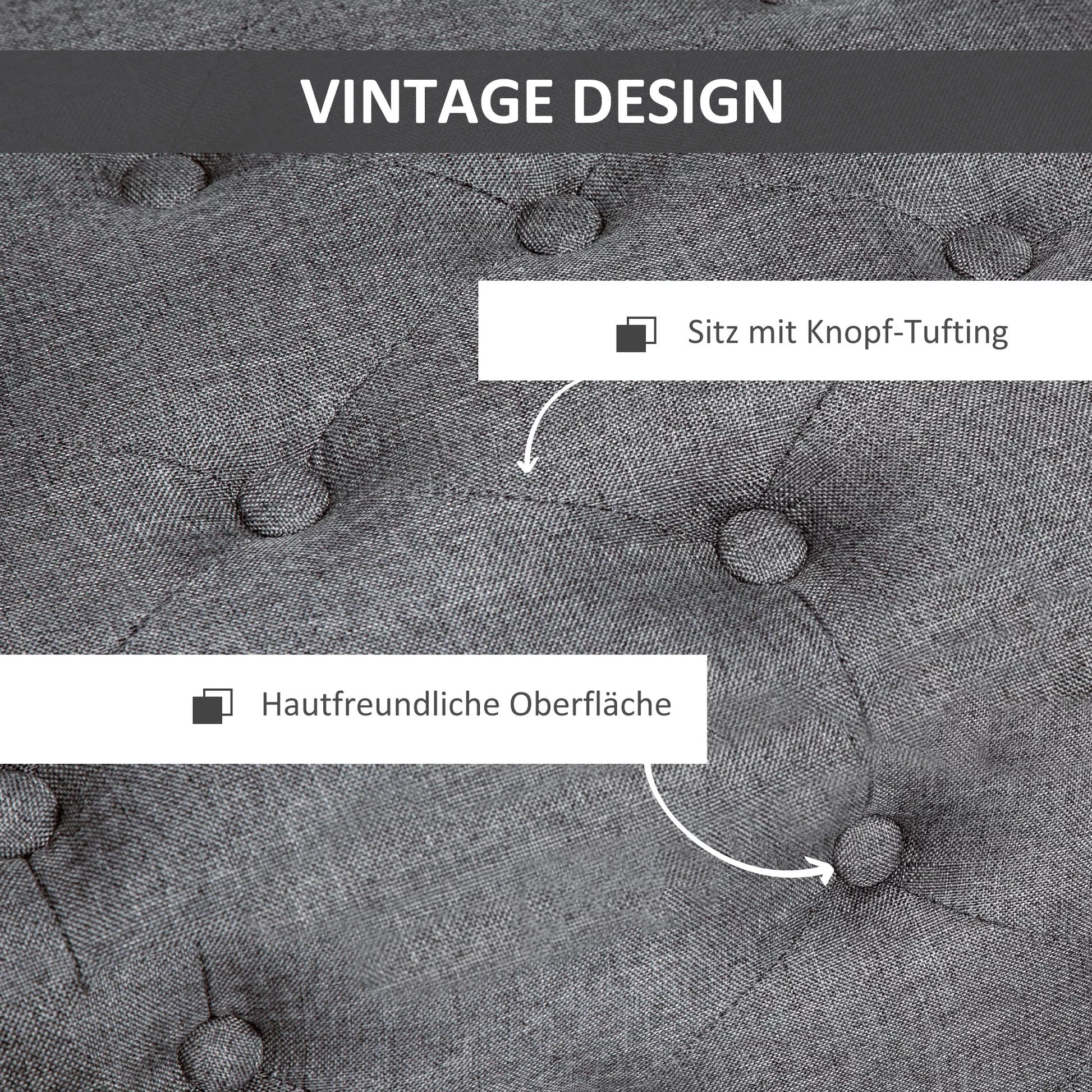 Su šia [BRAND NAME] suoliuku net paprasta sėdėjimo vieta taps akcentu. Patrauklūs, sagomis puošti elementai ir kvėpuojantis audinys suteikia jūsų namams vintage žavesio. Su daug vietos daiktams viduje, šis suoliukas yra elegantiškas ir praktiškas pasirinkimas papildomai sėdėjimo vietai prieškambaryje, svetainėje ar miegamajame.