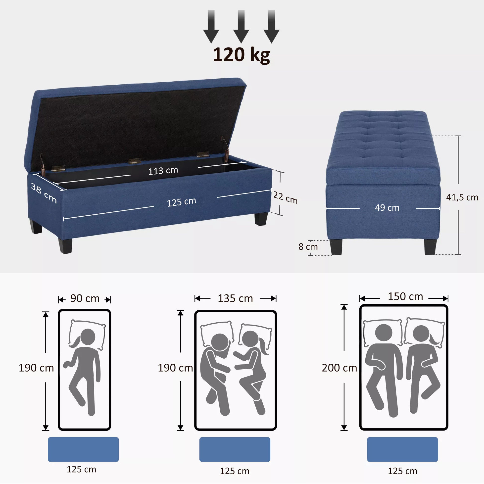 - ✔ Bendri matmenys: 125 ilgis x 49 plotis x 41,5 aukštis cm