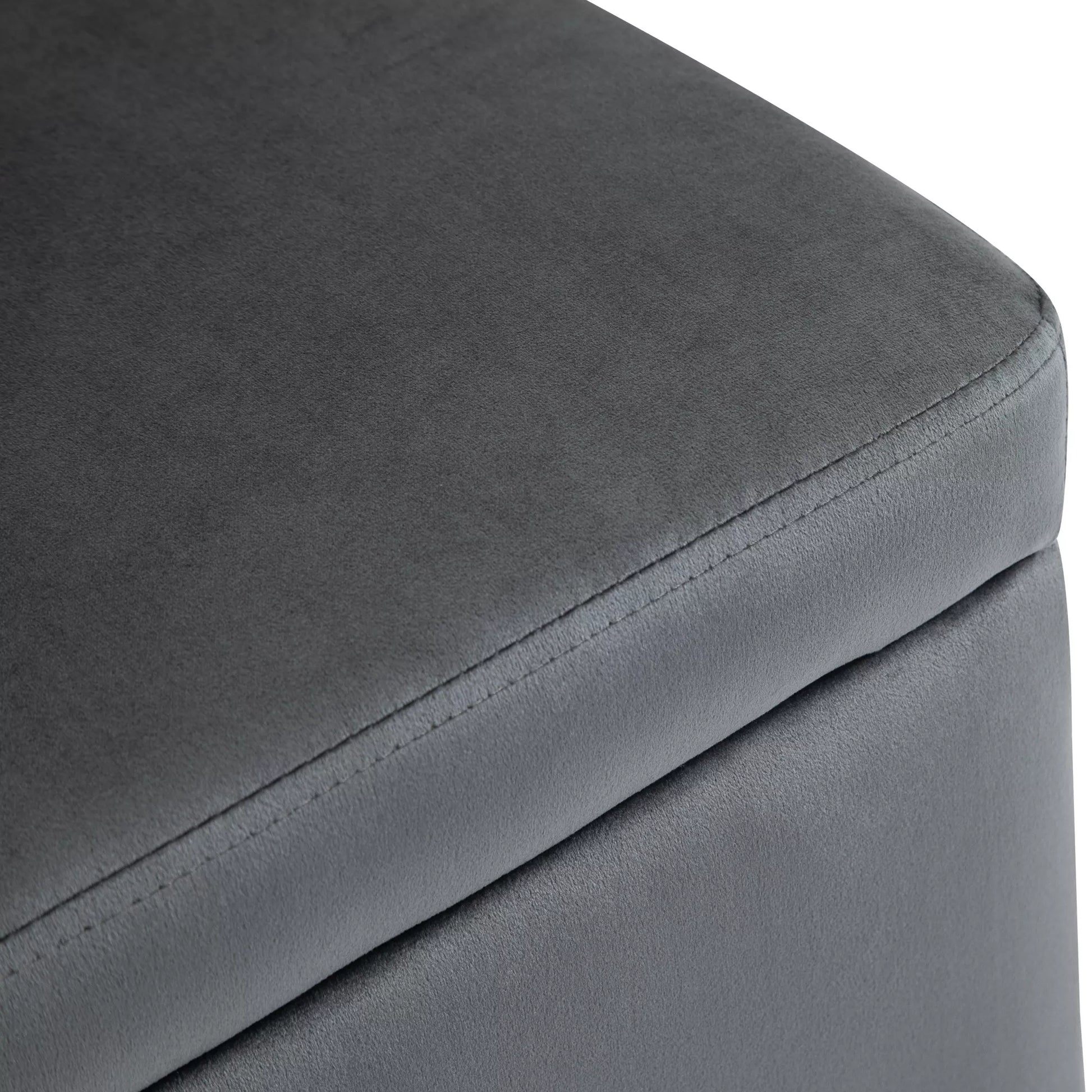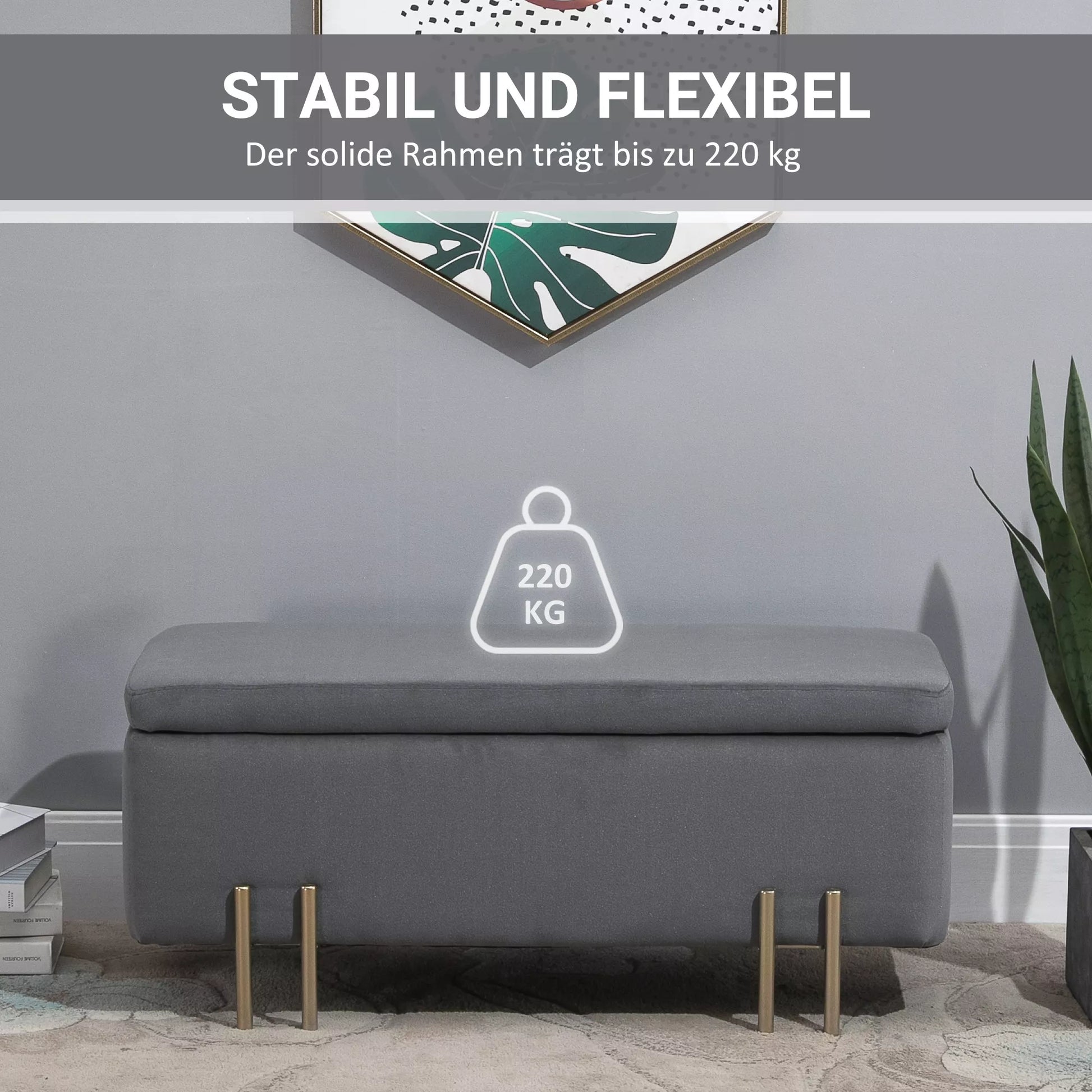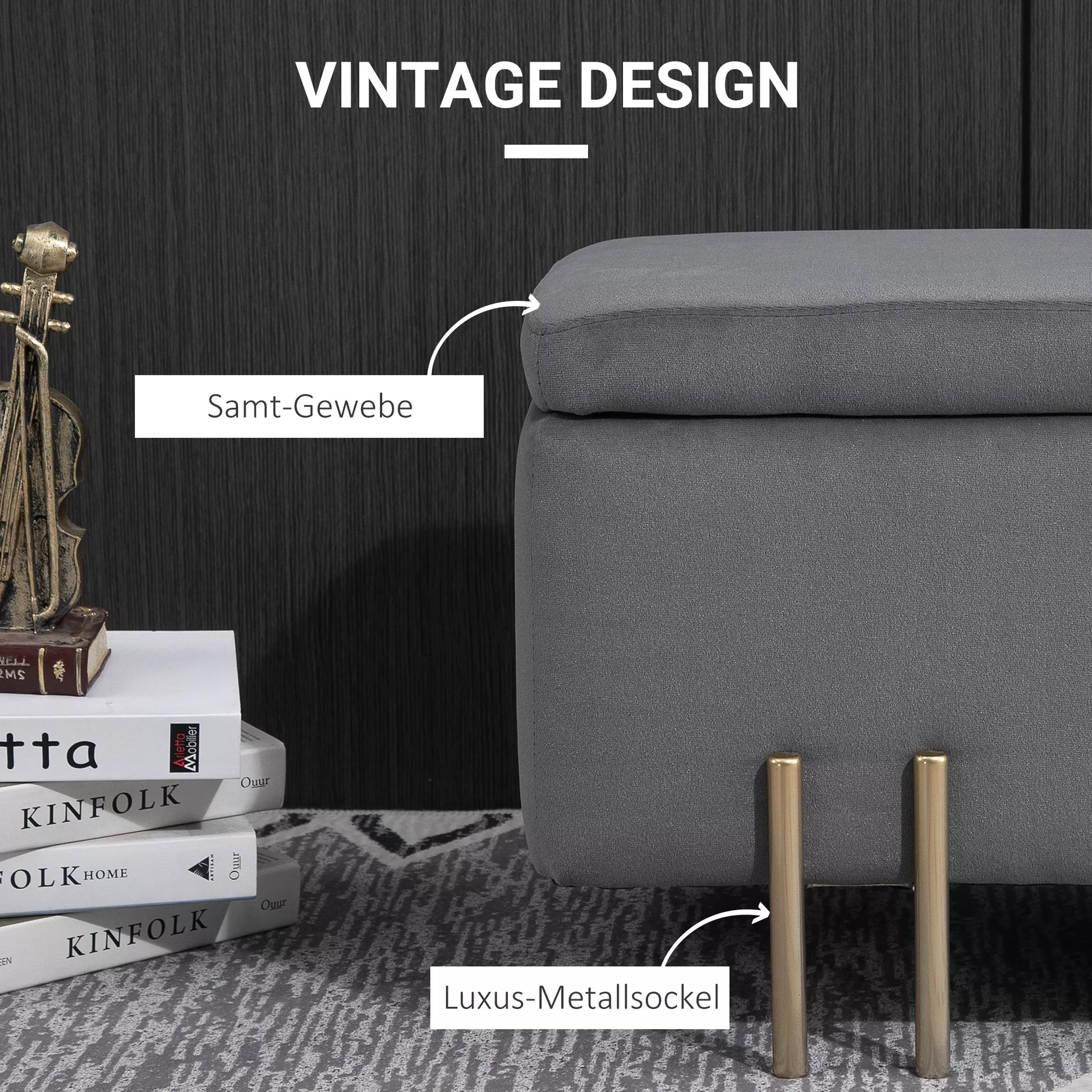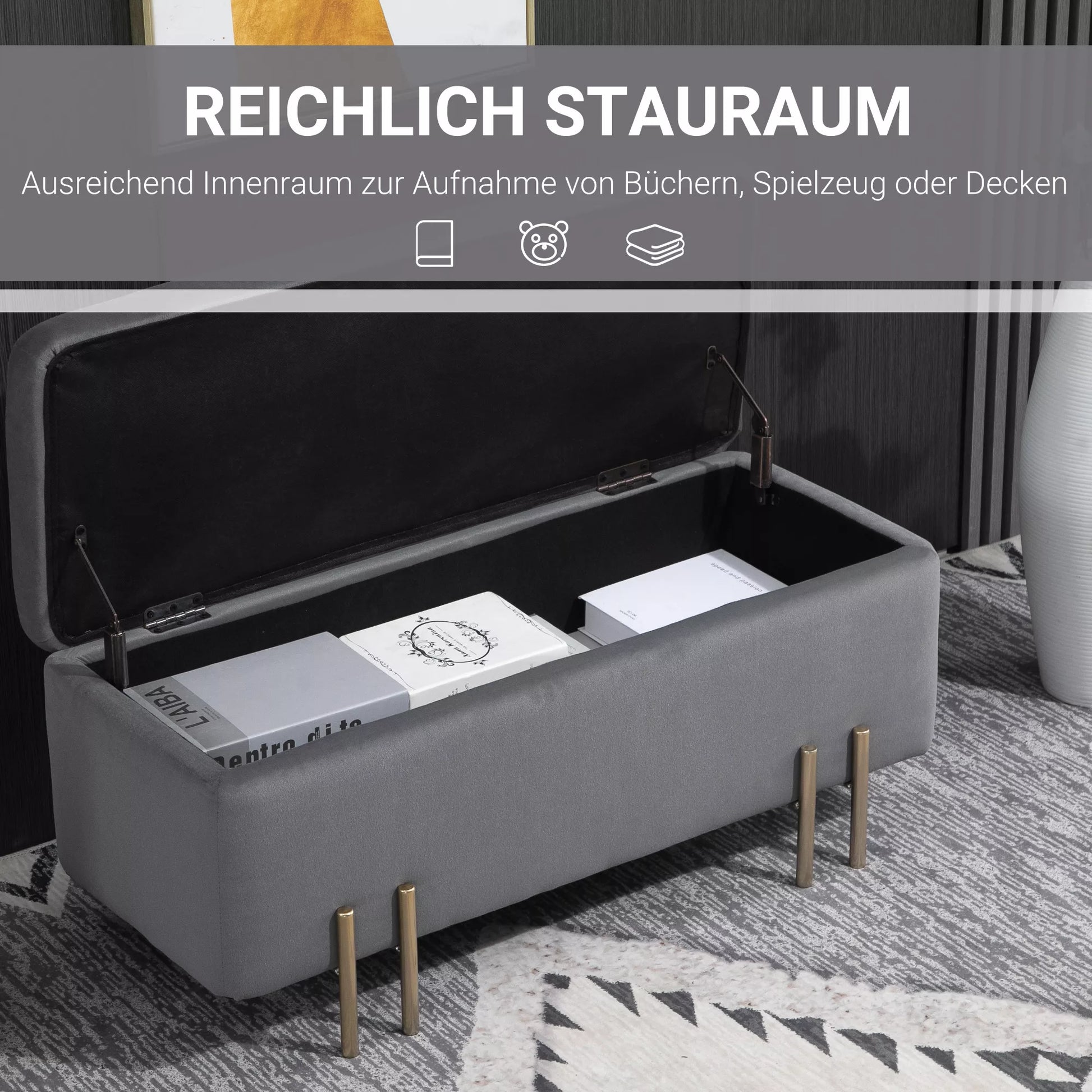 Suolas su daiktadėže, paminkštintas su aksomo išvaizda, sėdimoji skrynia su metalinėmis kojomis, skrynios formos suolas svetainei, miegamajam, koridoriui, 100 x 40 x 42 cm, tamsiai pilkas