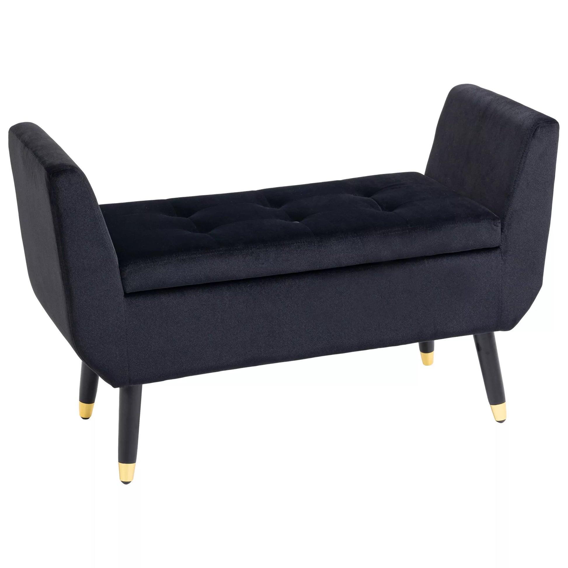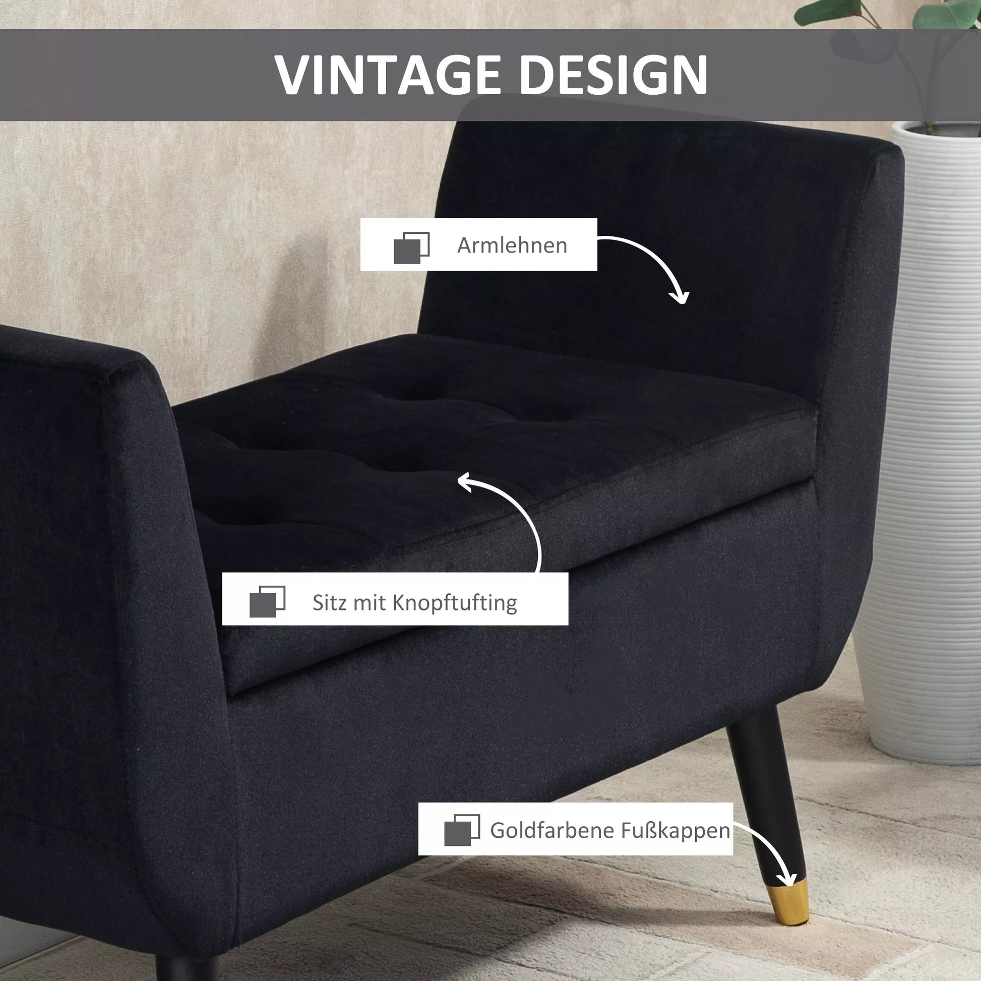 Suoliukas su daiktadėže, porankiais, paminkštintas, su aksomo išvaizda, talpinė skrynios formos suoliukas su medinėmis kojelėmis, tinkamas svetainei, miegamajam, koridoriui, 107 x 42 x 65 cm, juodas