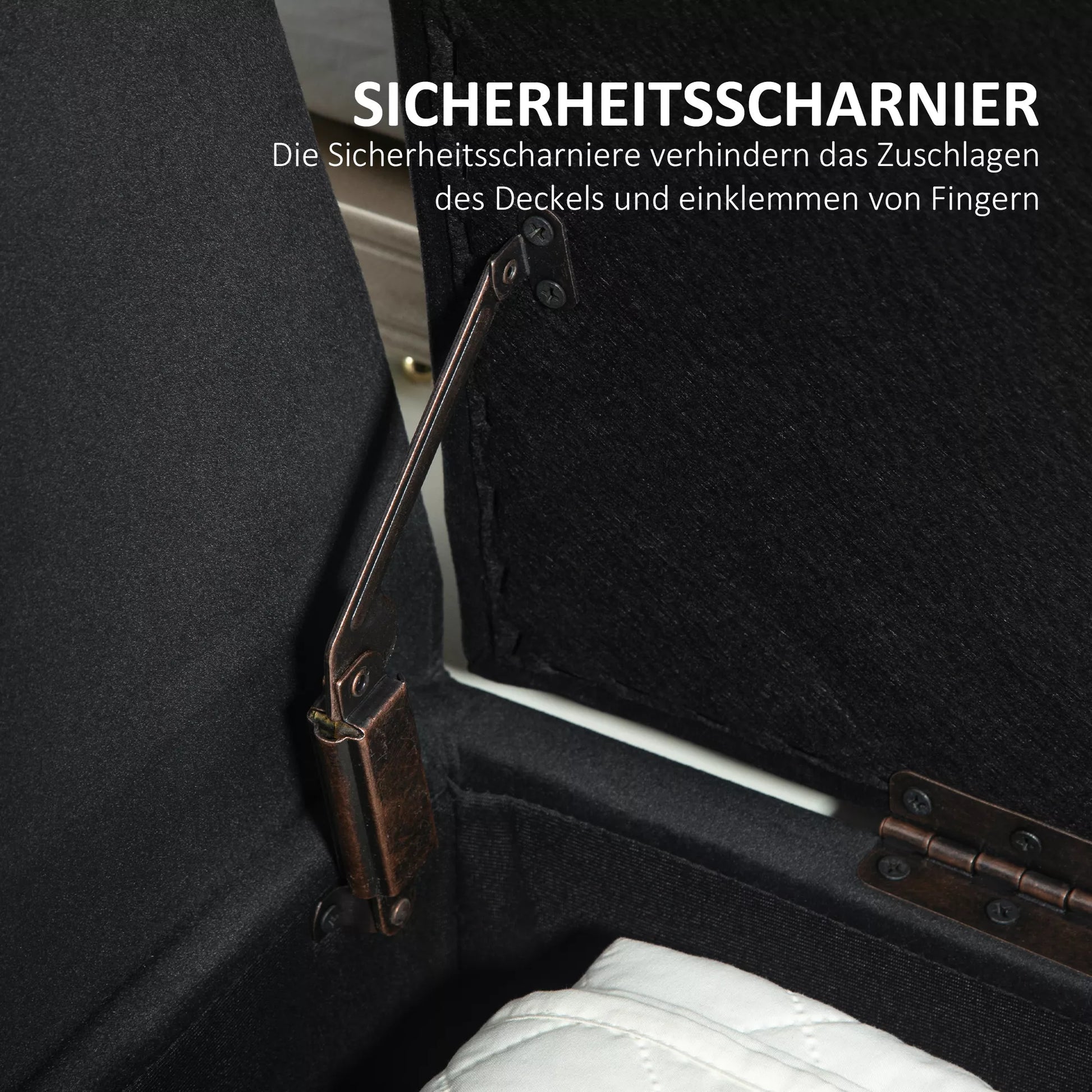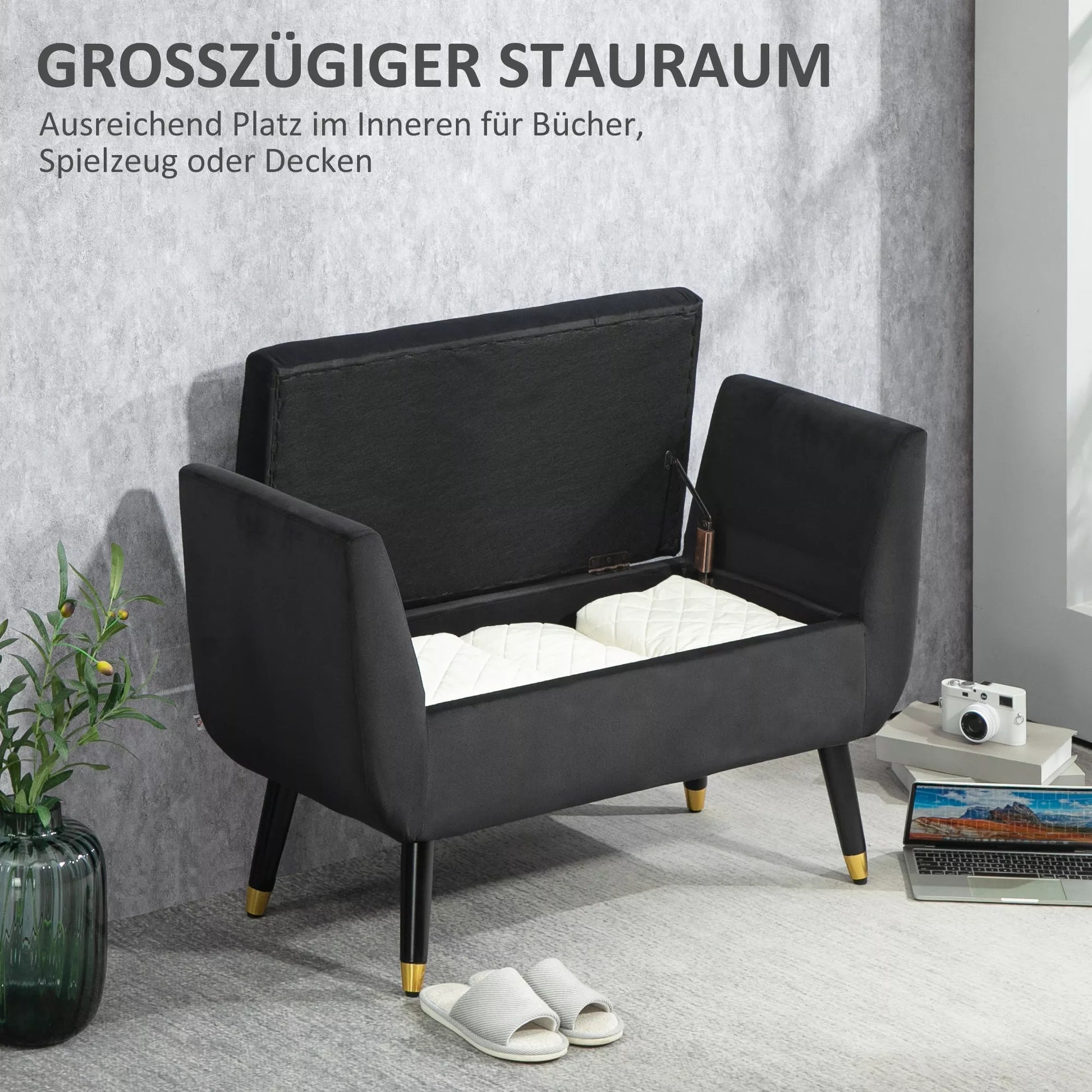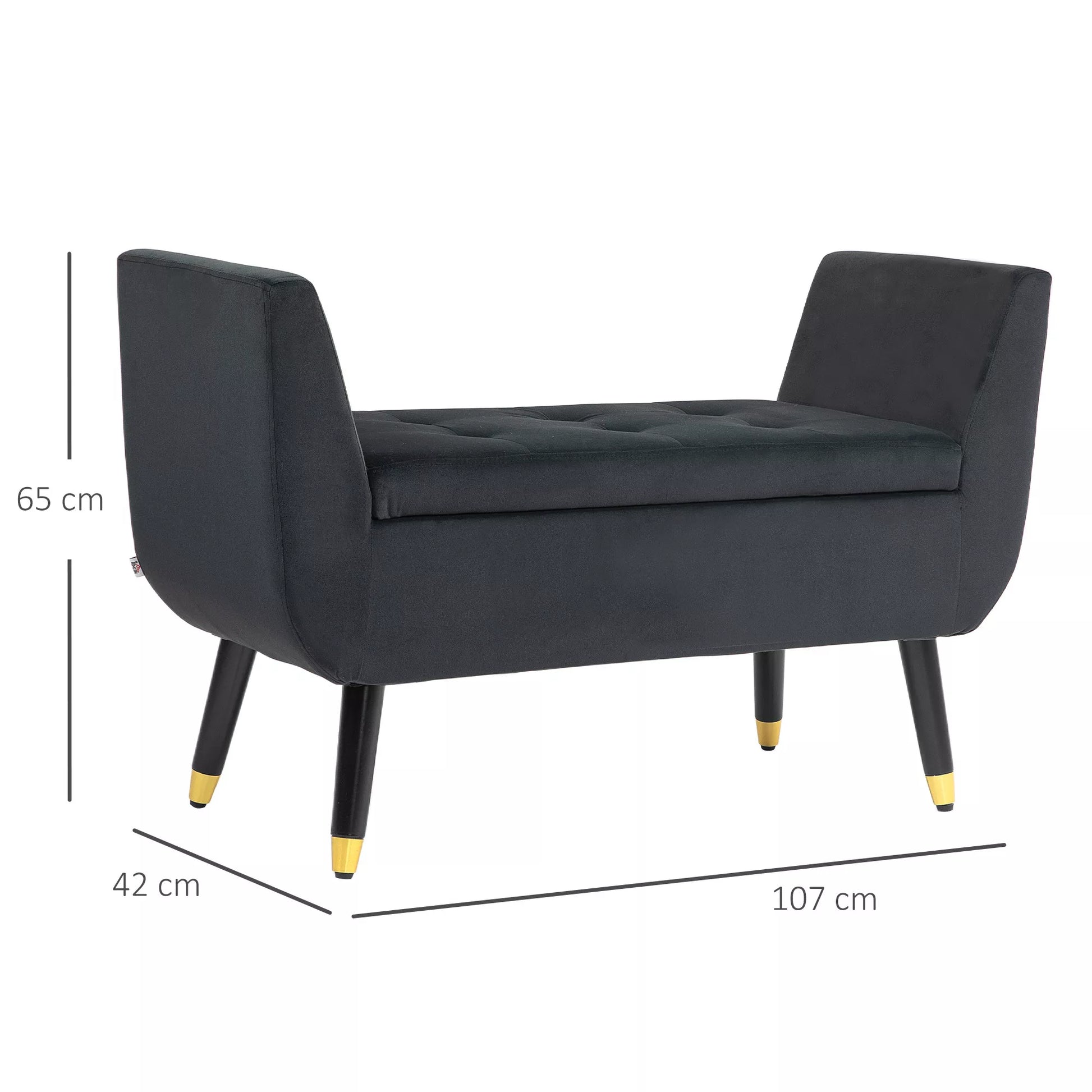 Sėdynė su daiktadėže ir porankiais, skrynios tipo suolas, aksominis poliesteris, guminės medienos, tamsiai pilka, 107 x 42 x 65 cm