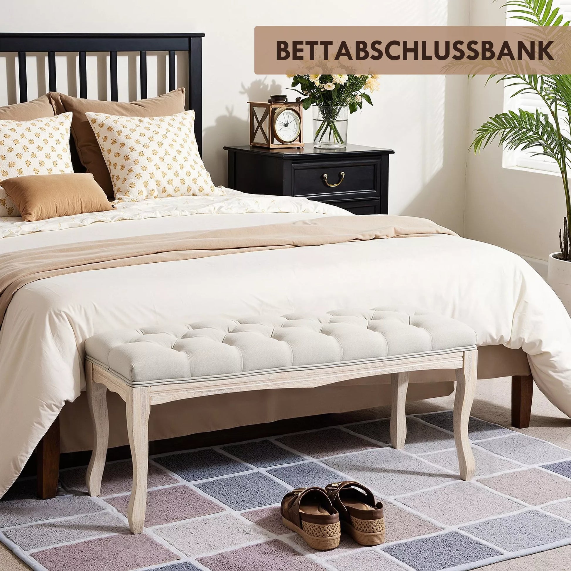 Minkštas suoliukas su lininiu užvalkalu, suoliukas prie lovos su mediniu rėmu, batų suoliukas miegamajam, svetainei, koridoriui, 110 x 40 x 48 cm, smėlio spalvos