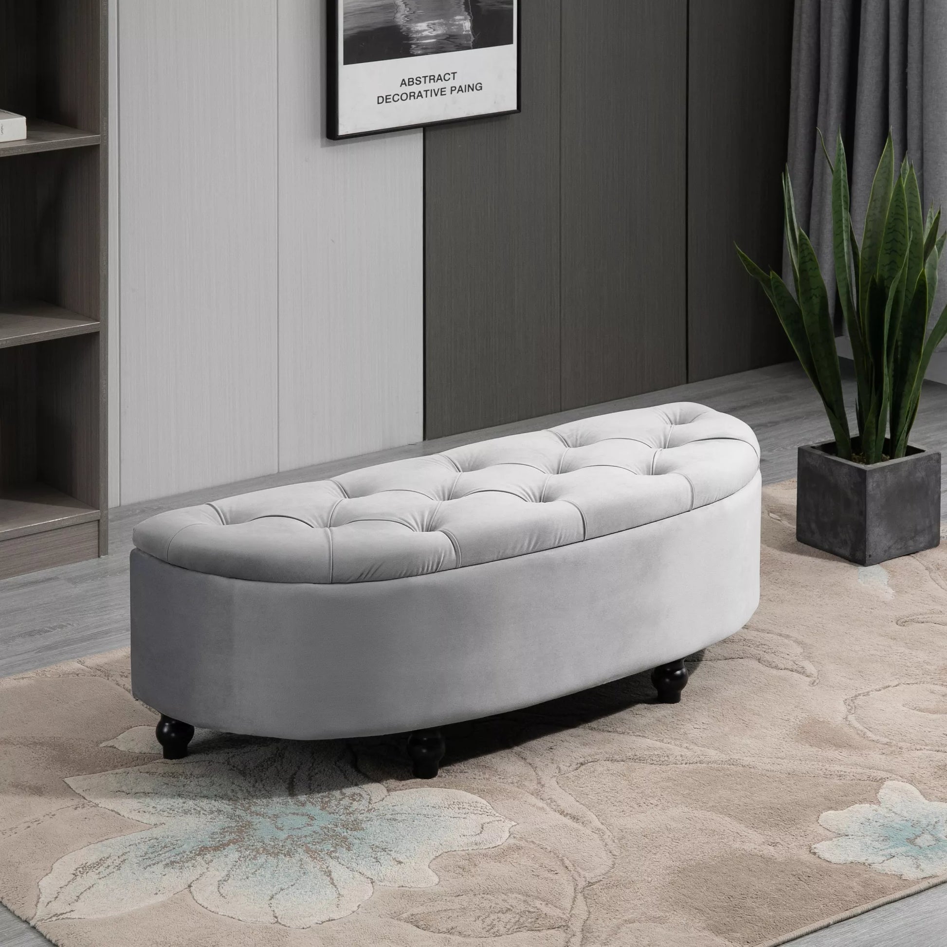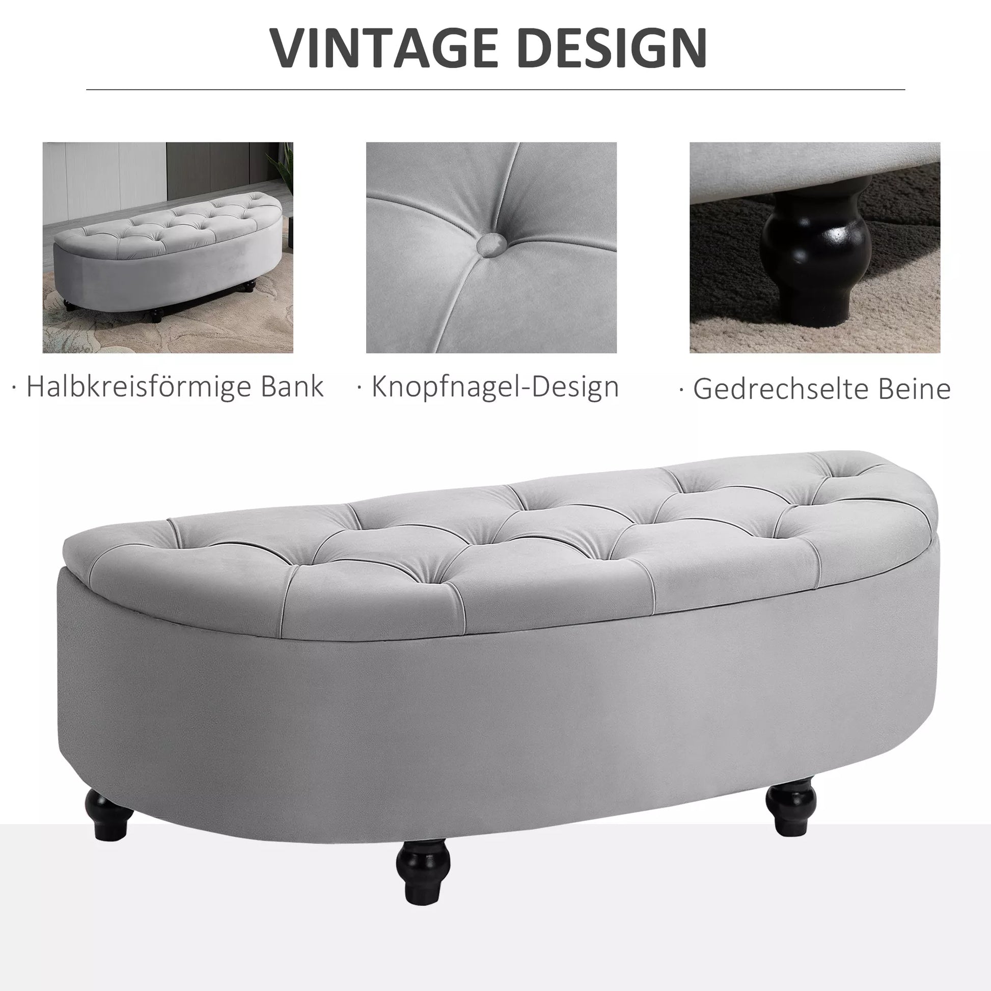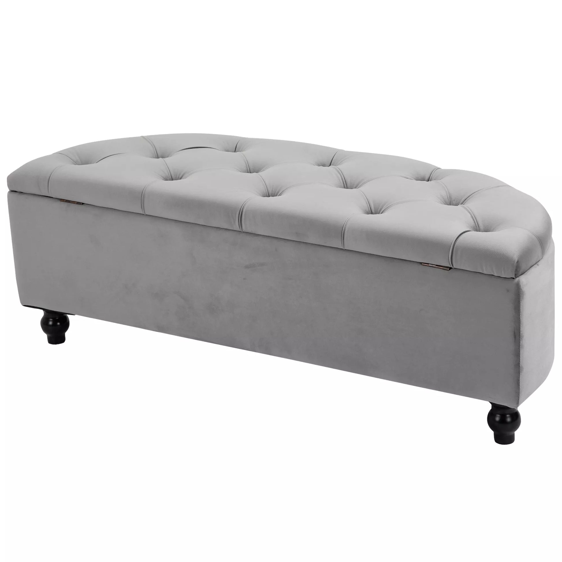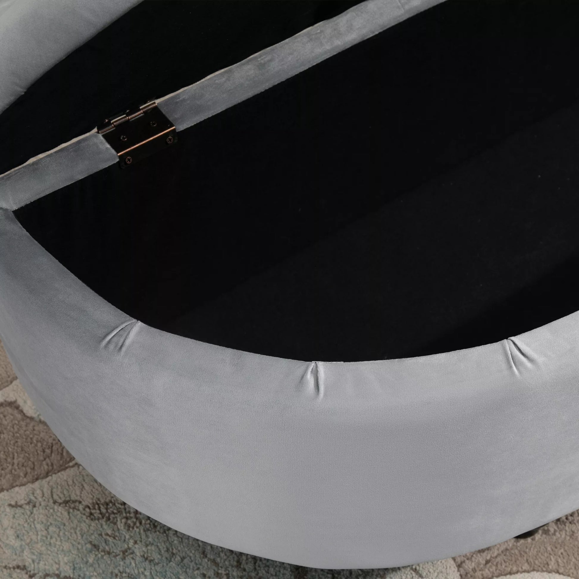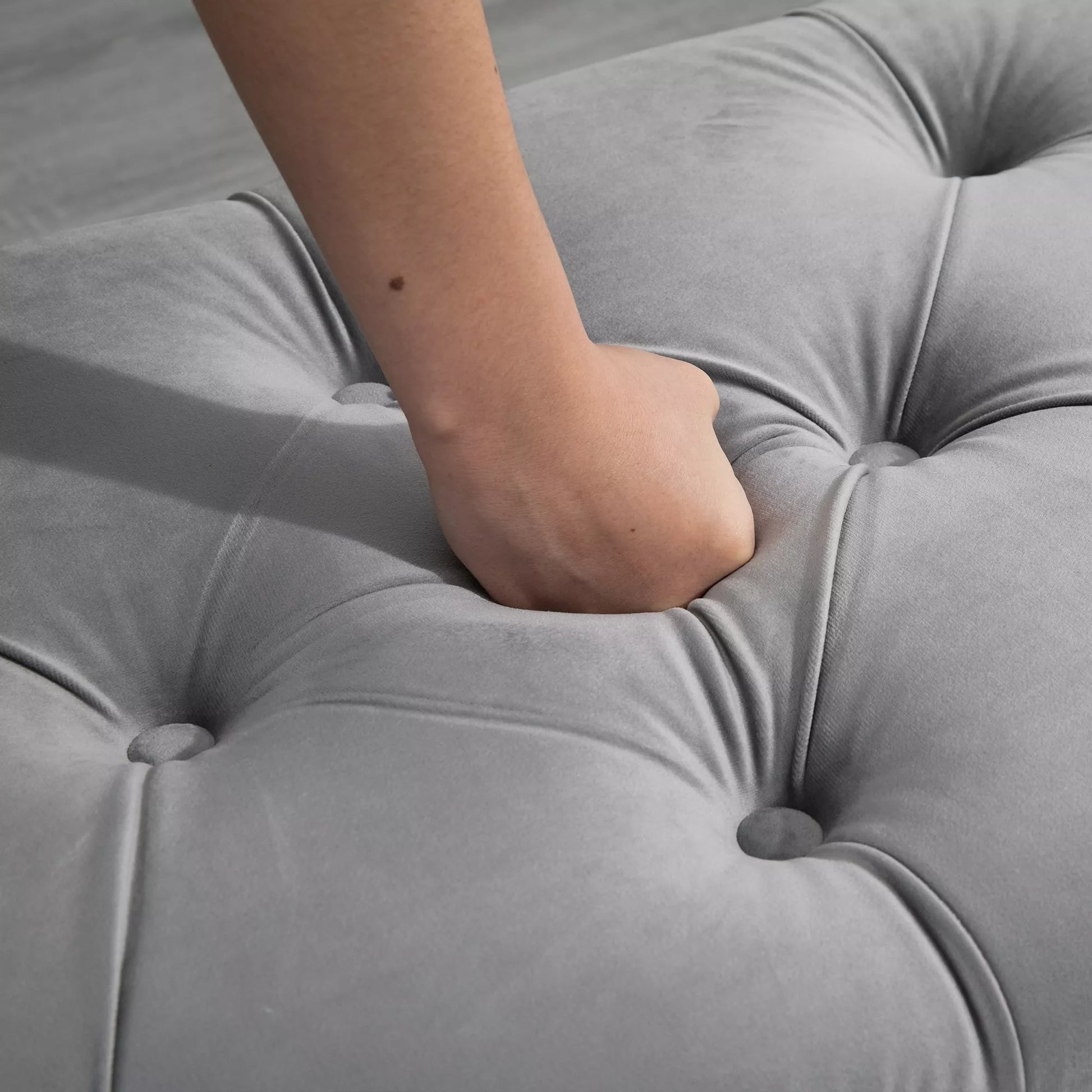 Patirkite nesenstančią eleganciją su mūsų išskirtine pufa su saugojimo vieta. Meniškai pagamintos juodo kaučiuko medienos kojelės ir elegantiškas pilkas aksominis apmušalas suteiks jūsų svetainei, miegamajam, drabužinei ar biurui klasikinio žavesio. Pasinaudokite didele saugojimo vieta patalynėms, pagalvėlėms, nuotolinio valdymo pulteliams ar žurnalams. Ši suoliukas su saugojimo vieta yra ne tik stilingas baldas, bet ir praktiškas tvarkos pagalbininkas jūsų namuose.