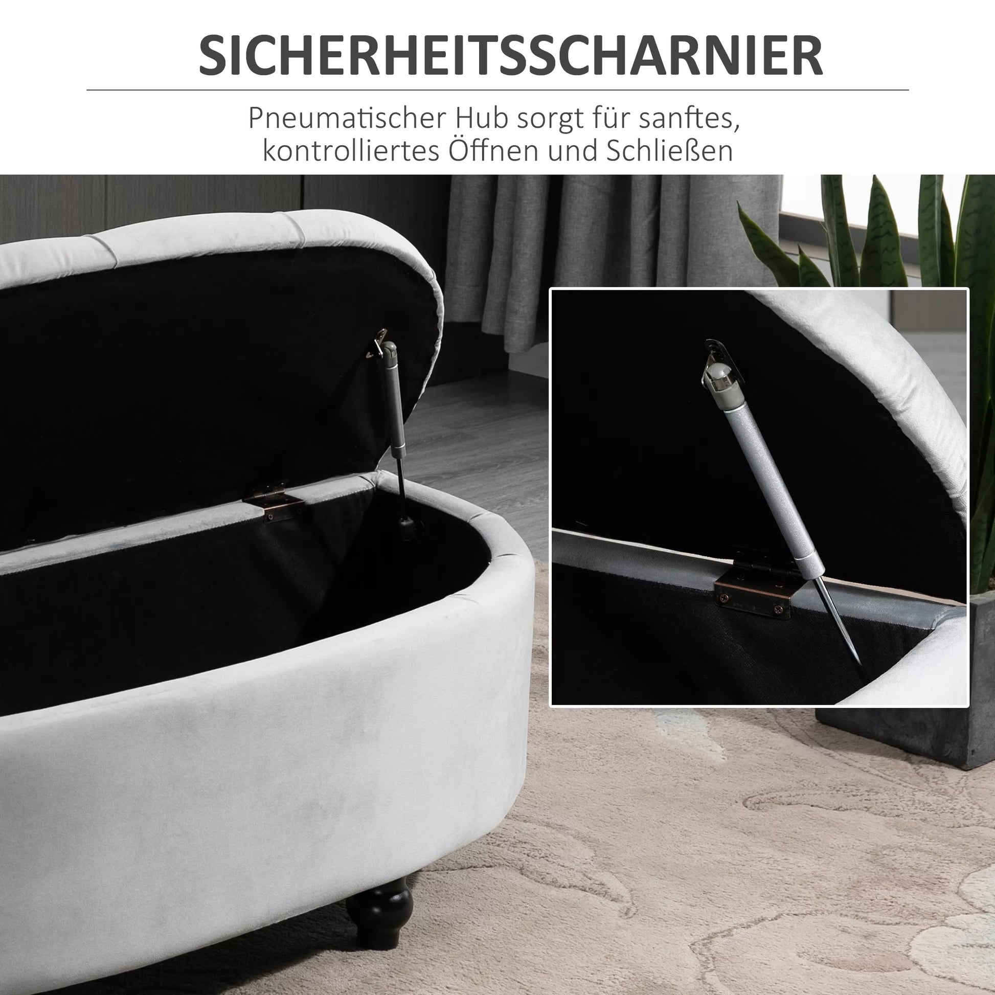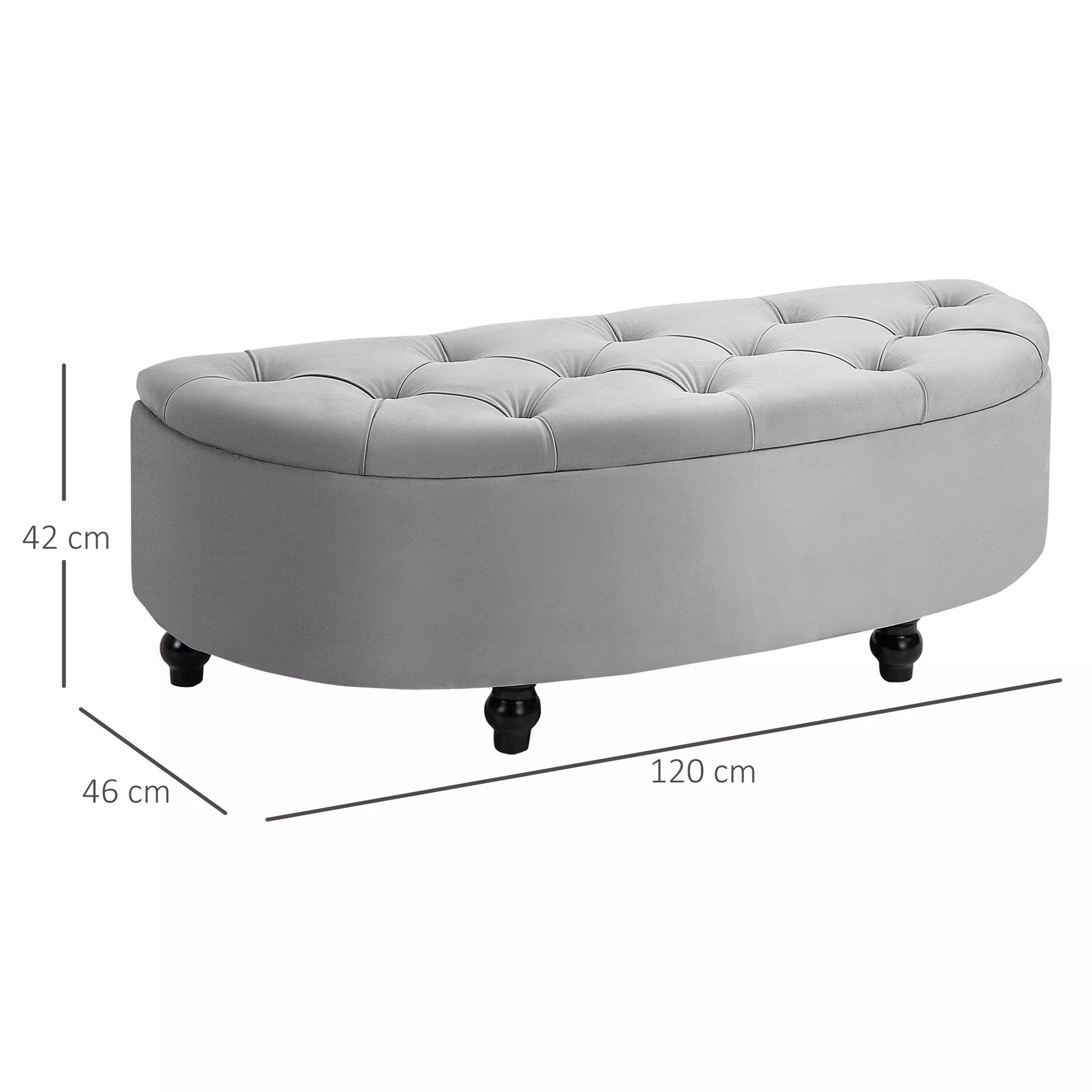 Suolas su daiktadėže, paminkštinta su aksomo išvaizda, atidarytu dangčiu, daiktadėžė su medinėmis kojomis, suolas daiktadėžė svetainei, prieškambariui, miegamajam 120 x 46 x 42 cm, pilkas