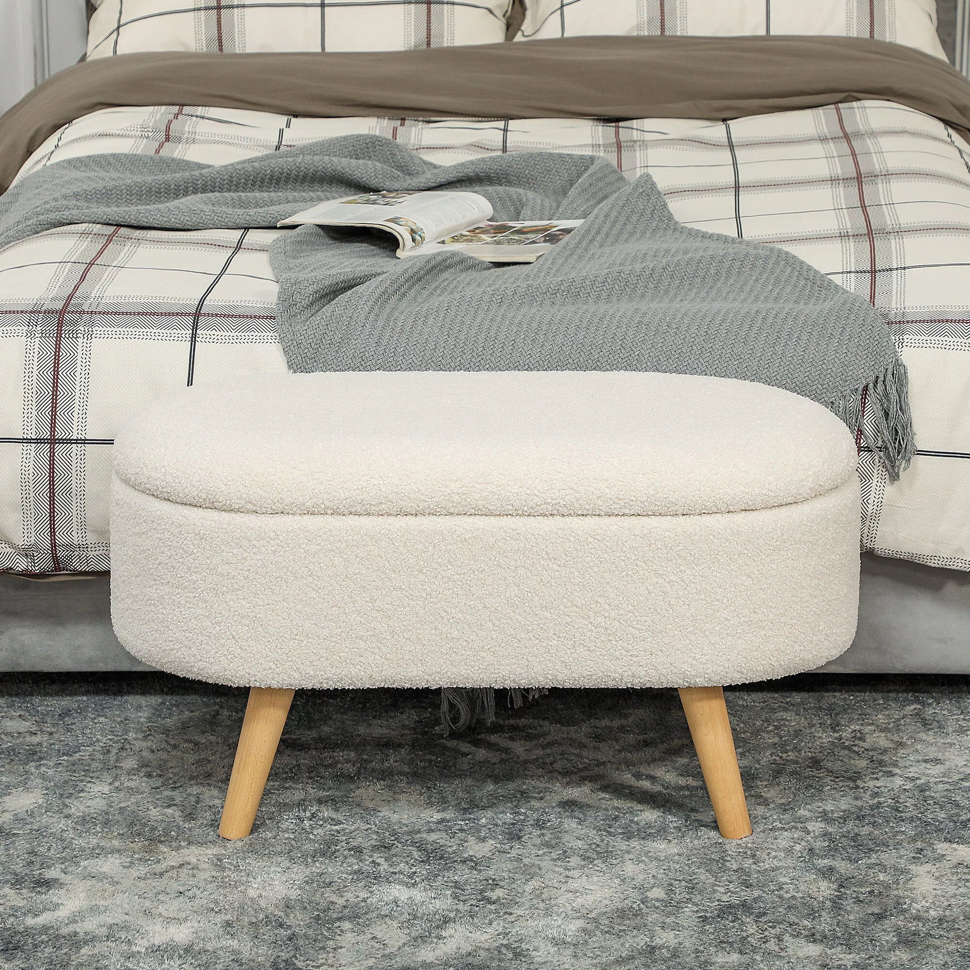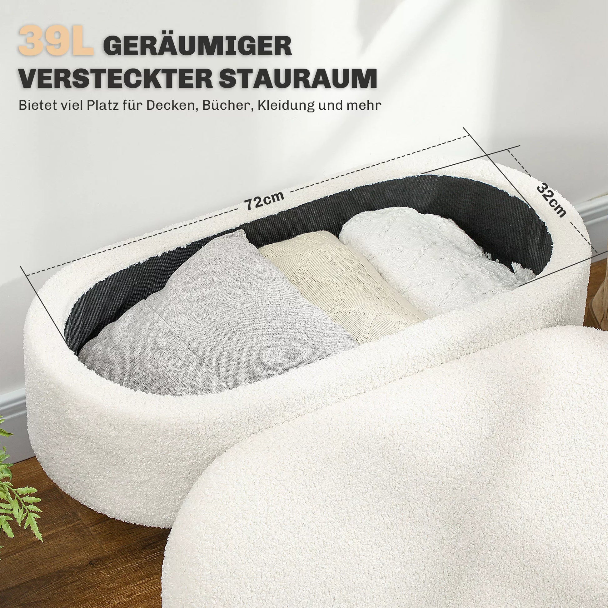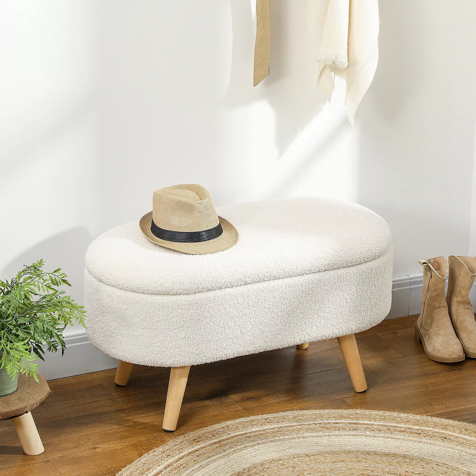 Suolas su daiktadėže ir dangčiu, pufas prieškambariui, svetainei, miegamajam, medžio, audinio apmušalas, baltas