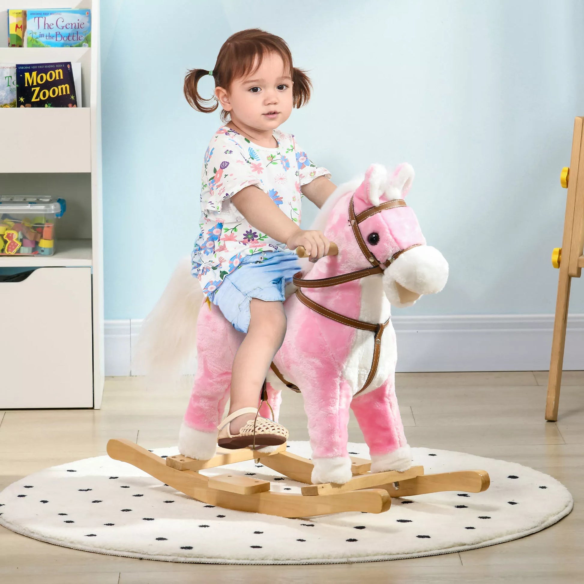 Sūpuoklinis arkliukas, balnas su balnakilpėmis, garso efektai, muzika, pliušinis korpusas, metalinis rėmas, iki 30 kg, rožinis