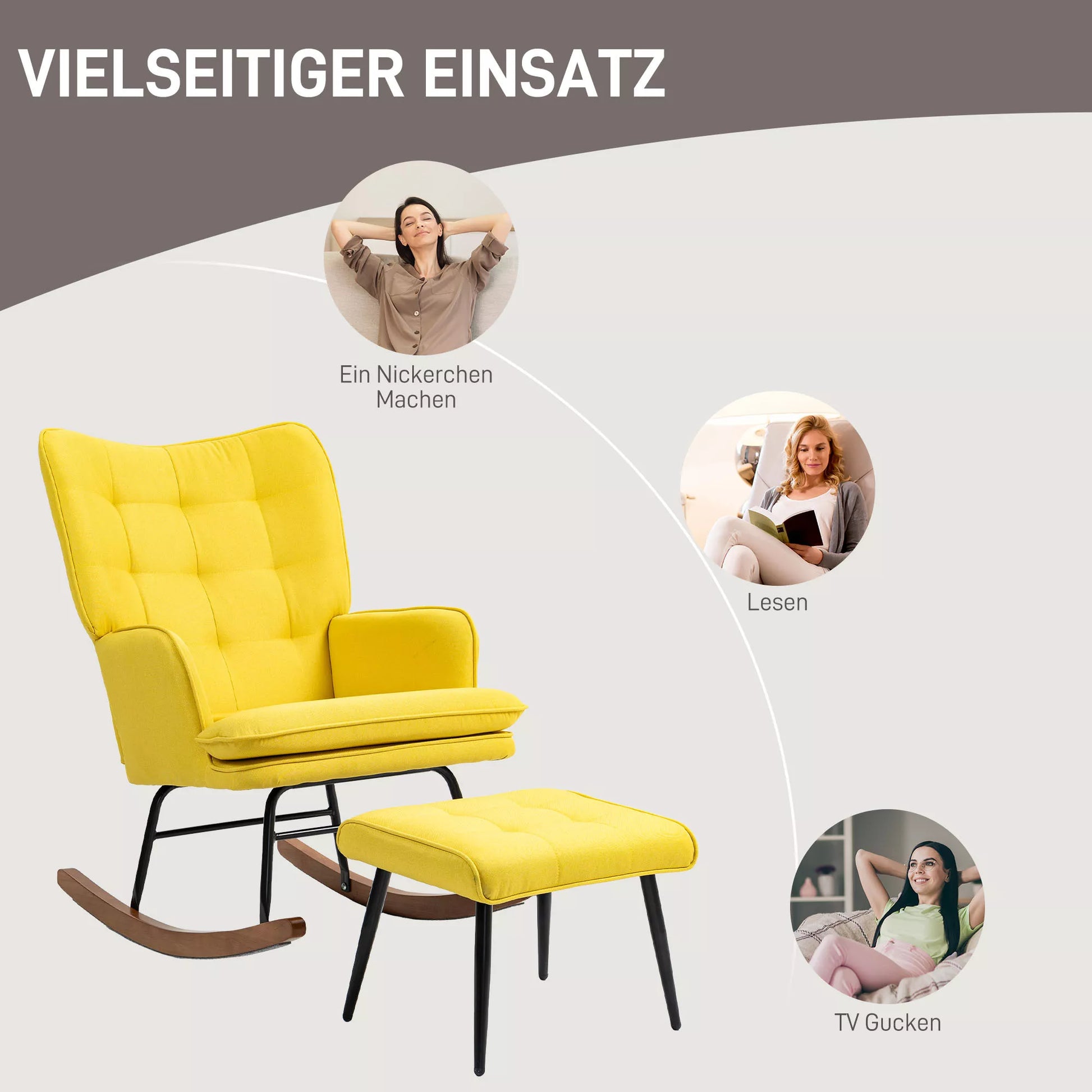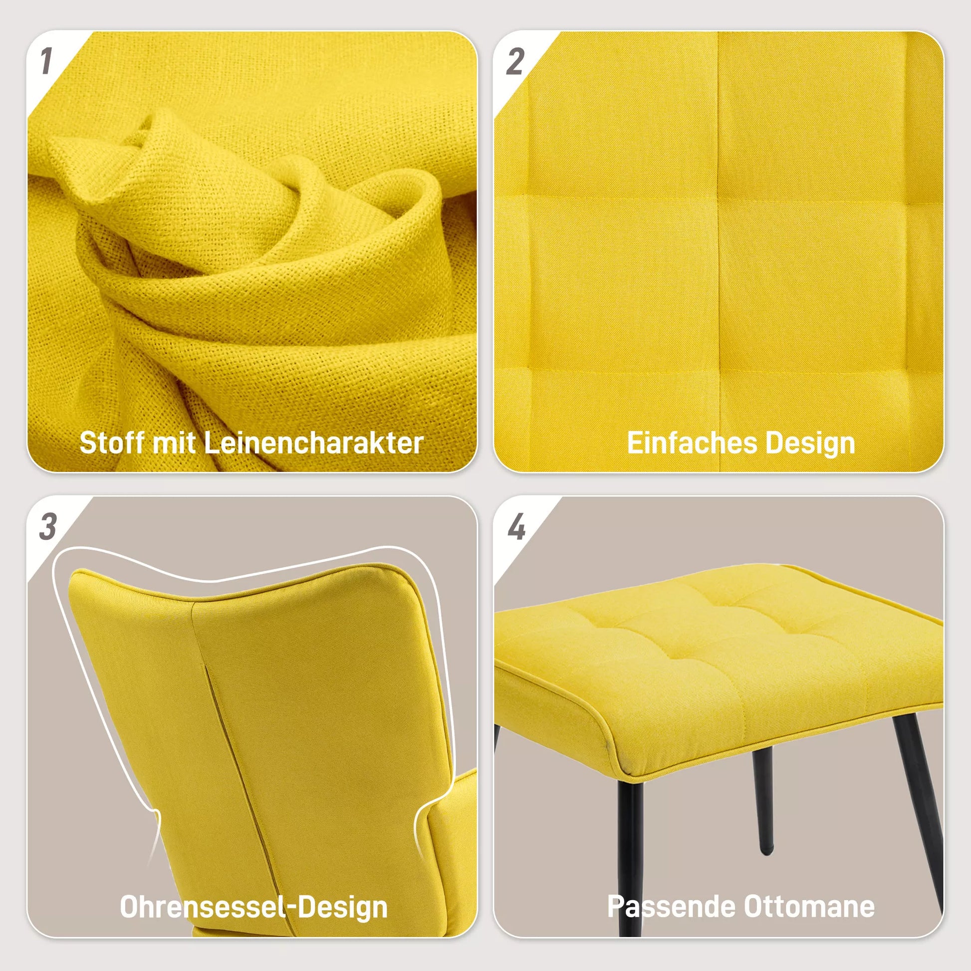 Supamasis krėslas su Osmanu, Skandinaviško dizaino, su pėdų atrama, buko mediena, dygsniuotas, 64 cm x 89 cm x 90 cm, geltonas