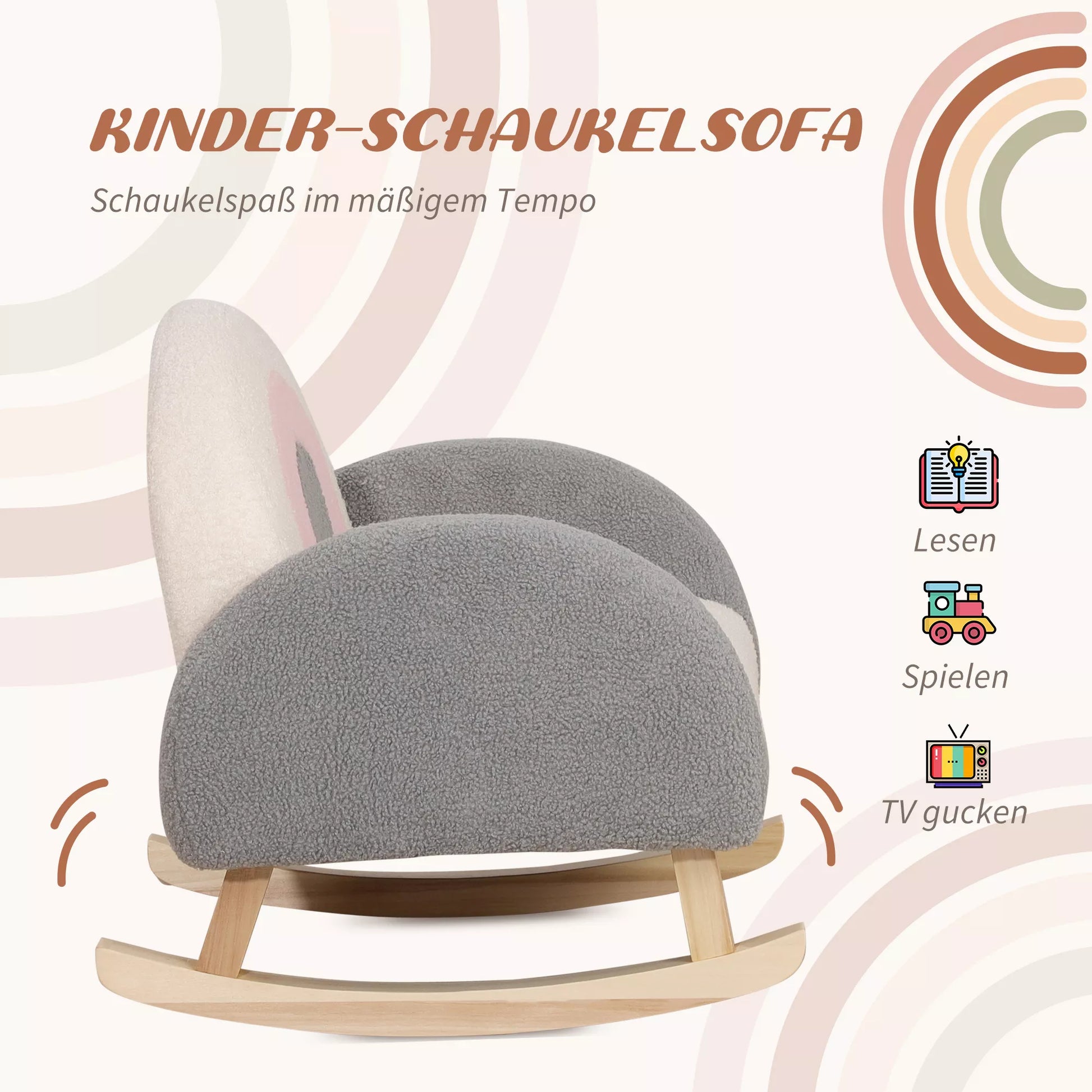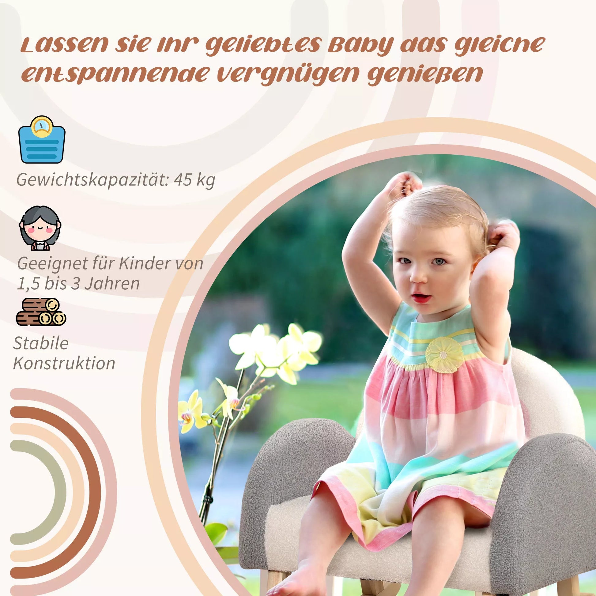 Supamas krėslas mažyliams, mielas dizainas, dirbtinio avikailio imitacija, Eukalipto mediena, 50 x 45 x 44 cm, pilka+rožinė+kreminė