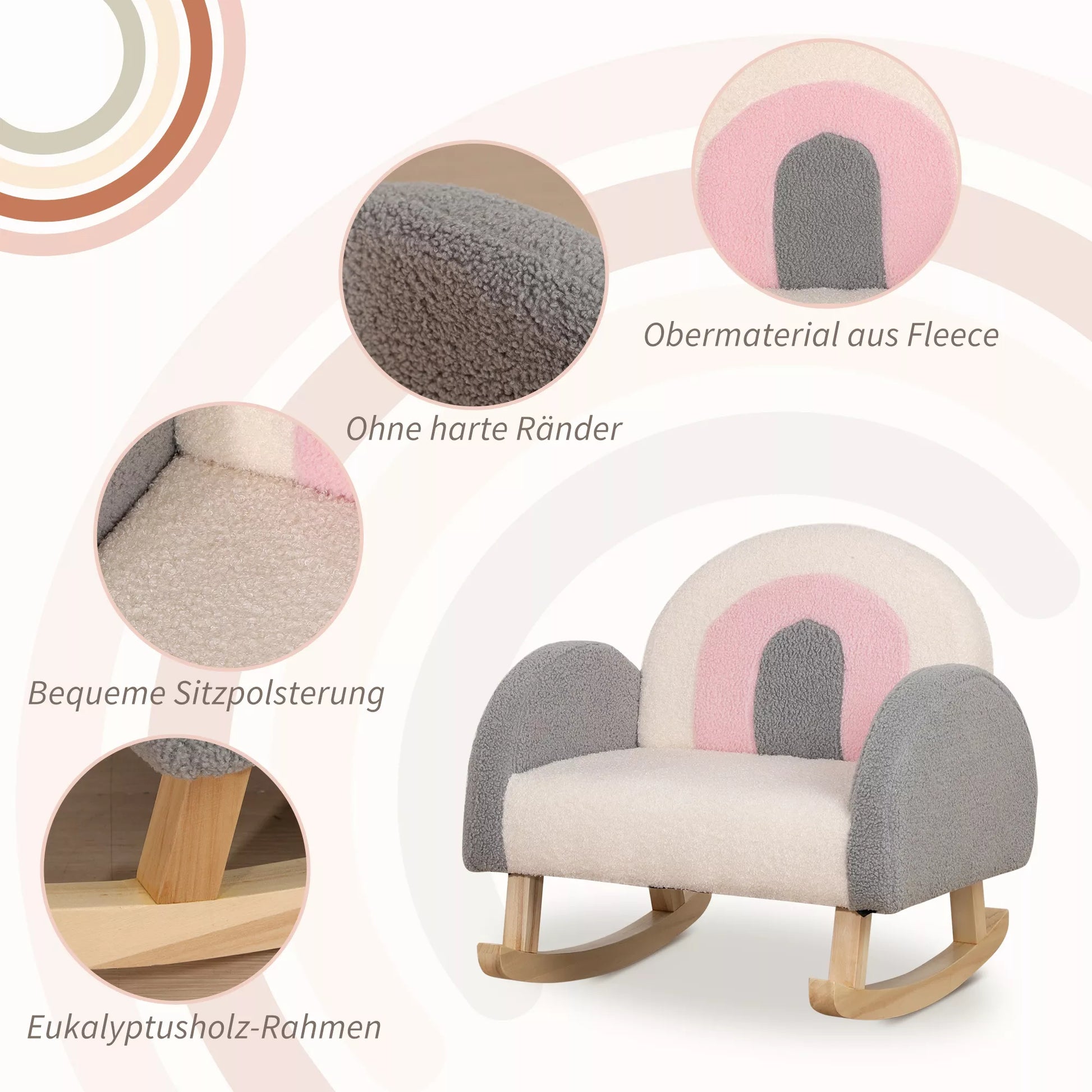 Jūsų vaikai patogiai įsikurs šioje kėdutėje-supynėje. Eukalipto medienos rėmas užtikrina stabilumą. Paminkštinta vaikiškos sofos sėdimoji dalis aptraukta dirbtiniu avikailiu, kuris suteikia daug stiliaus ir malonų pojūtį. Atlošas ir porankiai suteikia atramą atlošiantis, o keturios medinės kojelės užtikrina stabilumą.