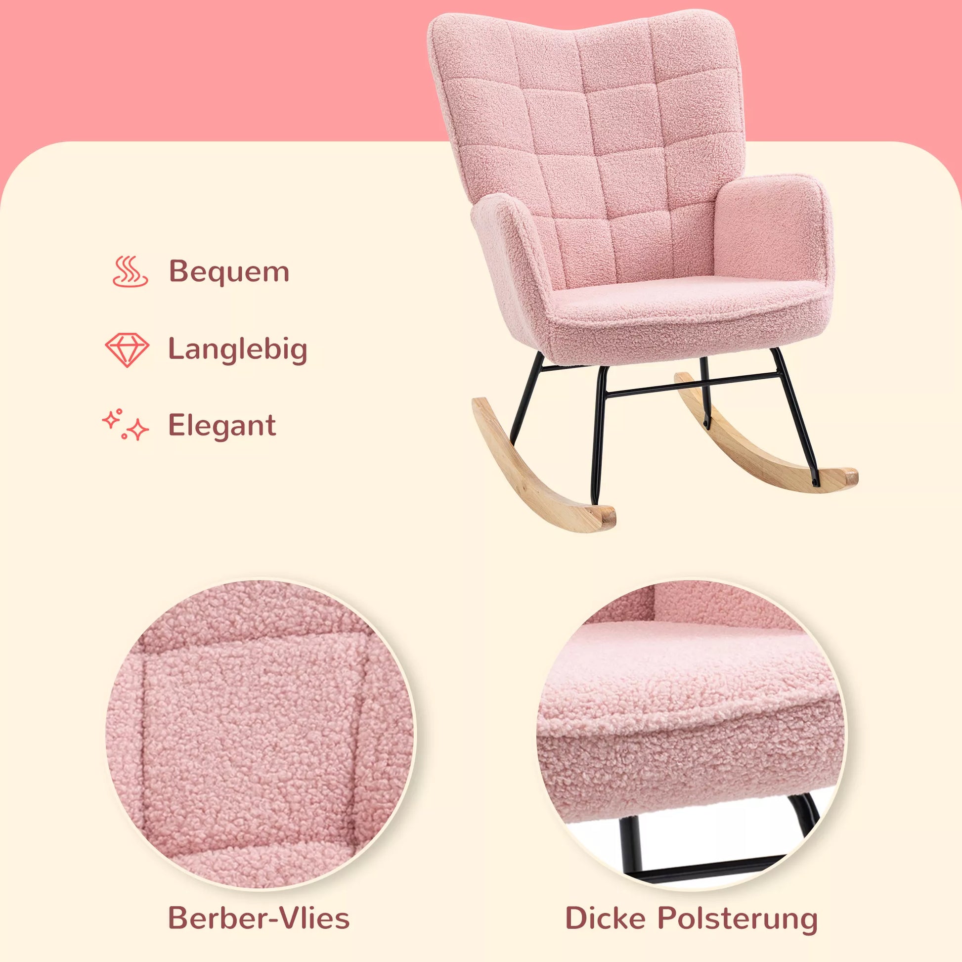 - ✔ Medžiaga: Berberio vilnos audinys (100% poliesteris), buko mediena, plienas, putplastis