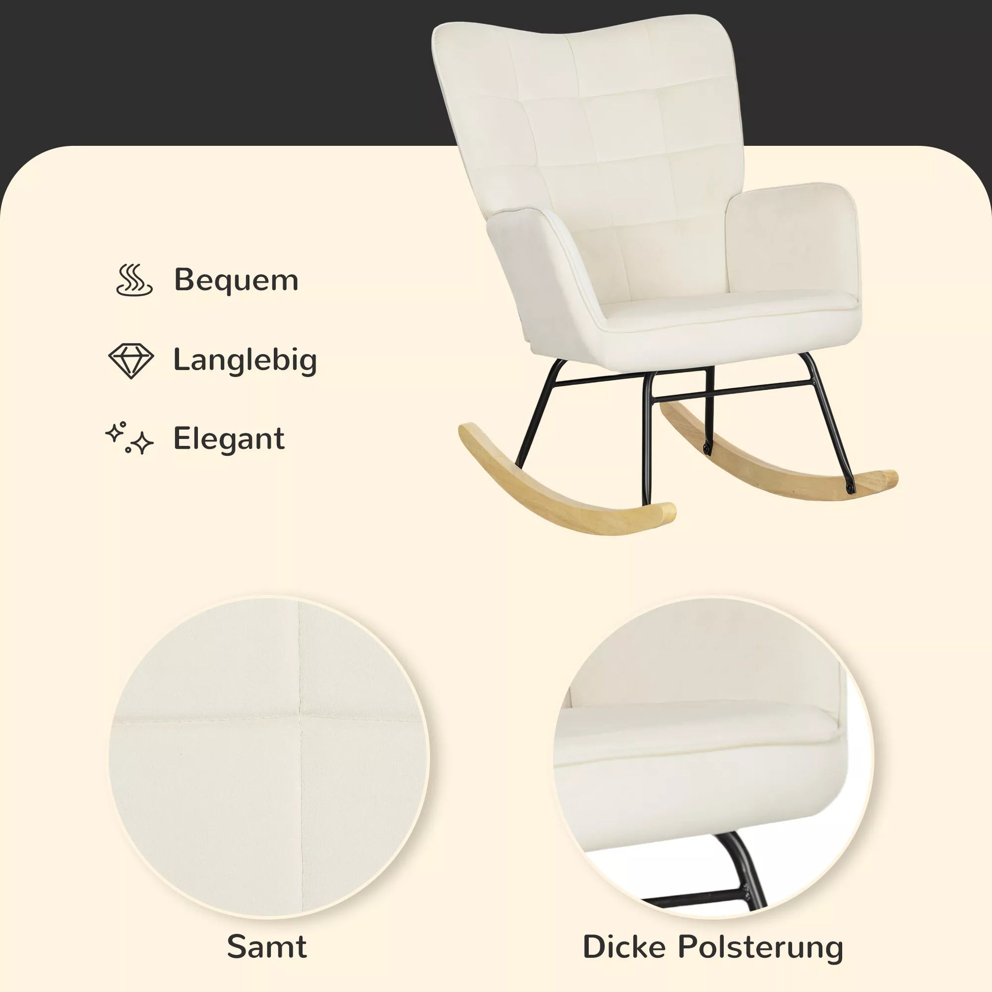 Po ilgos darbo dienos trokštate jaukios pertraukos? Šis supamasis krėslas suteikia būtent tai. Dėl erdviausios sėdimosios dalies, minkšto paminkštinimo ir ergonomiškos formos jis kviečia atsipalaiduoti. Lenktos atramos rankoms ir išlenktas atlošas optimaliai palaiko jūsų kūną ir užtikrina visišką atsipalaidavimą. Pasilepinkite ramia darbo dienos pabaiga ir ilsėkitės harmonijoje su savimi.
