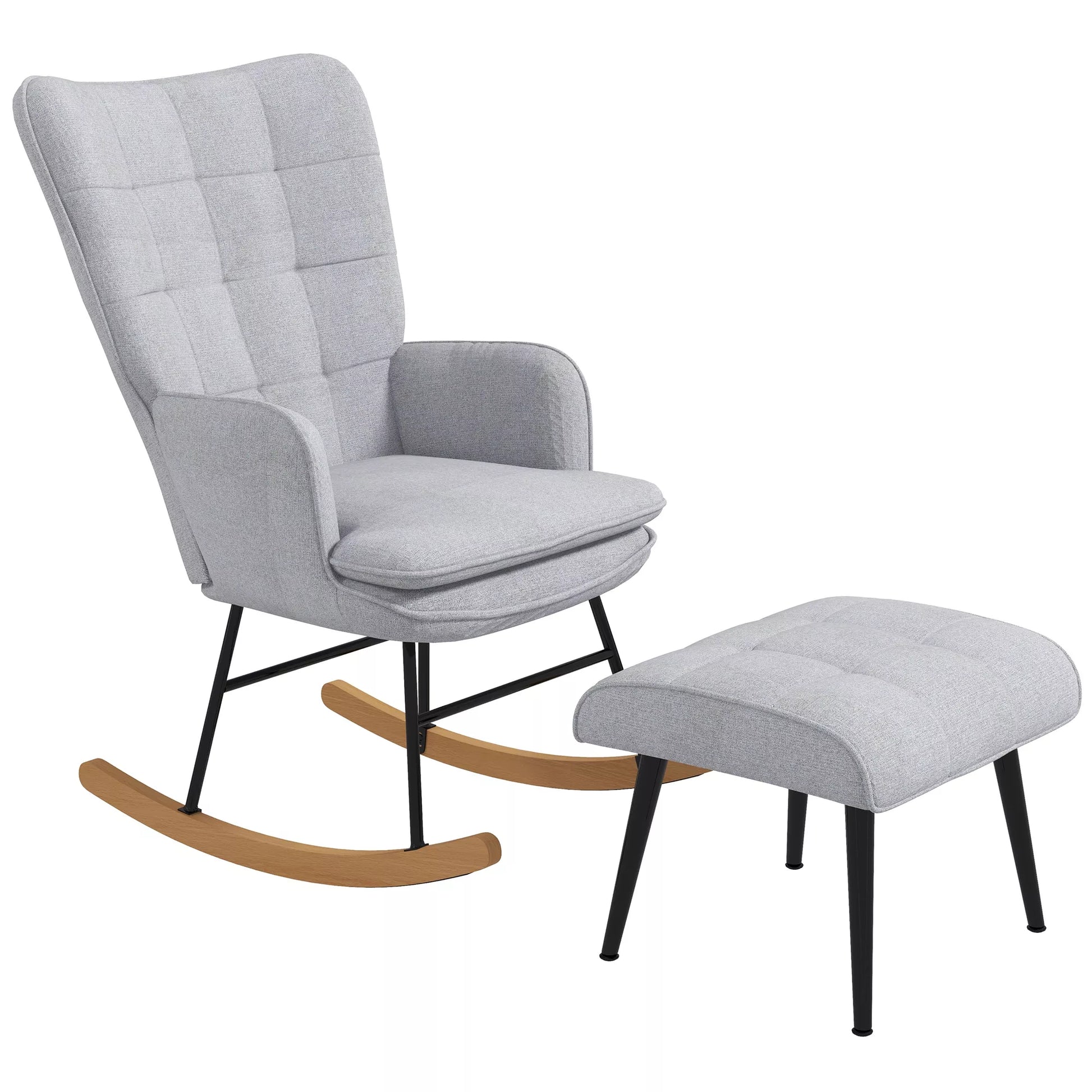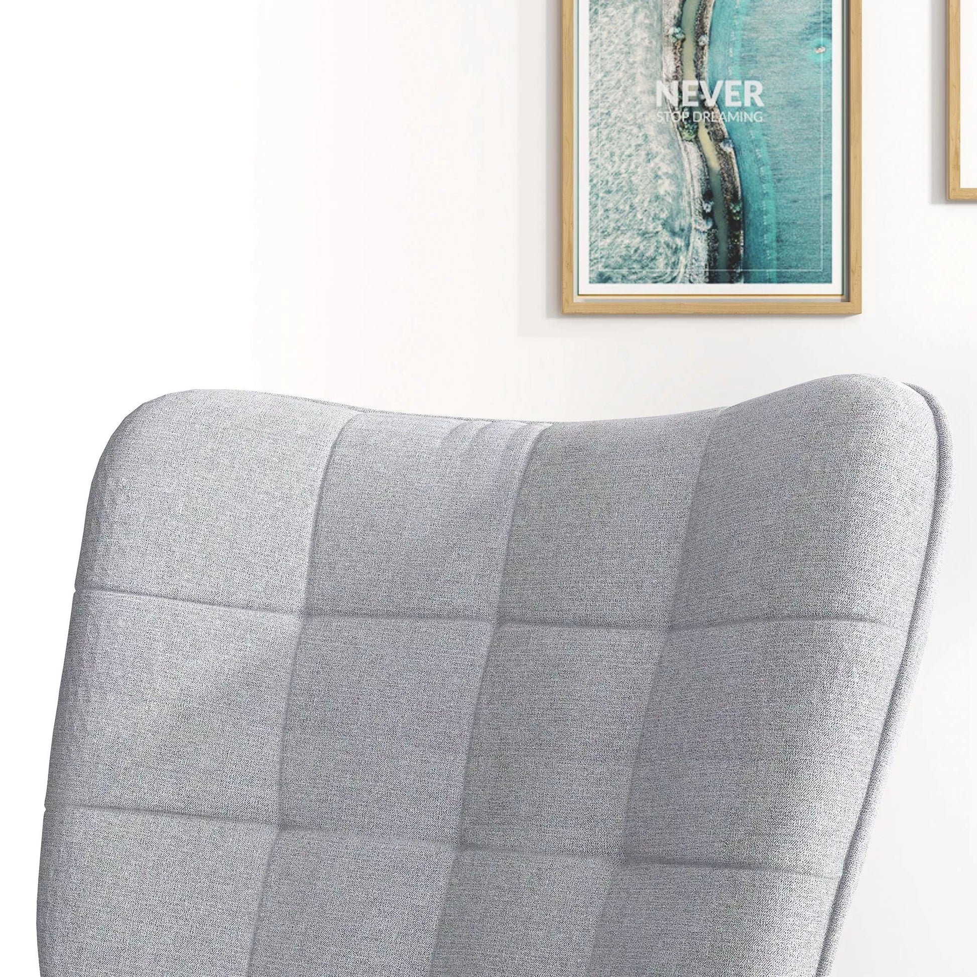 Supamas krėslas su otomanu Skandidesign Supamas krėslas su pakoja, buko mediena, dygsniuotas, 64 cm x 89 cm x 90 cm, pilkas