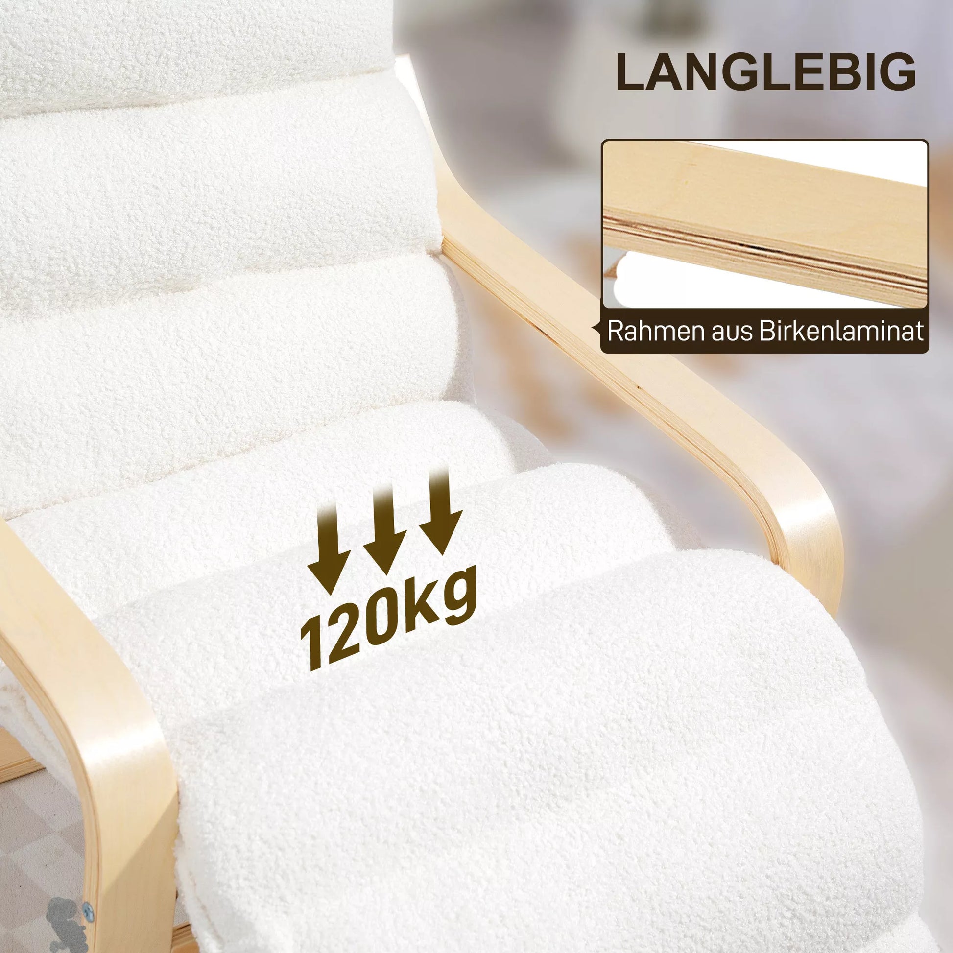 Pasinerkite į prabangų minkšto fotelio komfortą, apdraustą kvėpuojančiu Sherpa vilnos audiniu ir turintį 12 cm storio paminkštinimą. Kaip skaitymo kėdė ar stilingas poilsio krėslas, jis turi aukštą atlošą ir reguliuojamą kojų atramą, puikiai tinkančią jūsų poilsiui. Lengvai siūbuojantis beržo medienos rėmas suteikia jam žavios išvaizdos, idealiai tinka svetainei ar miegamajam.