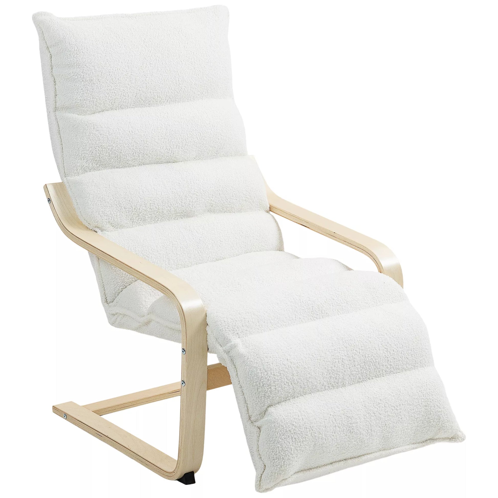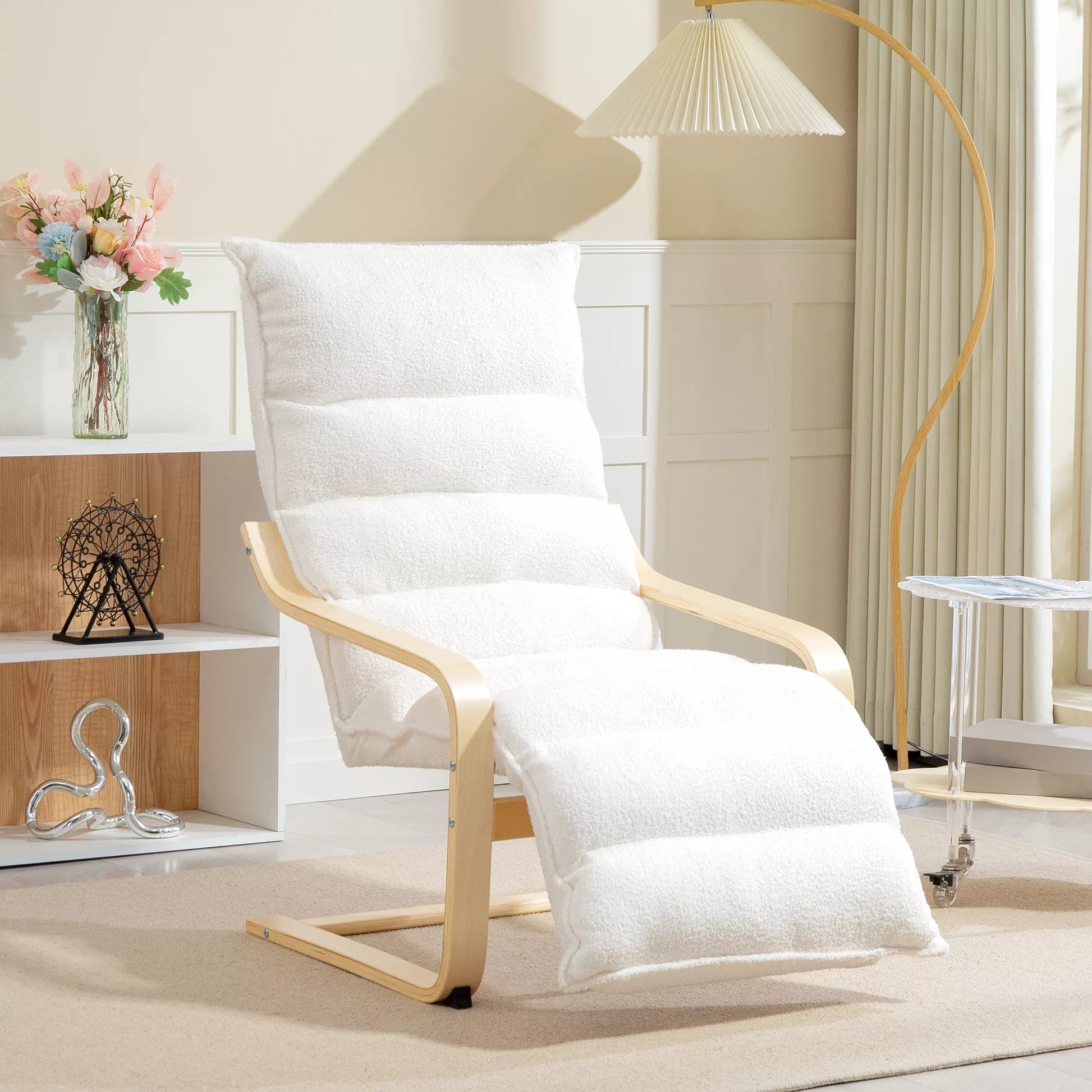 Svetainės fotelis iš beržo medienos, paminkštintas, su reguliuojama kojų atrama, baltas