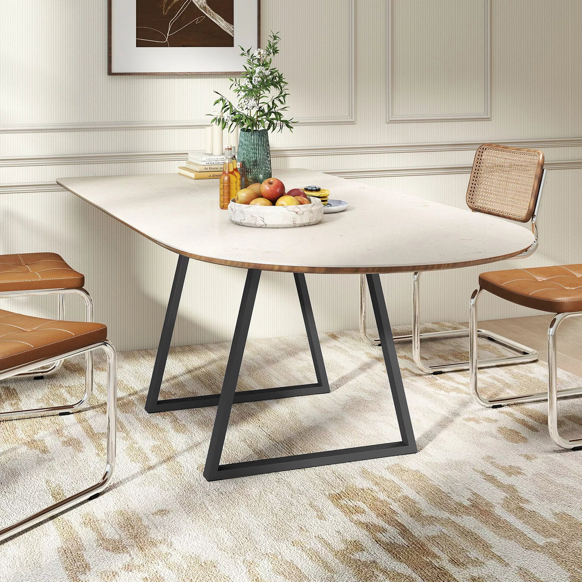 - ✔ 2 trapecijos formos stalo kojų komplektas su modernia juoda apdaila