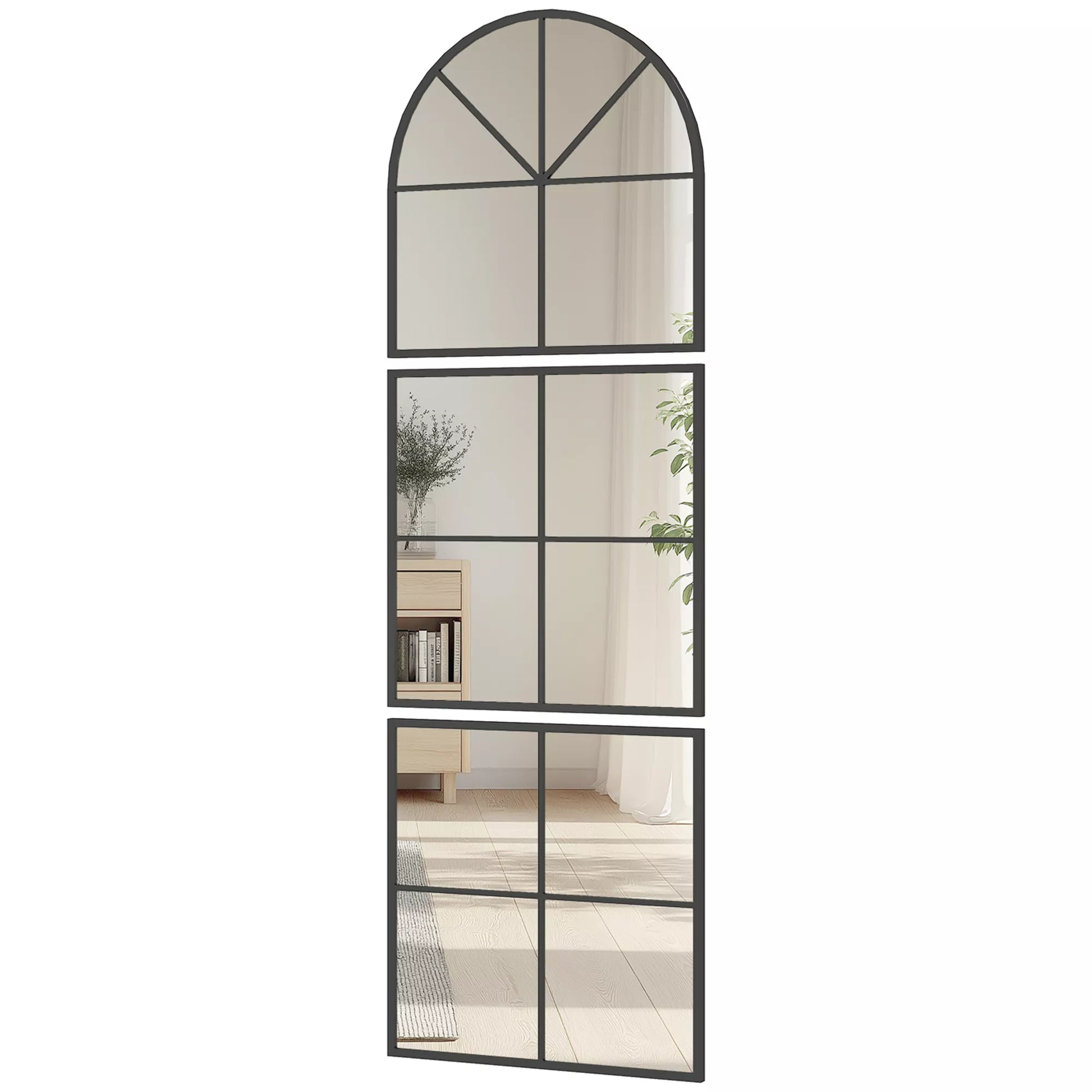 Trivietis sieninis veidrodis, lanko formos veidrodis su metaliniu rėmu, dekoratyvus 60 x 2 x 180 cm Juodas