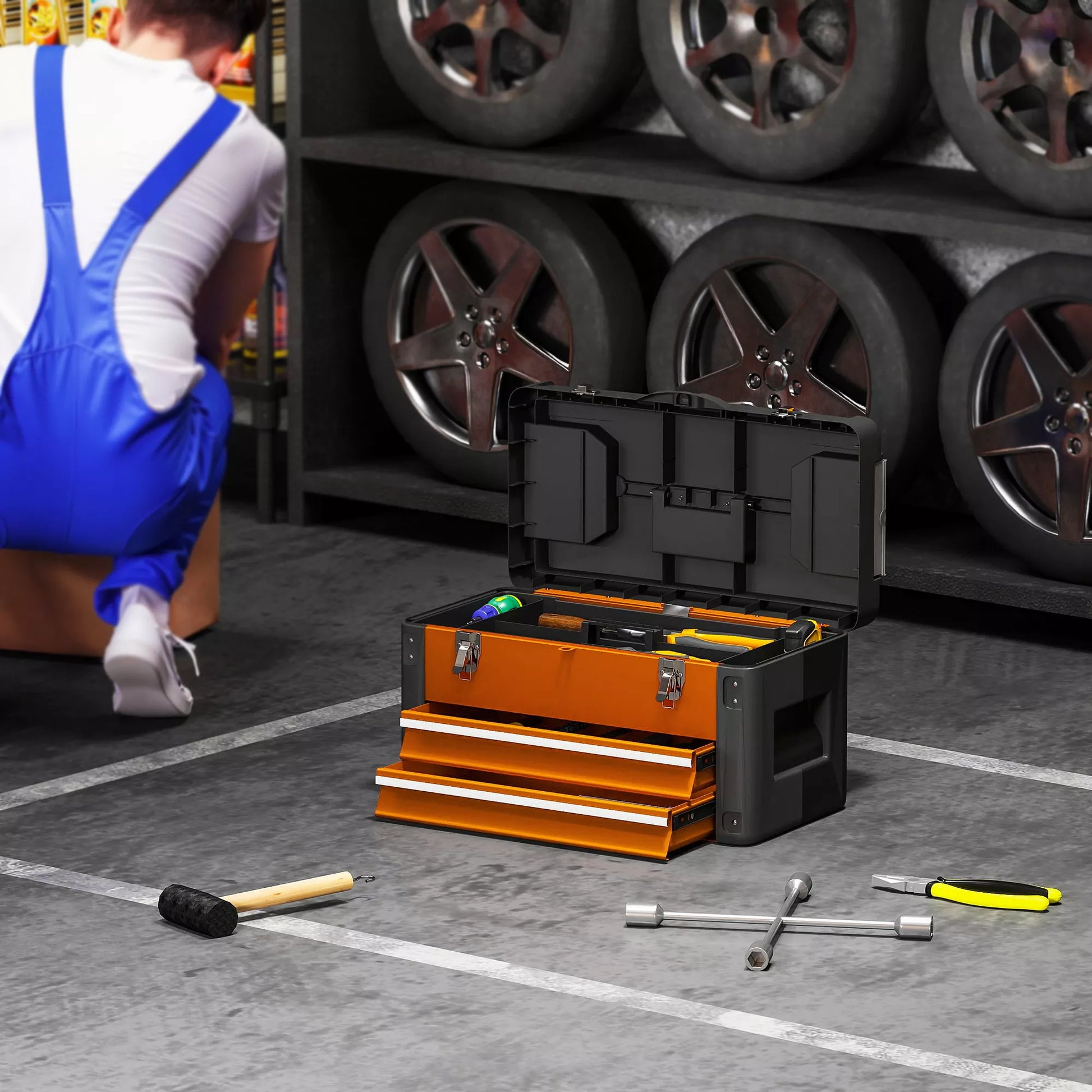 - ✔ Įrankių dėžė tinkama naudoti garaže, dirbtuvėse ir laisvalaikio kambaryje