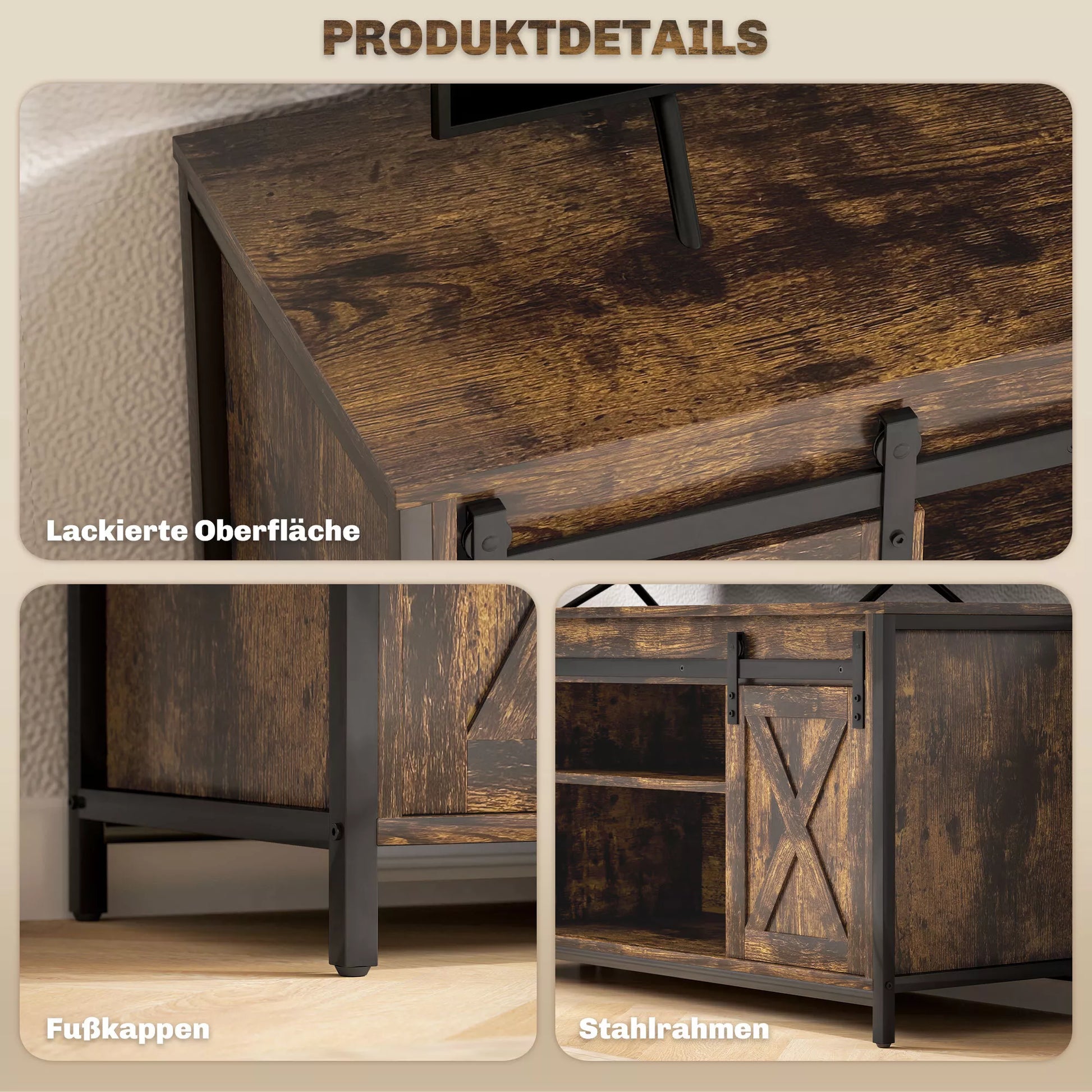 Pagražinkite savo svetainę ir pramogų zoną su šia išskirtine TV spintele. Šios TV spintelės derinyje sujungta rustiška, industrinė estetika ir praktiškas dizainas su dvejomis stumdomomis durimis suteiks jūsų aplinkai skonio ir charakterio. Idealiai tinka televizoriams iki 60 colių, o su 6 skyriais, ši TV spintelė suteikia daug vietos žaidimų konsolėms, „Blu-ray“ diskams, knygoms ir įvairiems dekoratyviniams elementams.