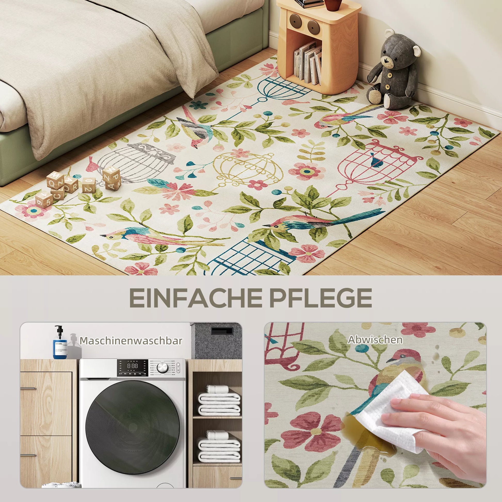 Atgaivinkite bet kurį kambarį su šiuo kaimišku kilimu, puoštų ryškiomis paukščių ir gėlių dizaino detalėmis ant kreminio pagrindo. Idealiai tinka svetainei ir miegamajam, jis derina žavesį su funkcionalumu. Minkštas poliesteris daro jį itin jaukų, o paprasta priežiūra – skalbimas mašinoje arba valymas drėgna šluoste – užtikrina, kad jis visada išliktų šviežias. Neslystantis kilimo pagrindas iš TPR užtikrina saugų sukibimą.