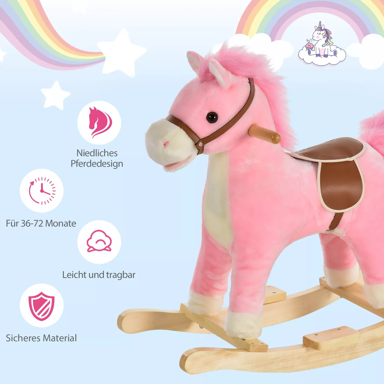 Vaikų supamas arkliukas, kūdikių supamas žaislas arklys su gyvūnų garsais, rankenomis, skirtas 36-72 mėn. amžiaus vaikams, pliušinis, rožinis, 65 x 32,5 x 61 cm
