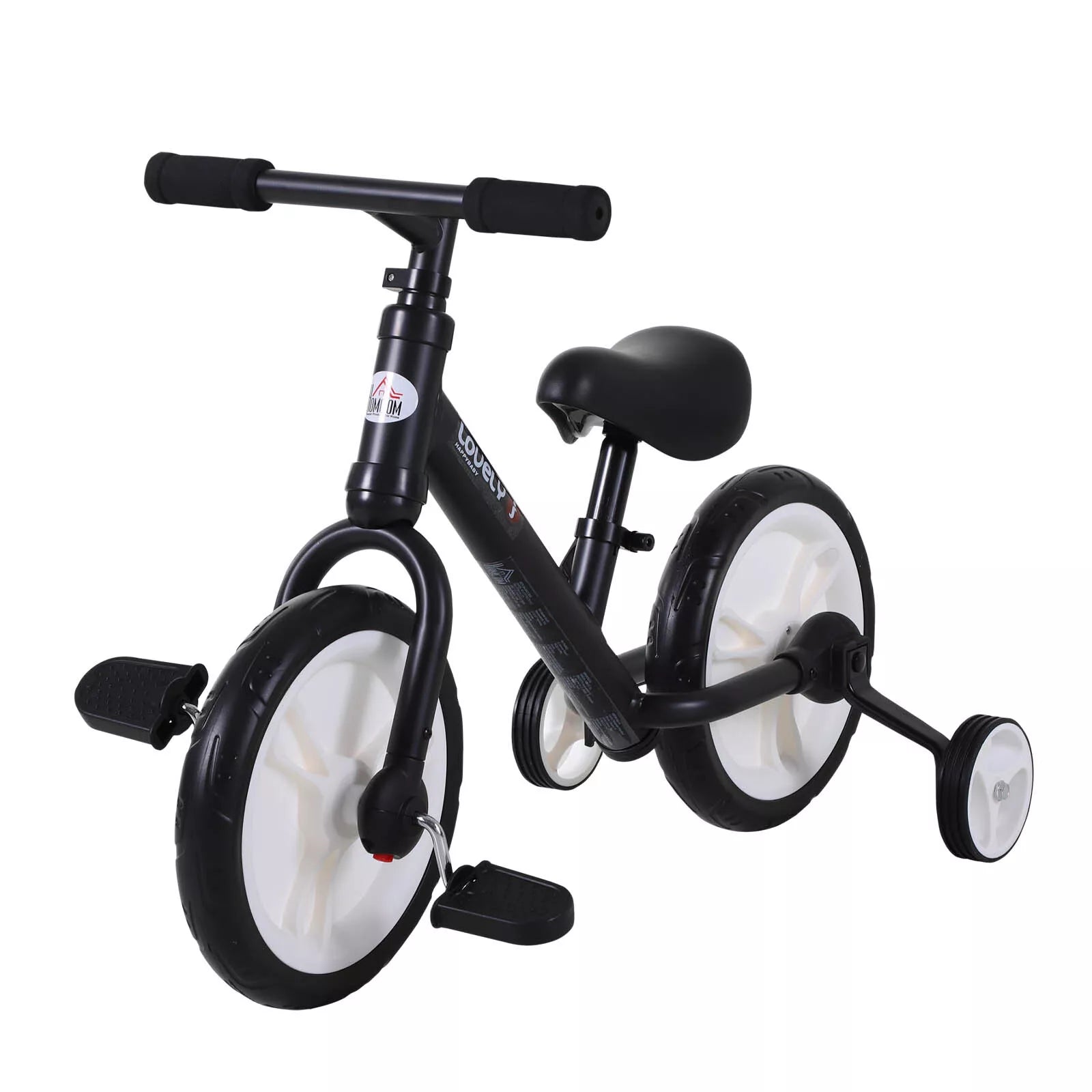 Vaikų balansinis dviratukas nuo 2-5 metų, mokomasis dviratukas su atraminiais ratukais, pedalais, reguliuojamo aukščio sėdyne, žaislinis balansinis dviratukas mažiems vaikams, pirmoji gimtadienio dovana, juodas