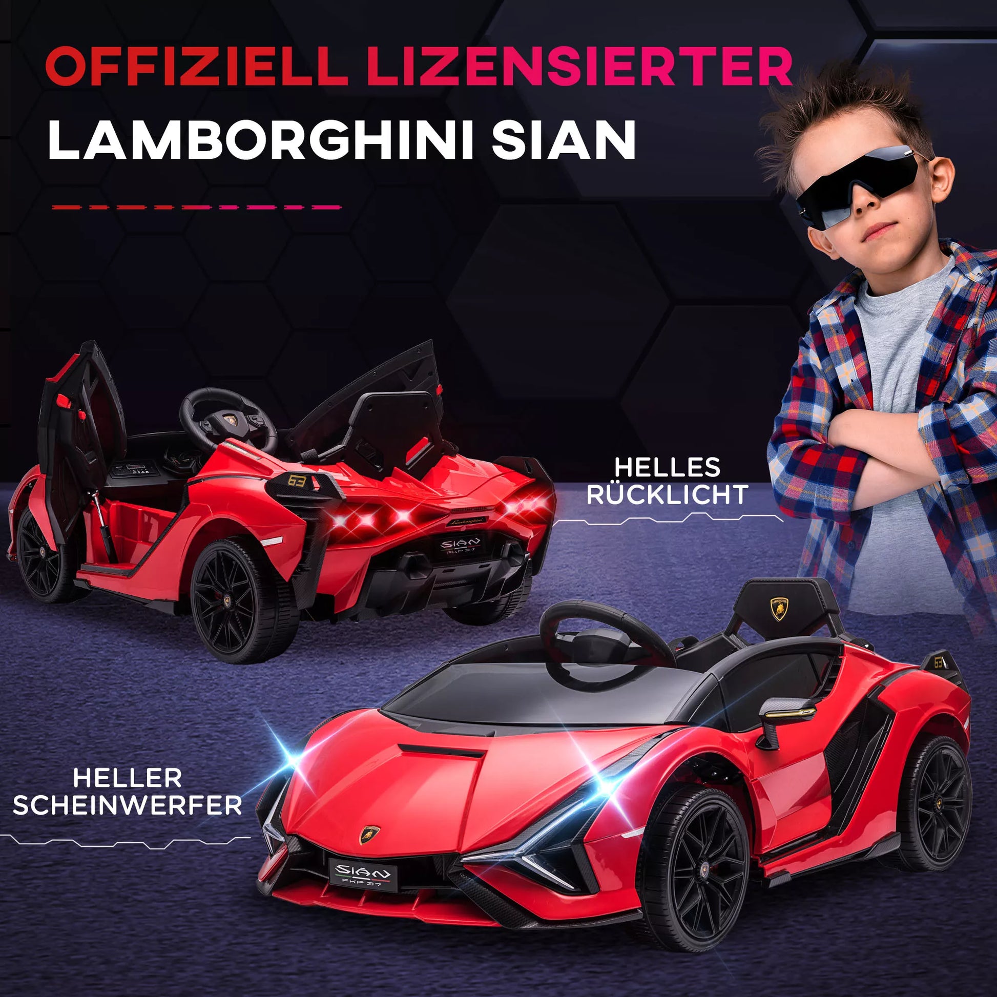 12V vaikiškas elektrinis automobilis Lamborghini SIAN SUV, 2 važiavimo režimai, su nuotolinio valdymo pultu, muzika (MP3/USB), šviesomis, 37-60 mėn., metalo raudonumo, 108 x 62 x 40 cm