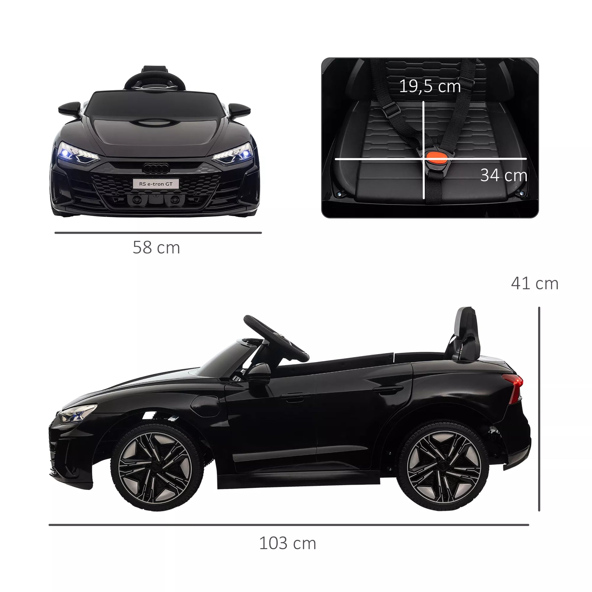 Vaikiškas elektromobilis, su "Audi" licencija, su saugos diržu, nuotolinio valdymo pultu, šviesomis, juodas, 103 x 58 x 41cm