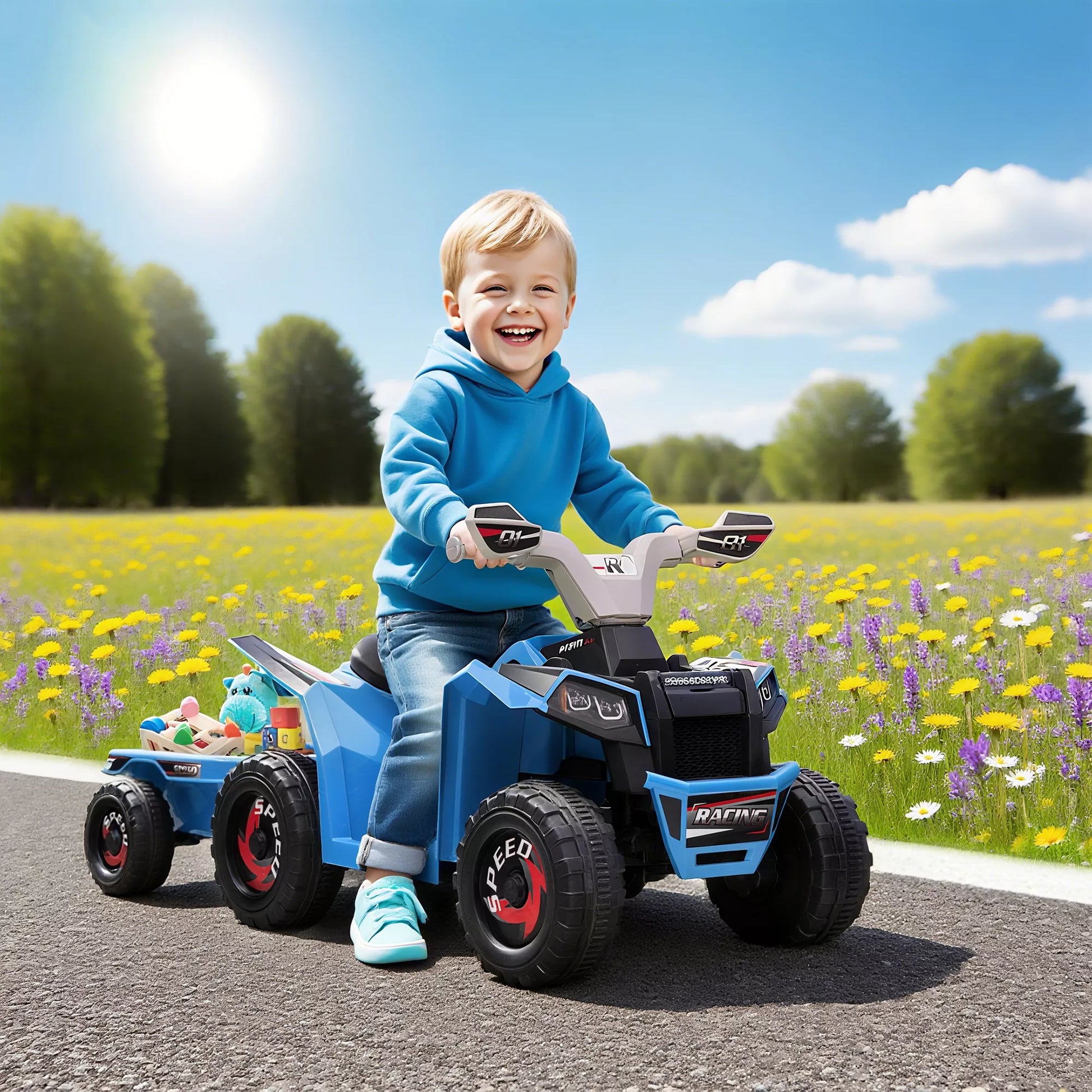Vaikiškas keturratis, įkraunamas, 2,5 km/val., su priekaba, 50 min. važiavimo laikas, vaikams nuo 1,5 iki 3 metų, Mėlynas