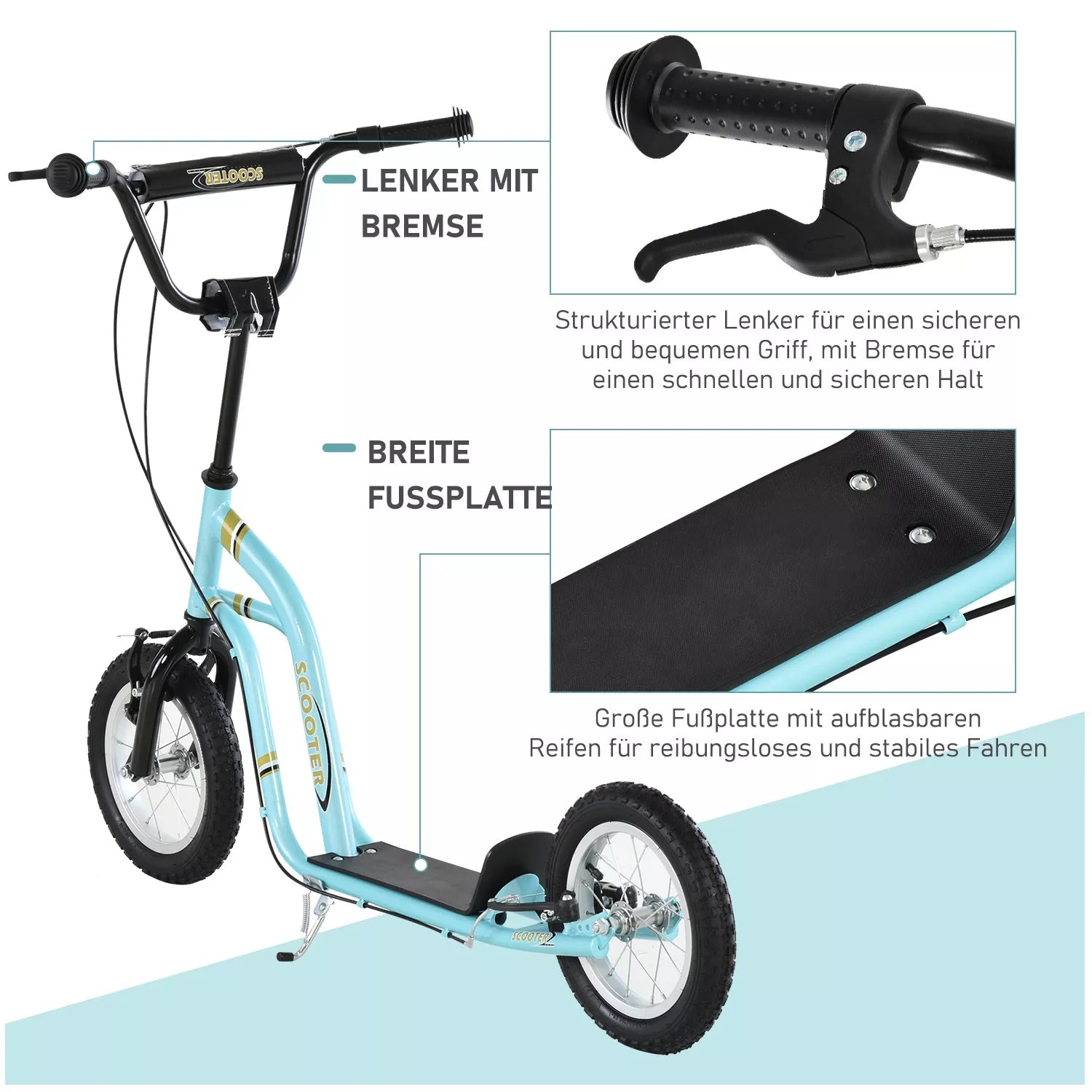 Šis "HOMCOM" paspirtukas suteiks aukščiausio lygio vairavimo malonumą! Vaikiško paspirtuko pripučiamos padangos užtikrina sklandžią kelionę. Dviguba stabdžių sistema palengvina stabdymą. Dėl nedidelio svorio paspirtuką lengva transportuoti, kai jis nenaudojamas. Su šiuo "HOMCOM" vaikišku paspirtuku jūsų vaikai mielai praleis daugiau laiko lauke.