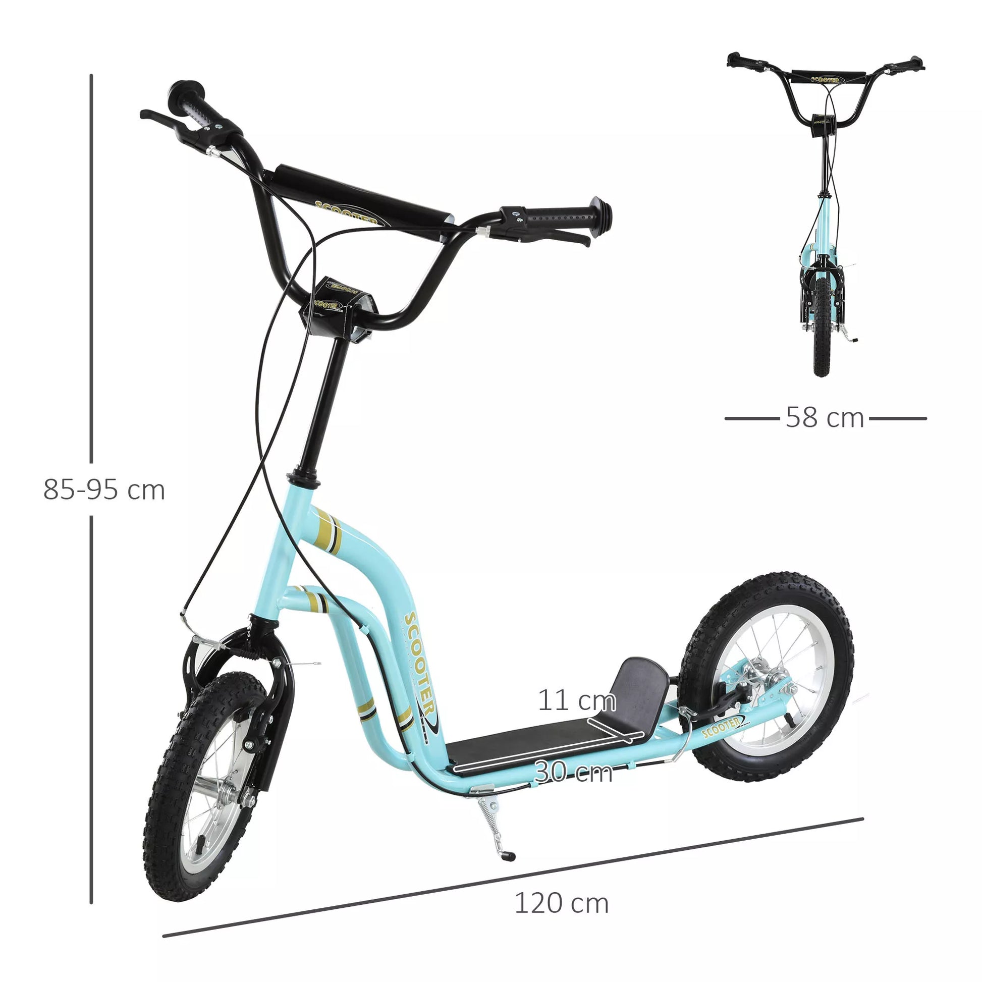 - ✔ Aukštis reguliuojamas nuo 85 cm iki 95 cm, tinka vaikams nuo penkerių metų amžiaus