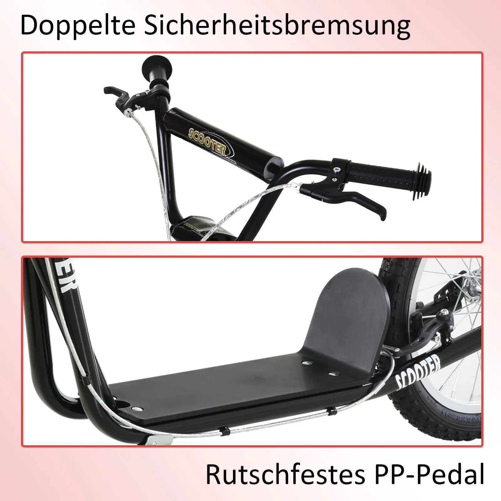 Vaikiškas juodas paspirtukas su stabdžiu, reguliuojamo aukščio, lengvos konstrukcijos