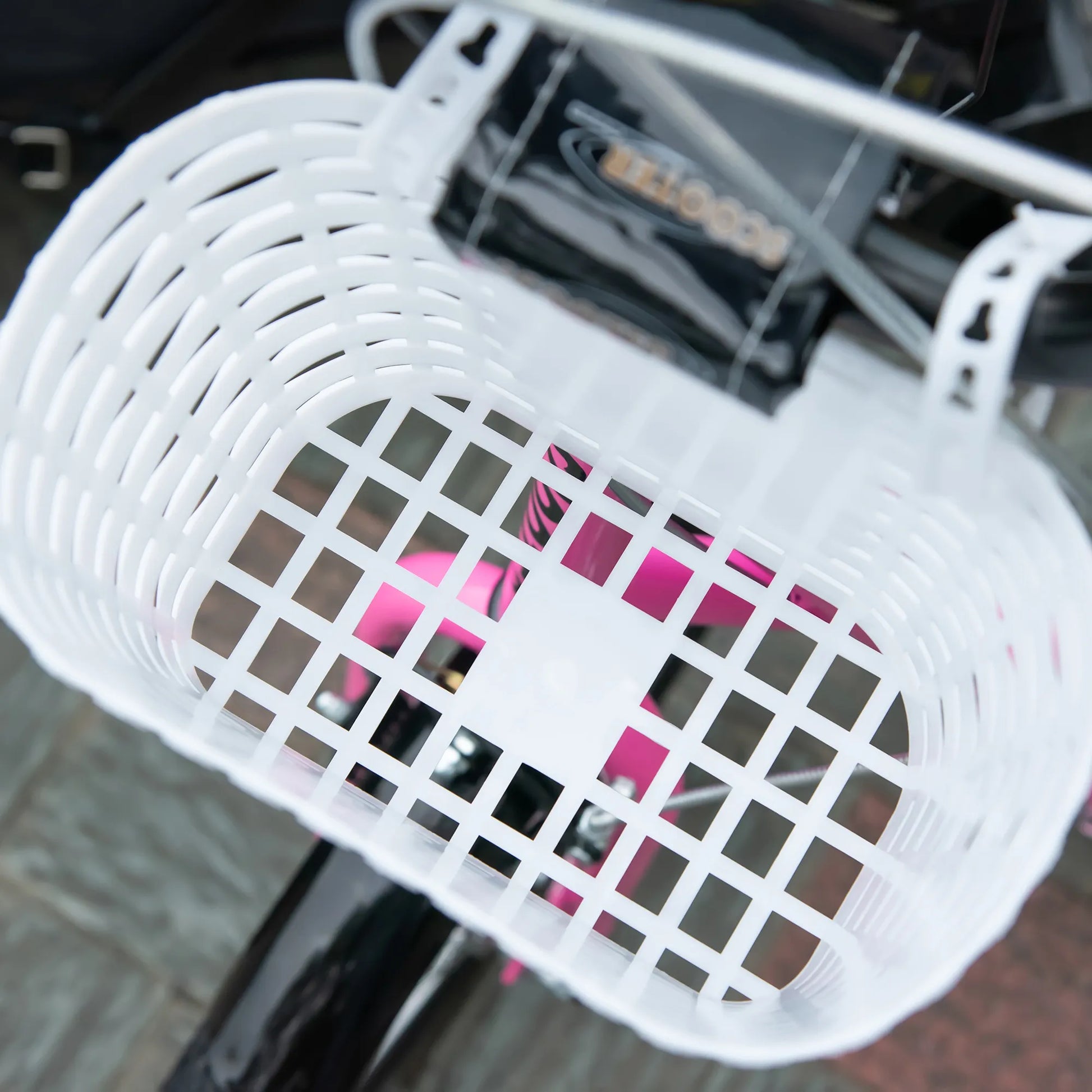 Vaikų paspirtukas su stabdžiais, krepšeliu, reguliuojamu aukščiu, skirtas vaikams nuo 5 iki 12 metų, baltos ir rožinės spalvos