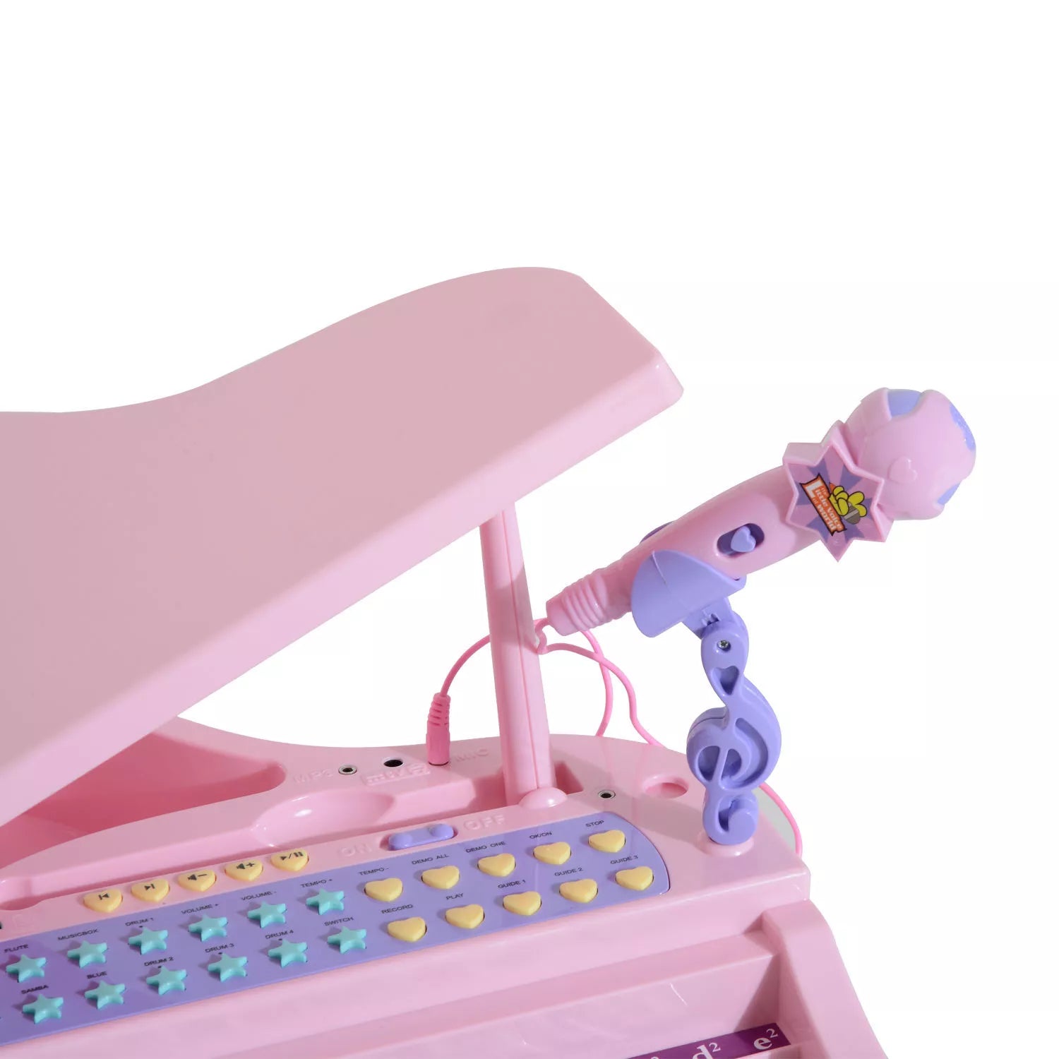 Vaikams skirtas klavišinis instrumentas su 37 klavišais, pianinas su taburete ir mikrofonu, LED mokymo režimu, įrašymo funkcija, muzikos instrumentas 3–6 metų vaikams, Rožinis