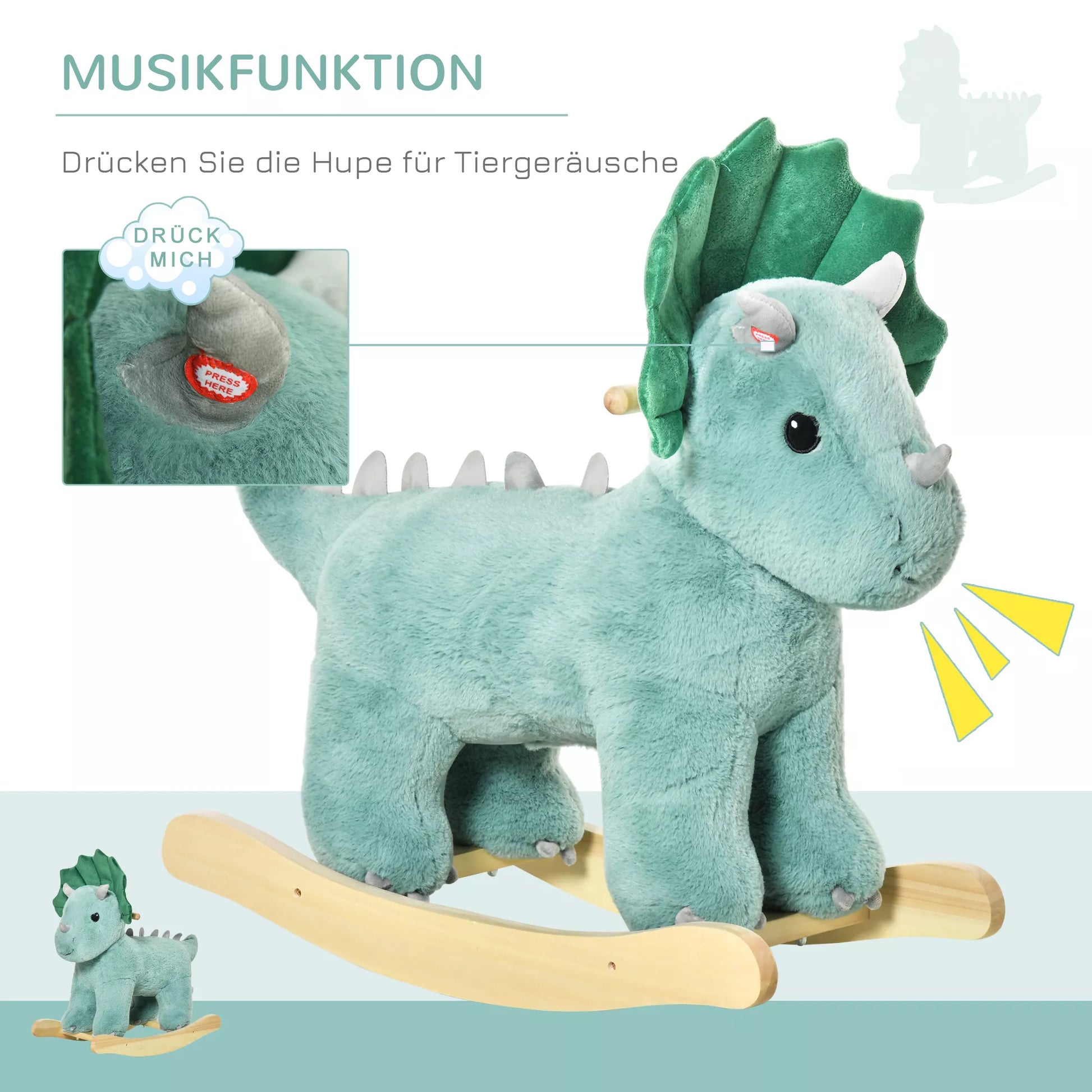 - ✔ Medinis pagrindas turi dvi lenktas bėgelius, leidžiančius žaislui svyruoti pirmyn ir atgal