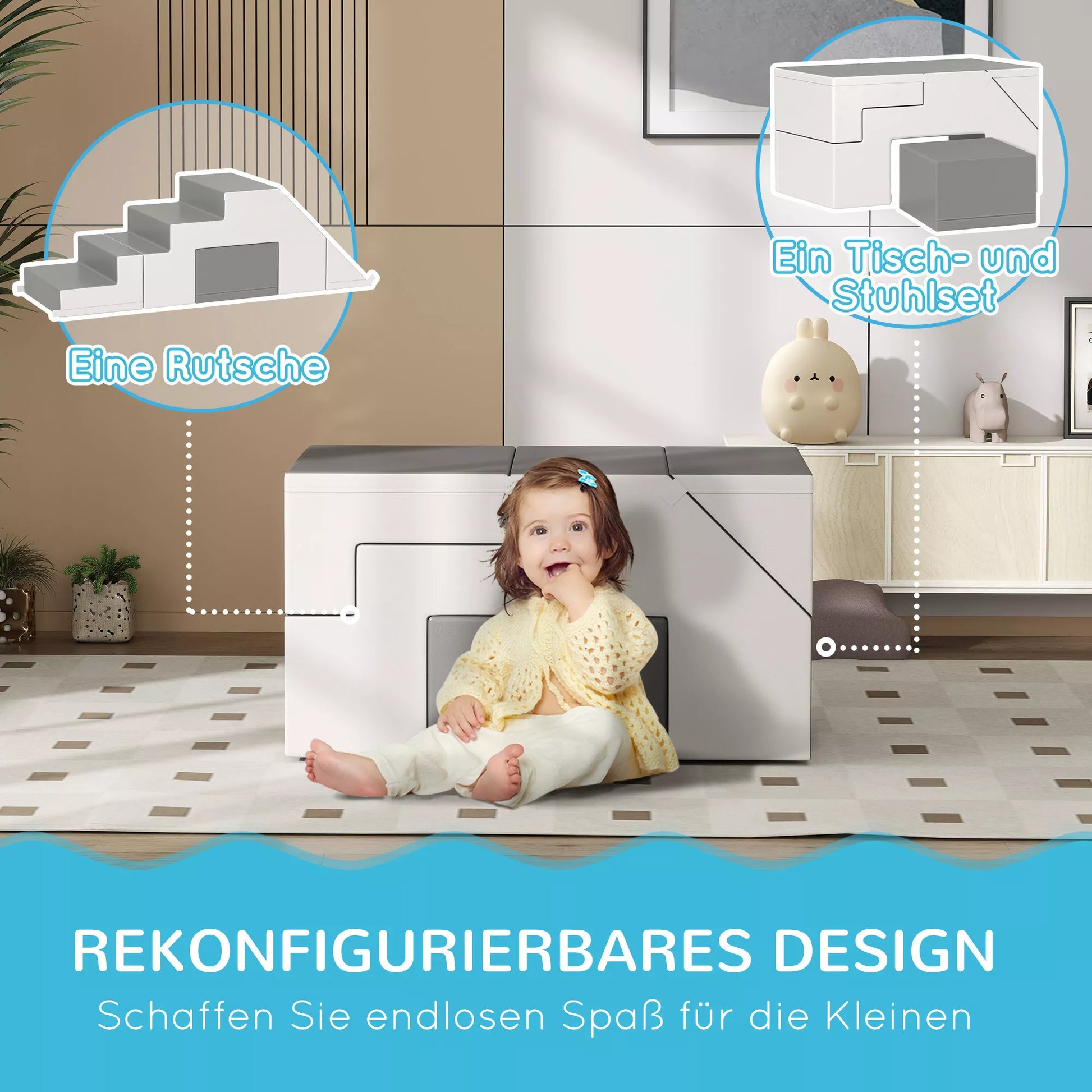 - ✔ Minkštųjų blokelių rinkinys skatina motorinę raidą per laipiojimą, ropojimą ir čiuožinėjimą