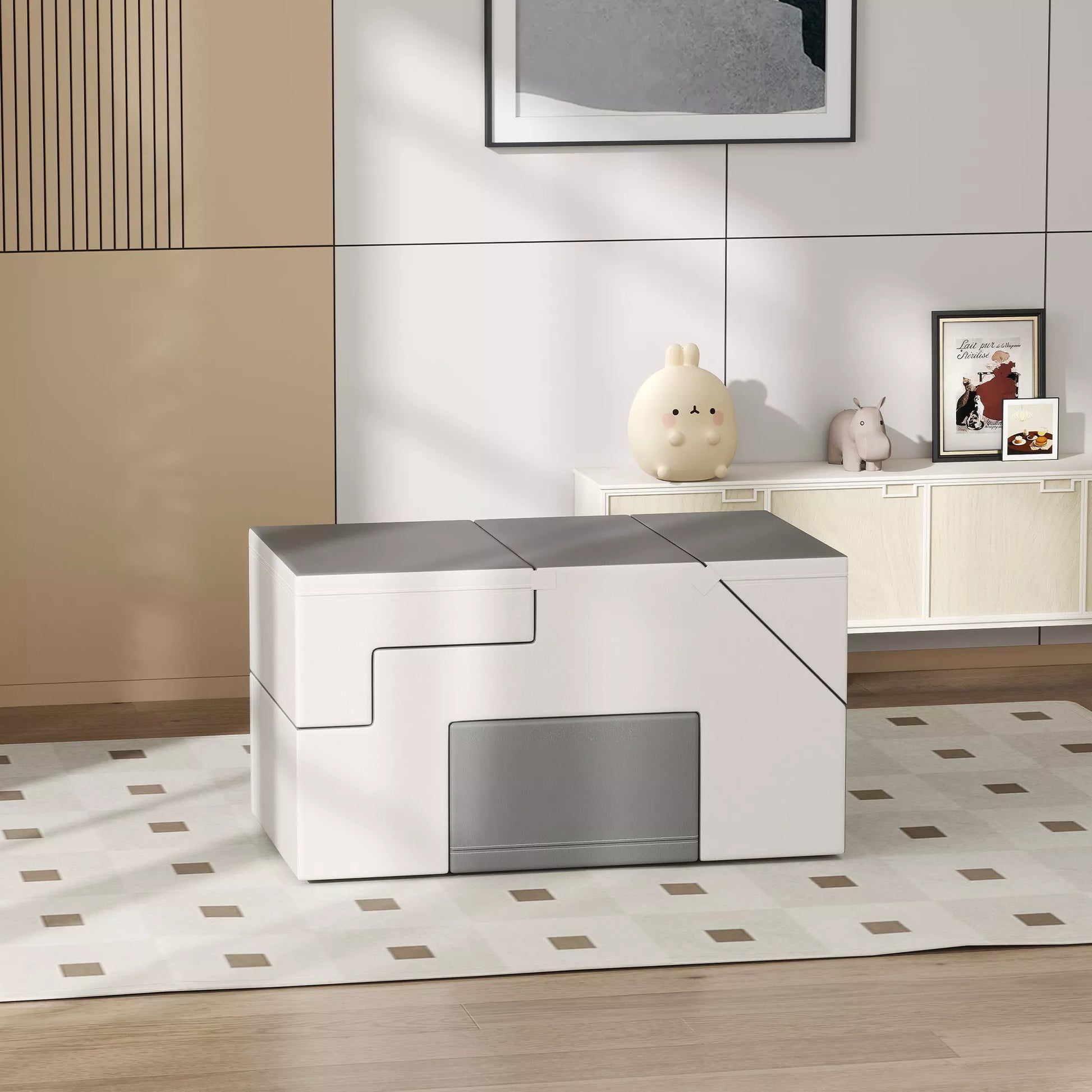 - ✔ Minkštas dirbtinės odos dangalas ant putplasčio blokelių praktiškam valymui