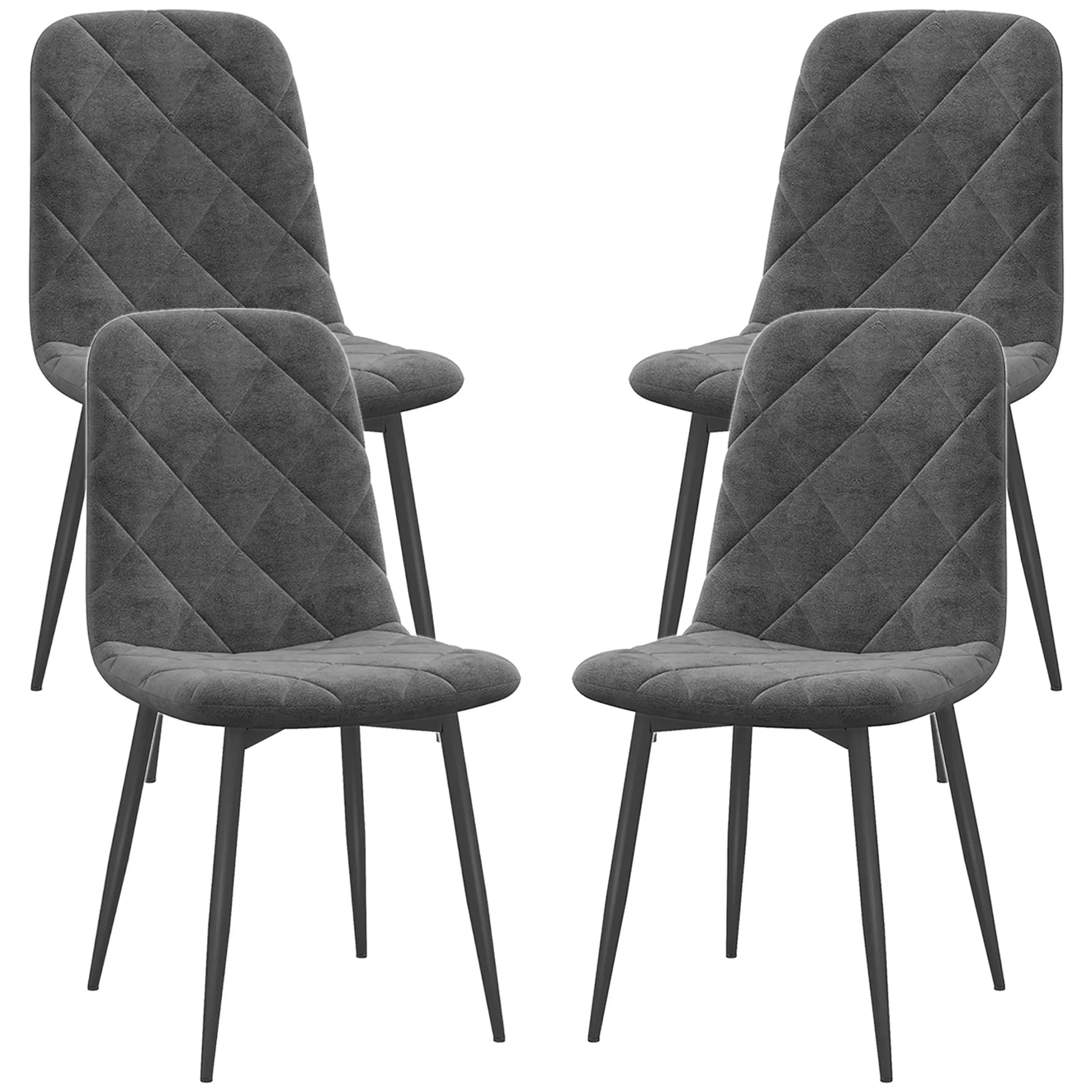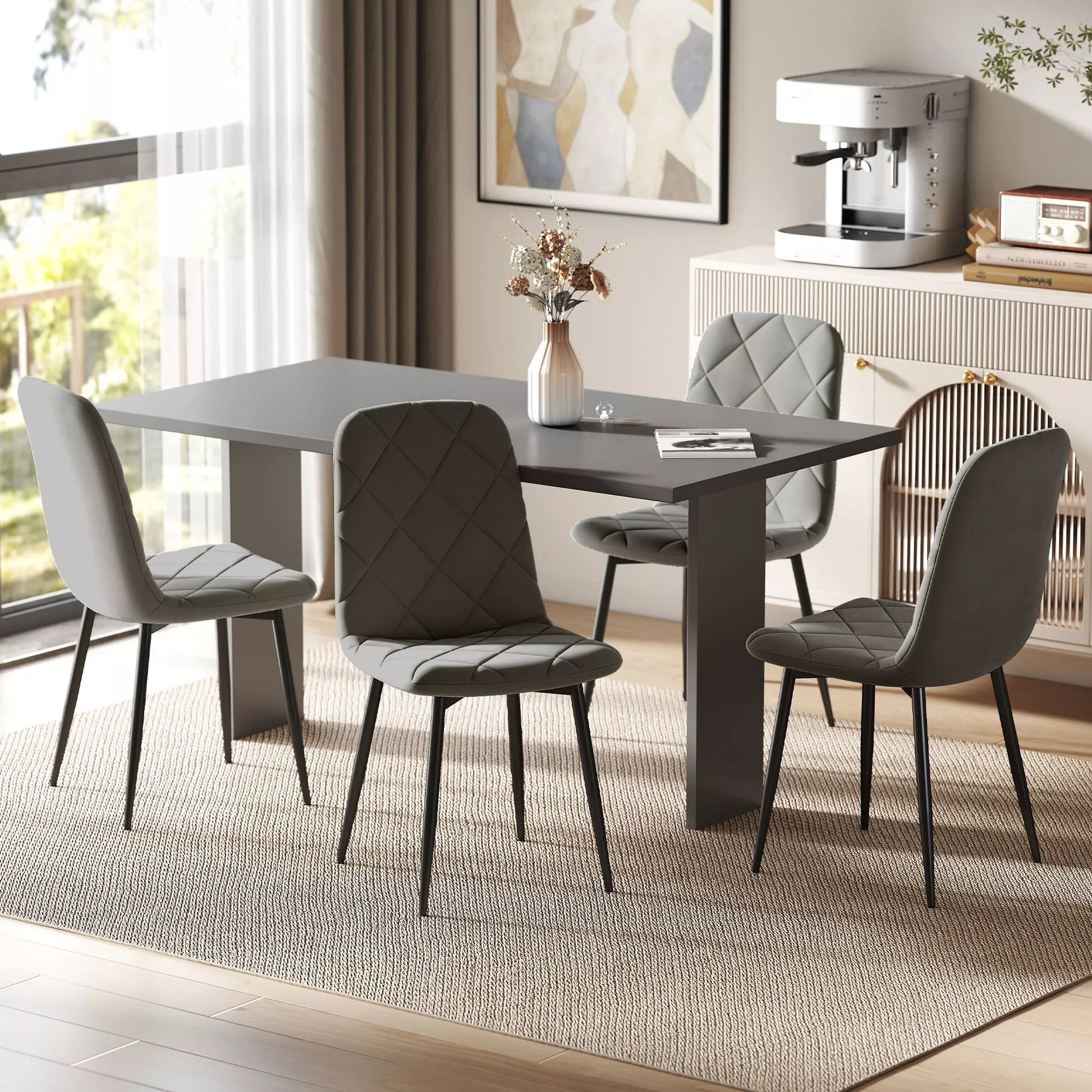 Valgomojo kėdės, 4 vnt. komplektas virtuvės kėdžių su atlošu, aksominės išvaizdos, minkštos kėdės su metalinėmis kojomis, prie valgomojo stalo, pilkos