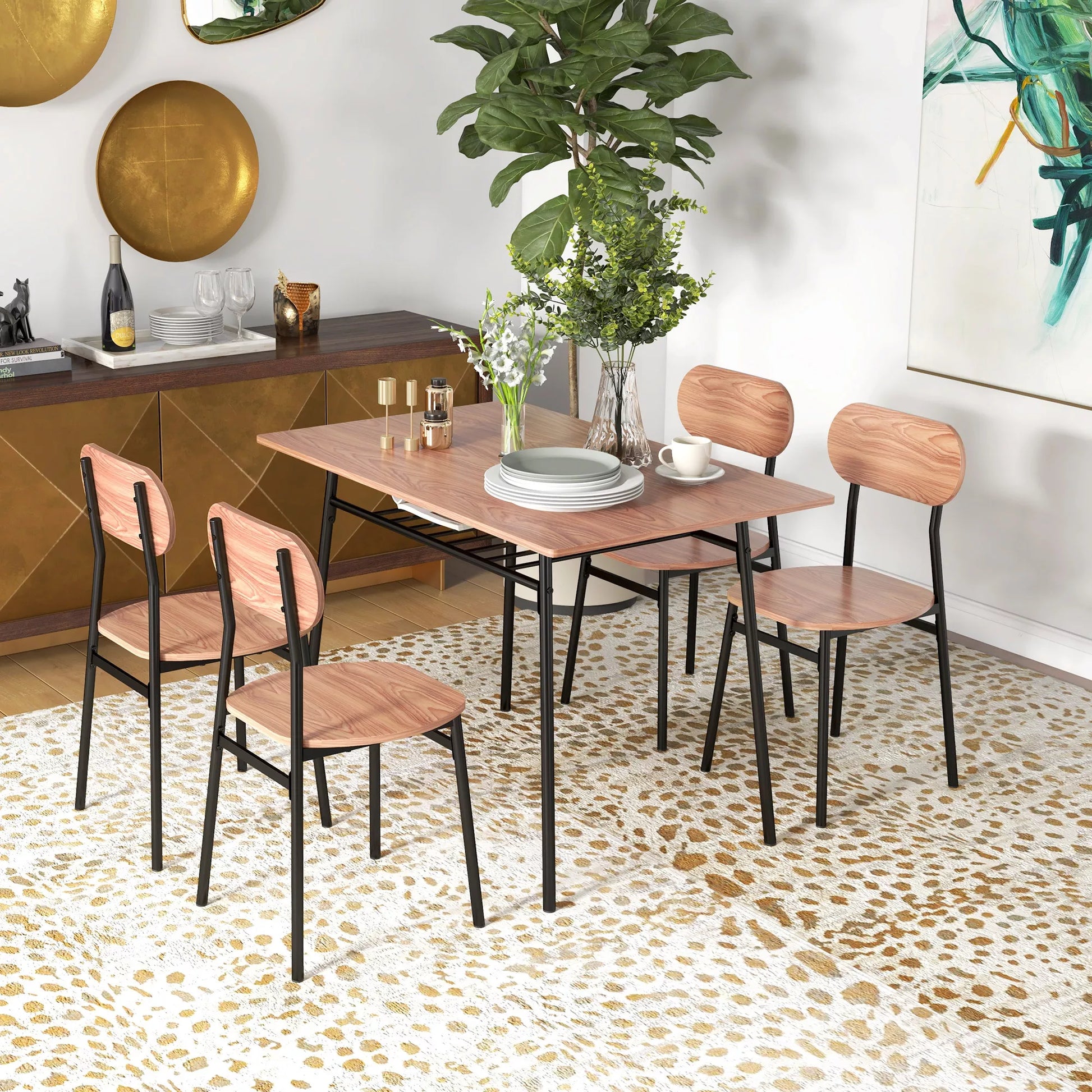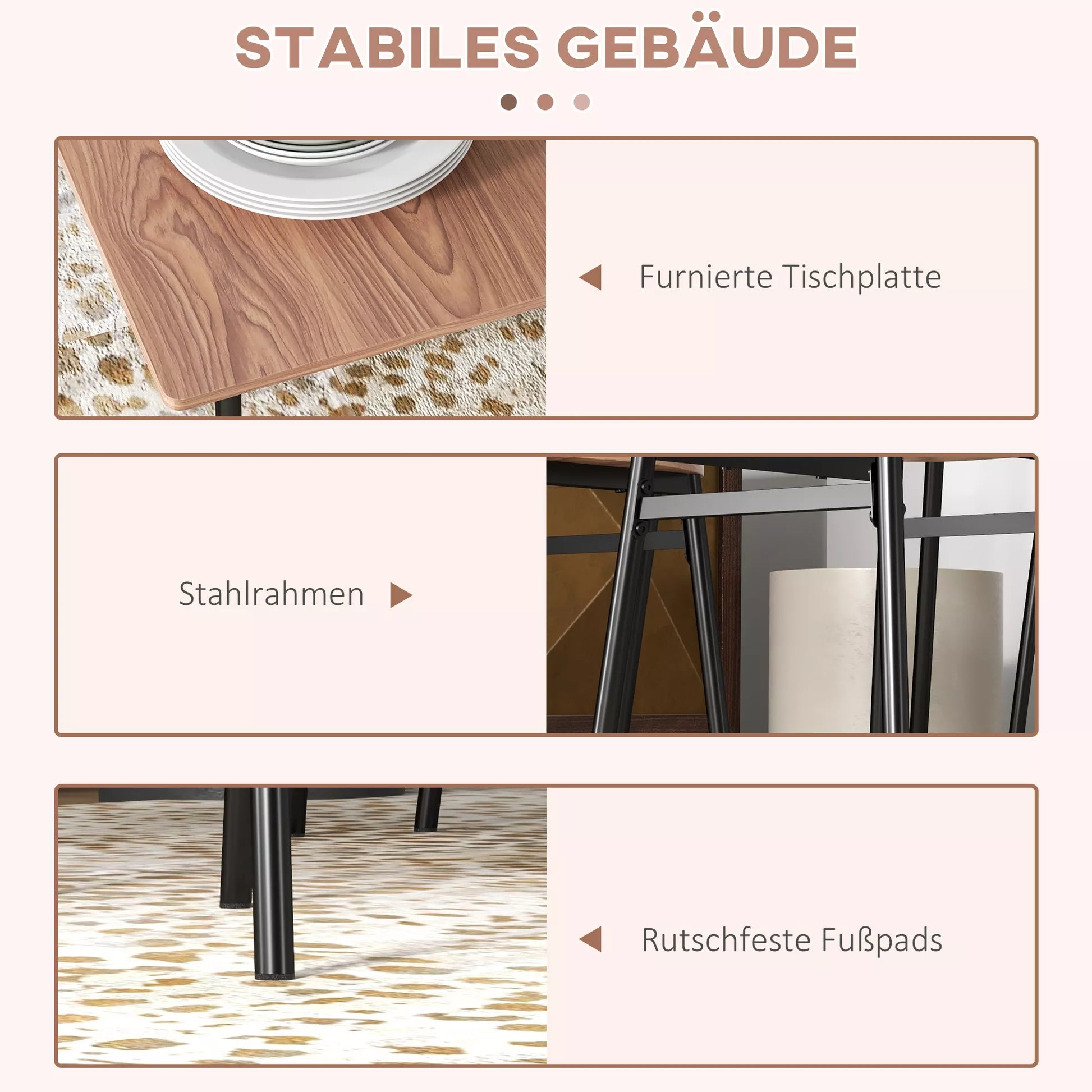 Valgomojo stalas su kėdėmis, pramoninio dizaino, 110 cm x 70 cm x 75 cm, rudas