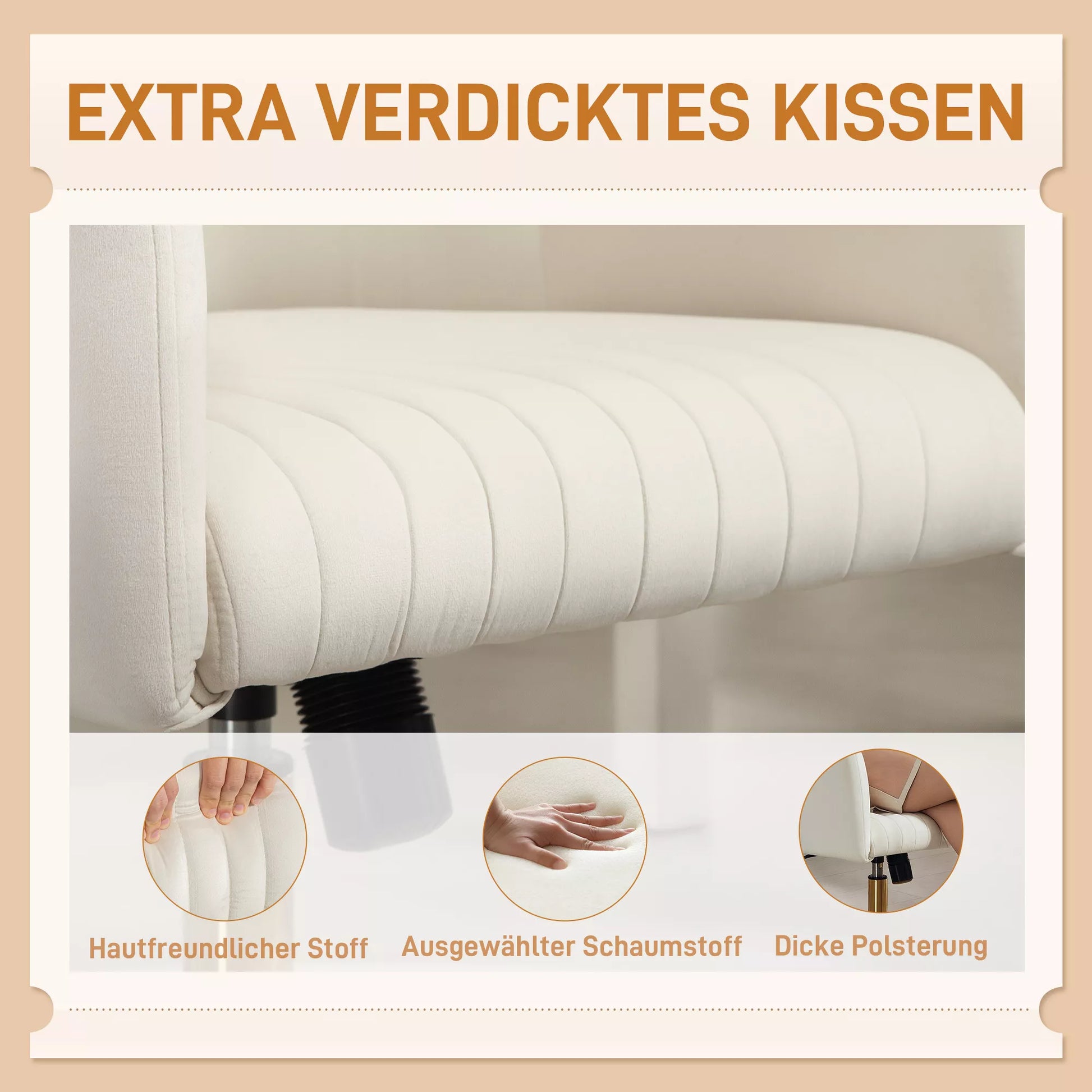 Sukama biuro kėdė su aksomo imitacijos apmušalu, aukščio reguliuojama, su pakreipimo funkcija, kreminės baltos spalvos