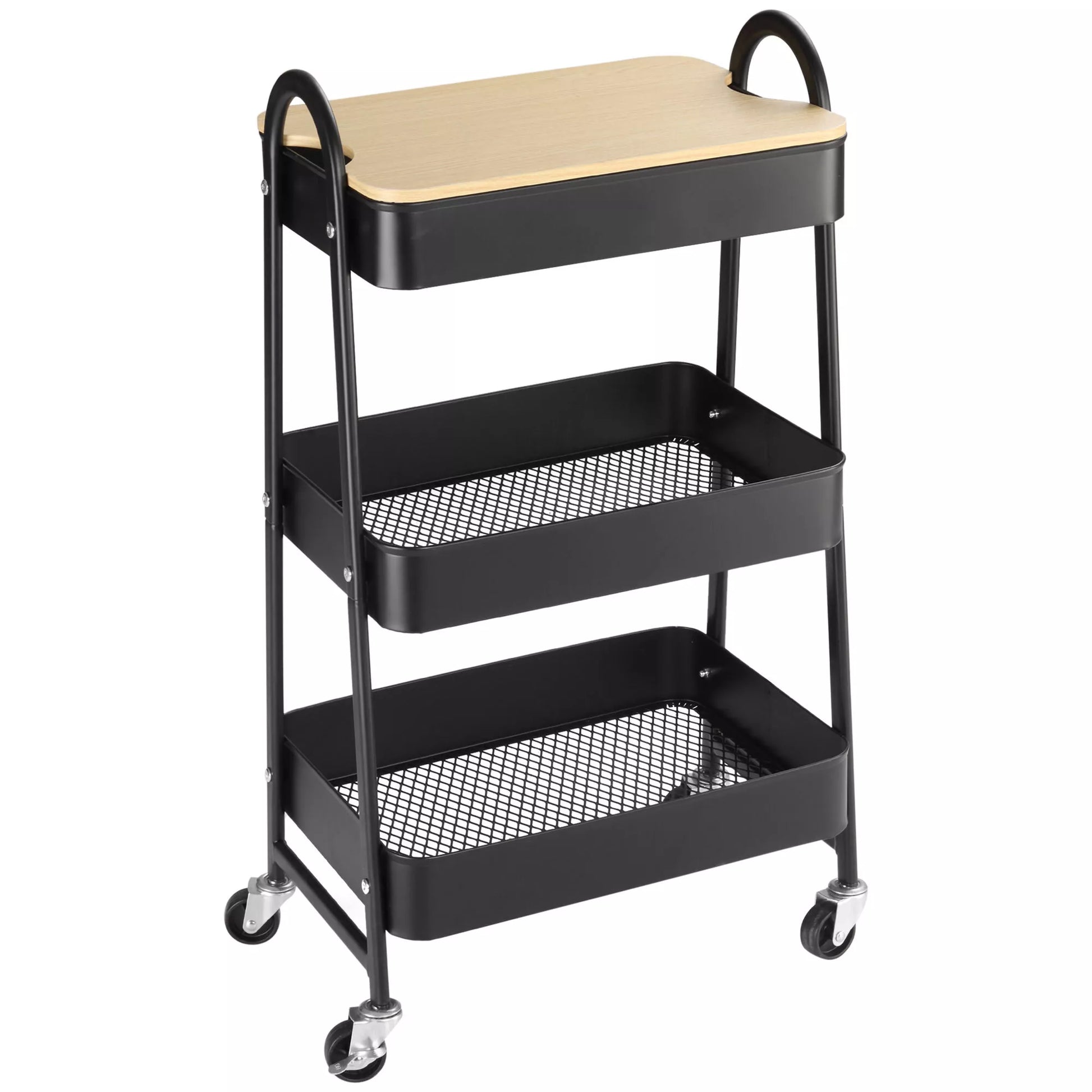 Vežimėlis, serviravimo vežimėlis su 3 krepšio lentynomis, metalas, plastikas, juodas