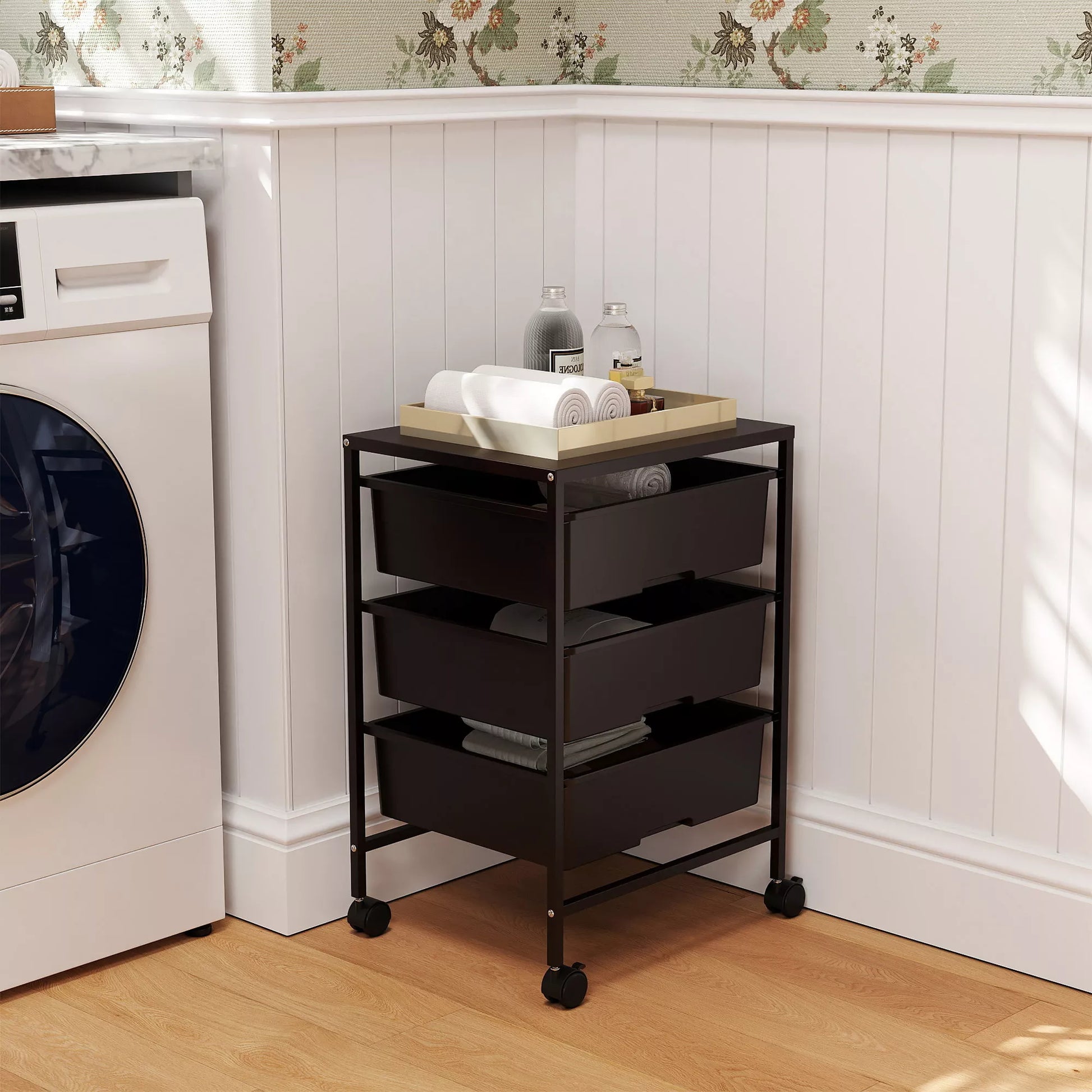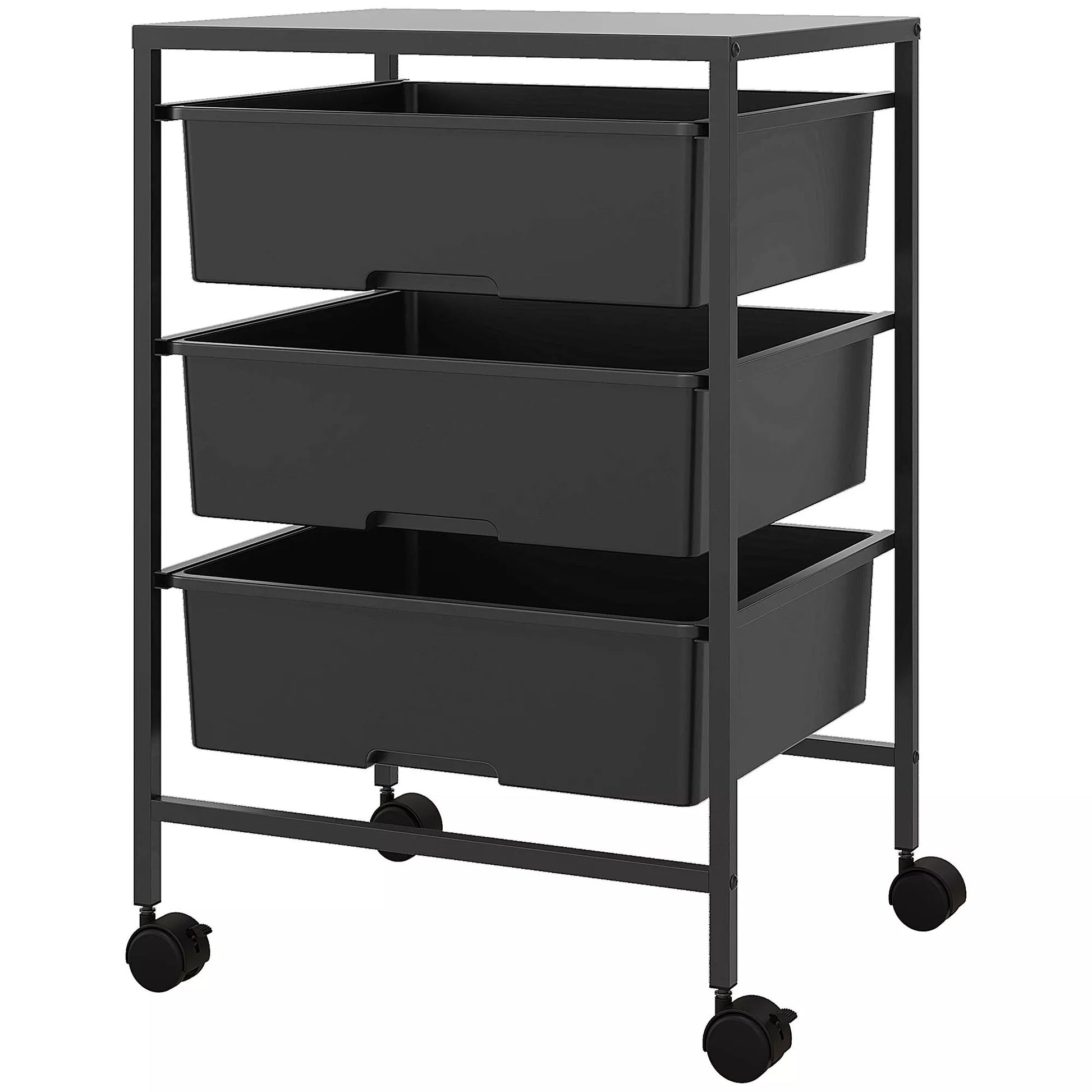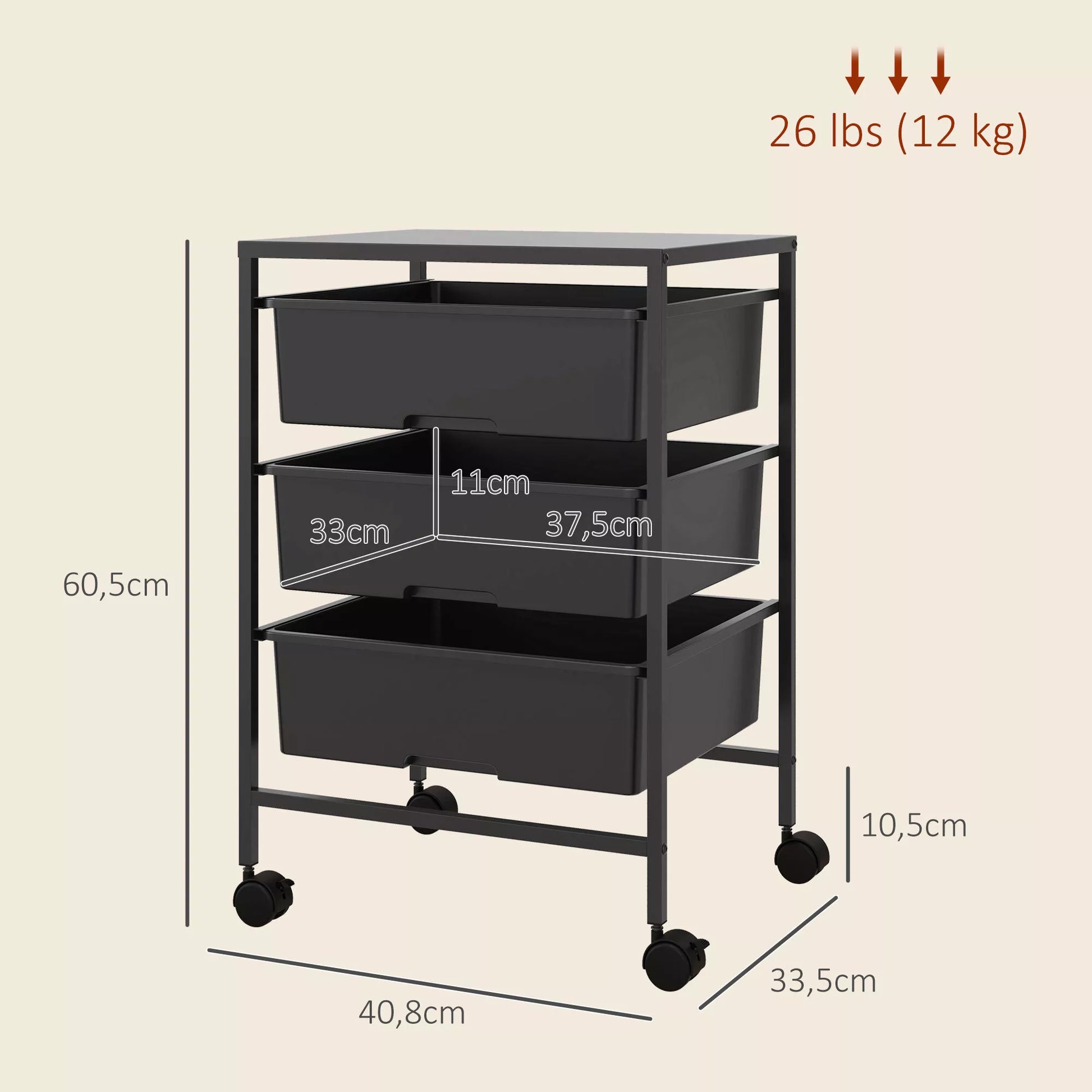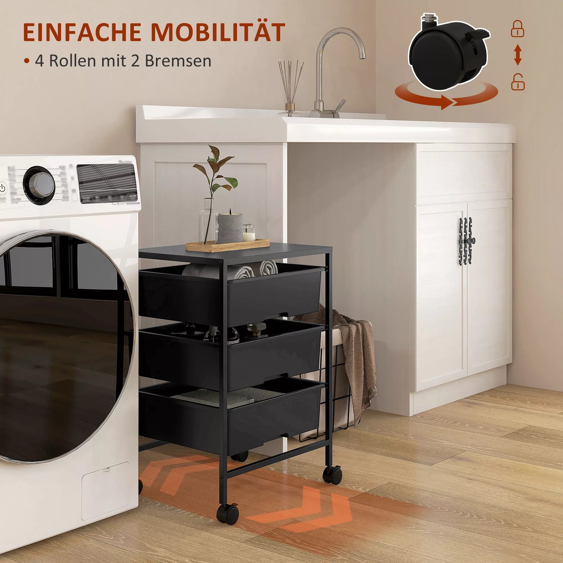 Vežimėlis su ratukais, 3 krepšiai transportavimui ir laikymui, virtuvės vežimėlis, 40,8 ilg. x 33,5 plat. x 60,5 aukšt. cm, juodas