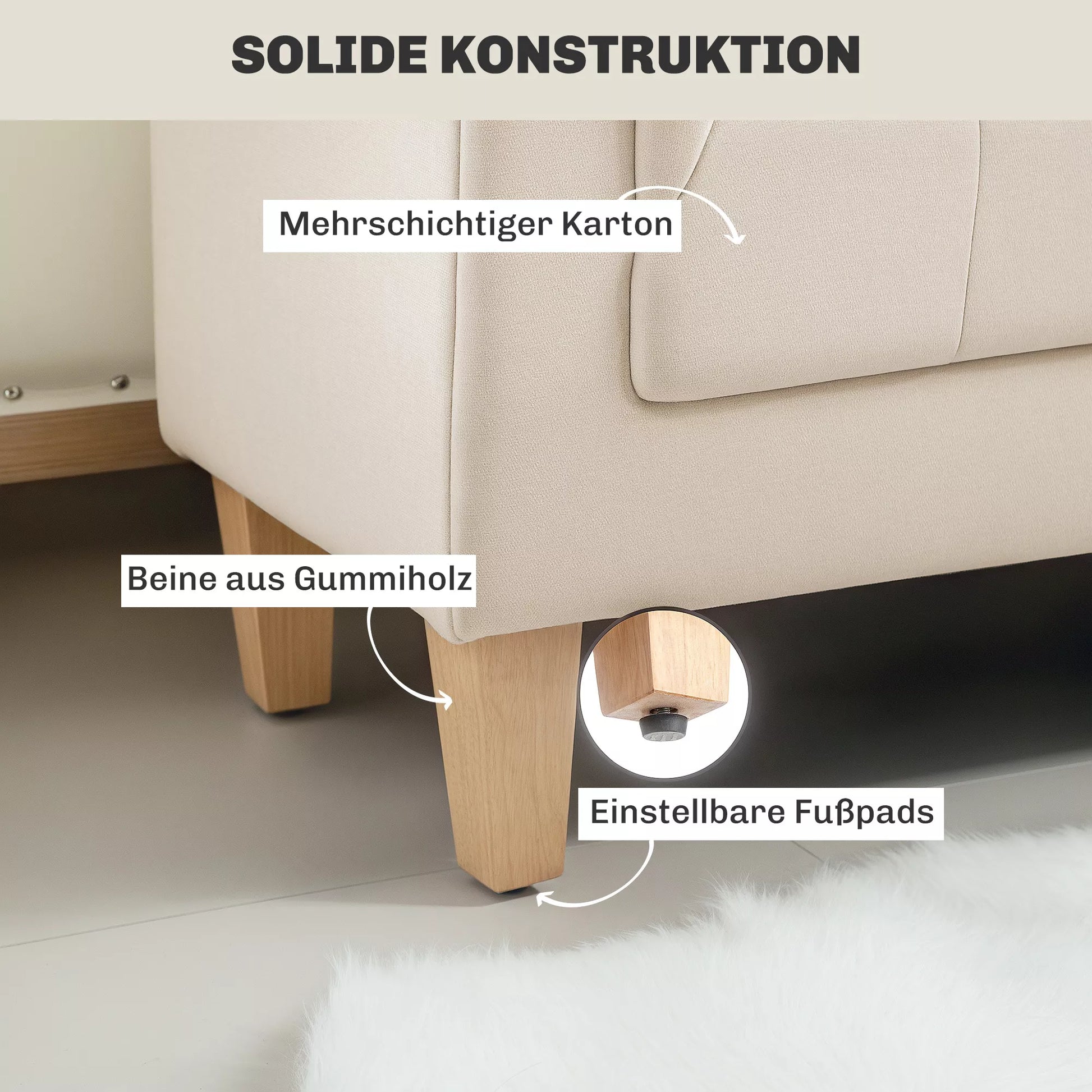 - ✔ Daugiasluoksnių plokščių rėmas ir kaučiukmedžio medienos kojelės su reguliuojamomis pėdelėmis užtikrina atramą ir stabilumą