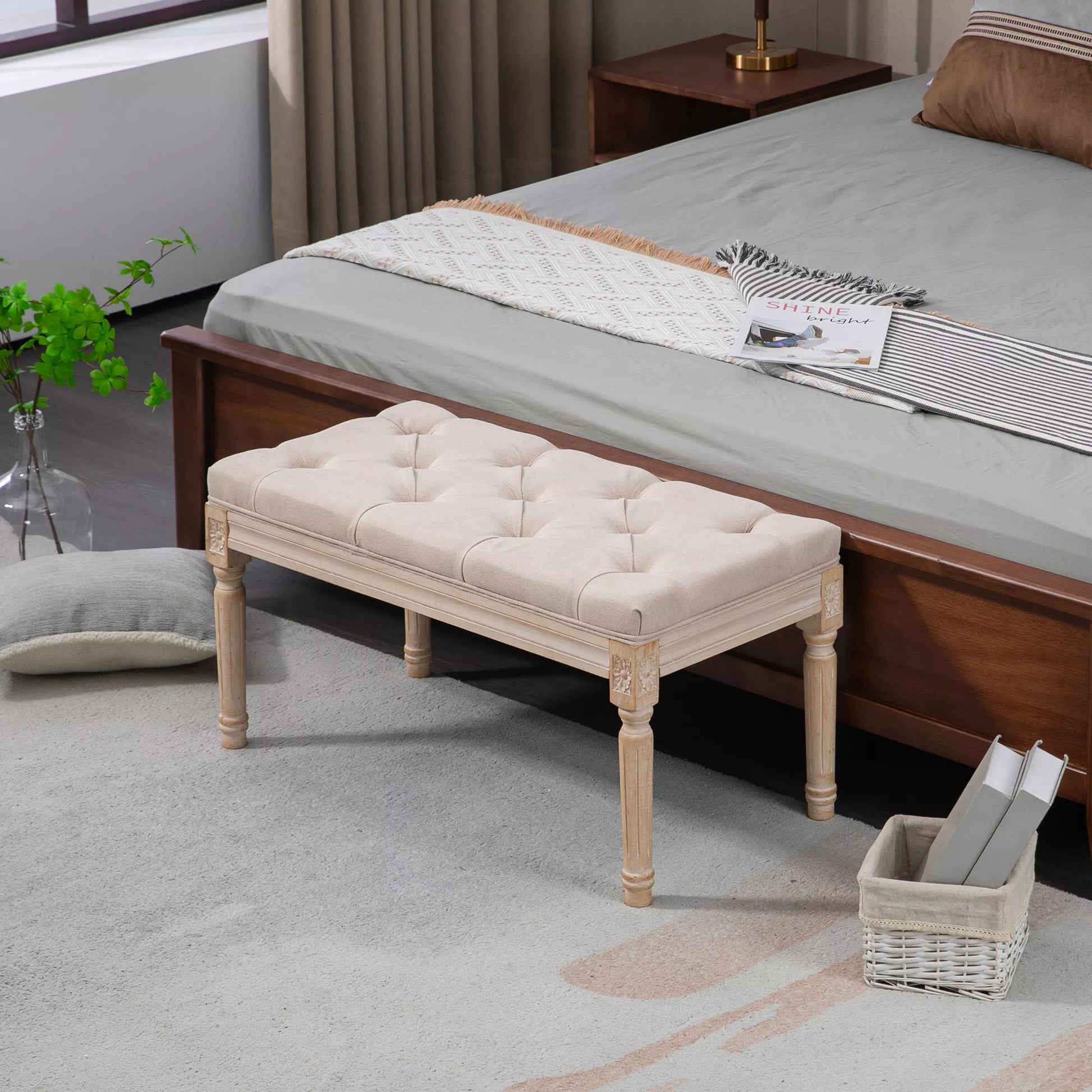 Ar ieškote elegantiško ir praktiško suoliuko? Jūs jį radote su šiuo vintažinio stiliaus suoliuku. Jis gali būti naudojamas kaip sėdimasis suoliukas, lovūgalio suoliukas arba prieškambario suoliukas ir puikiai tiks jūsų svetainėje, valgomajame, miegamajame ar prieškambaryje. Suoliukas apmuštas kvėpuojančiu lininės išvaizdos audiniu ir turi storą paminkštinimą, užtikrinantį malonų sėdėjimą. Padarykite savo namus jaukesnius su šiuo suoliuku.