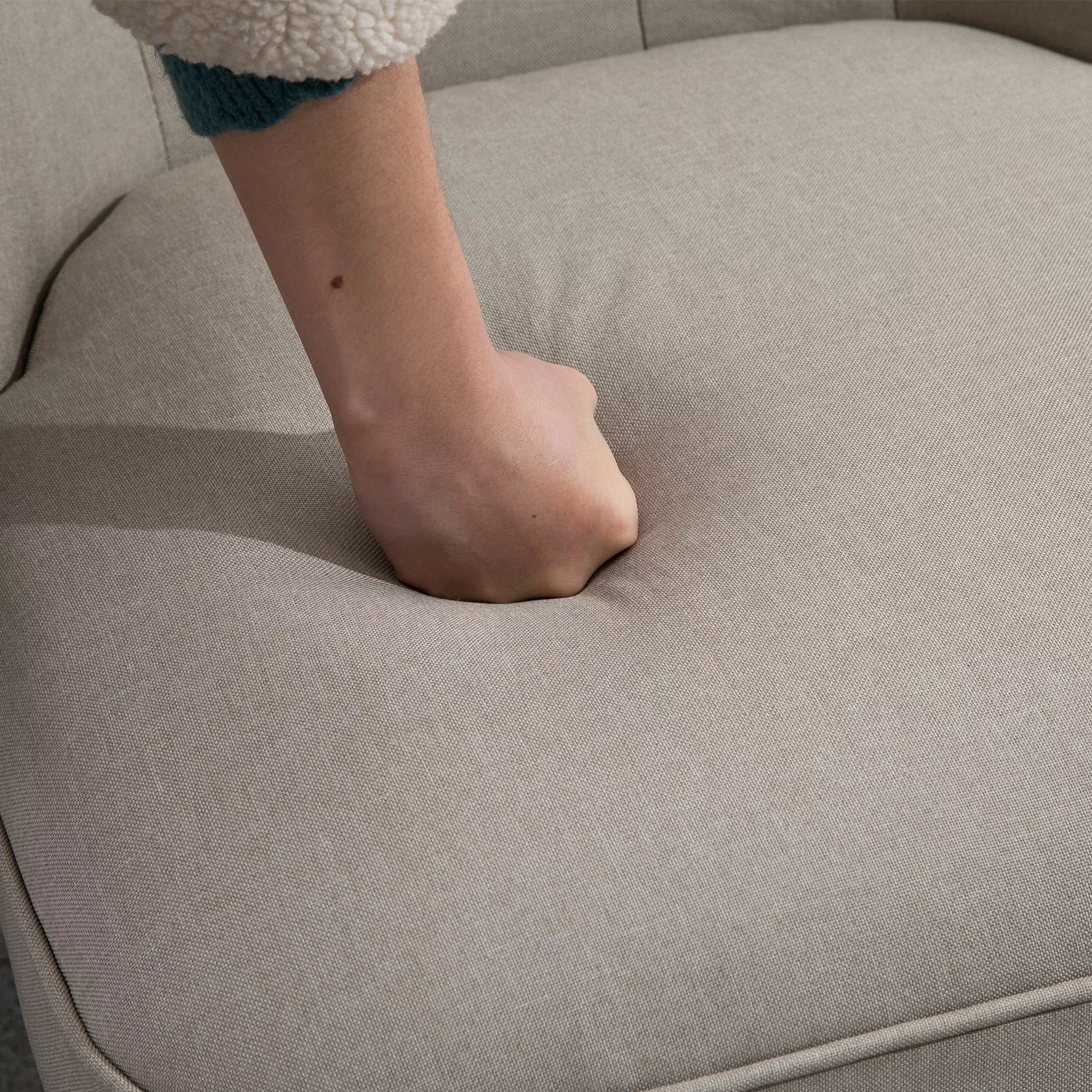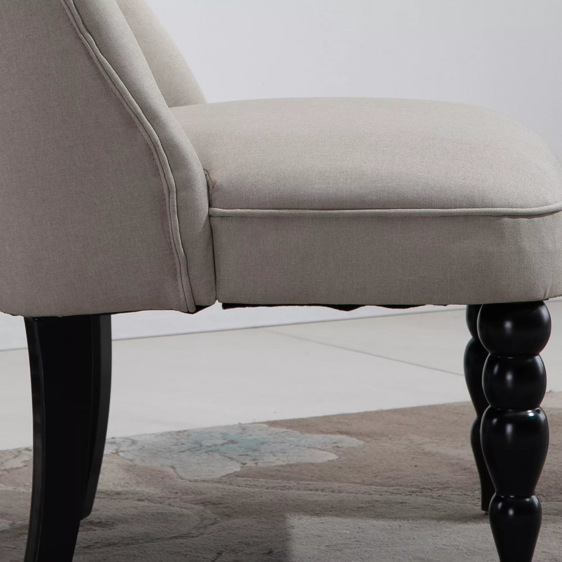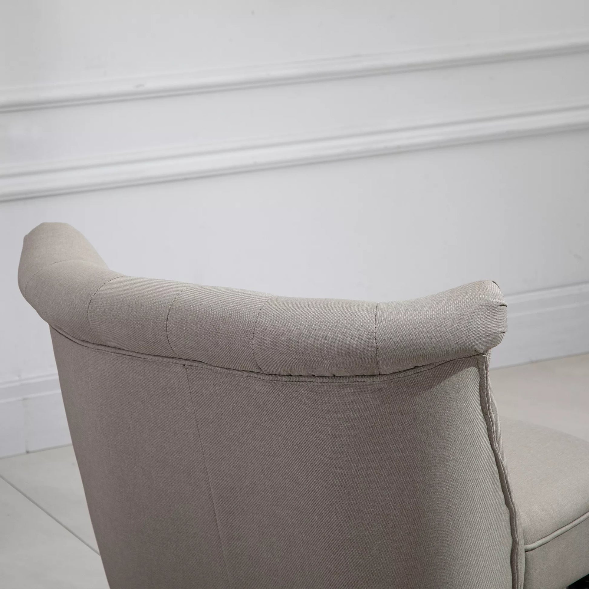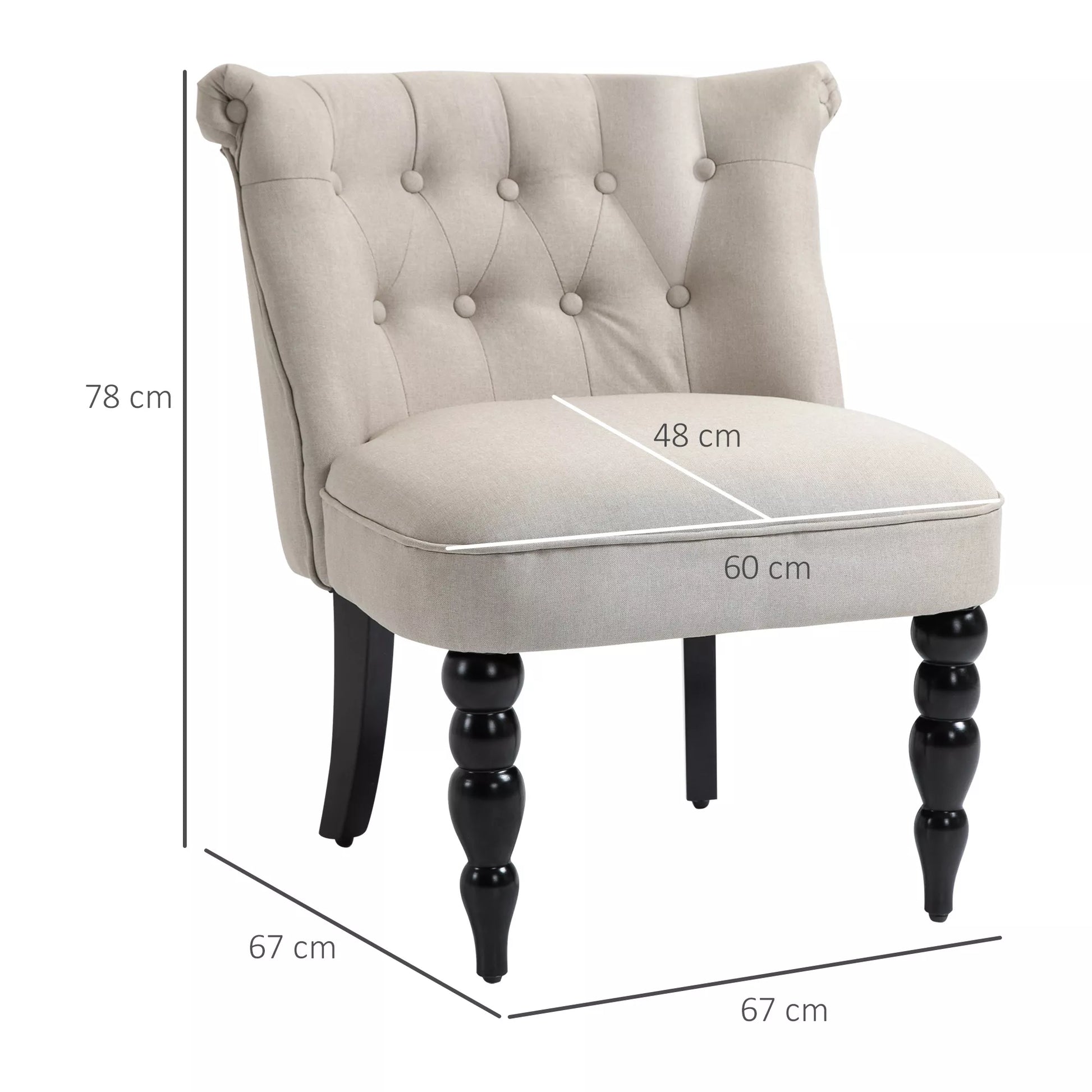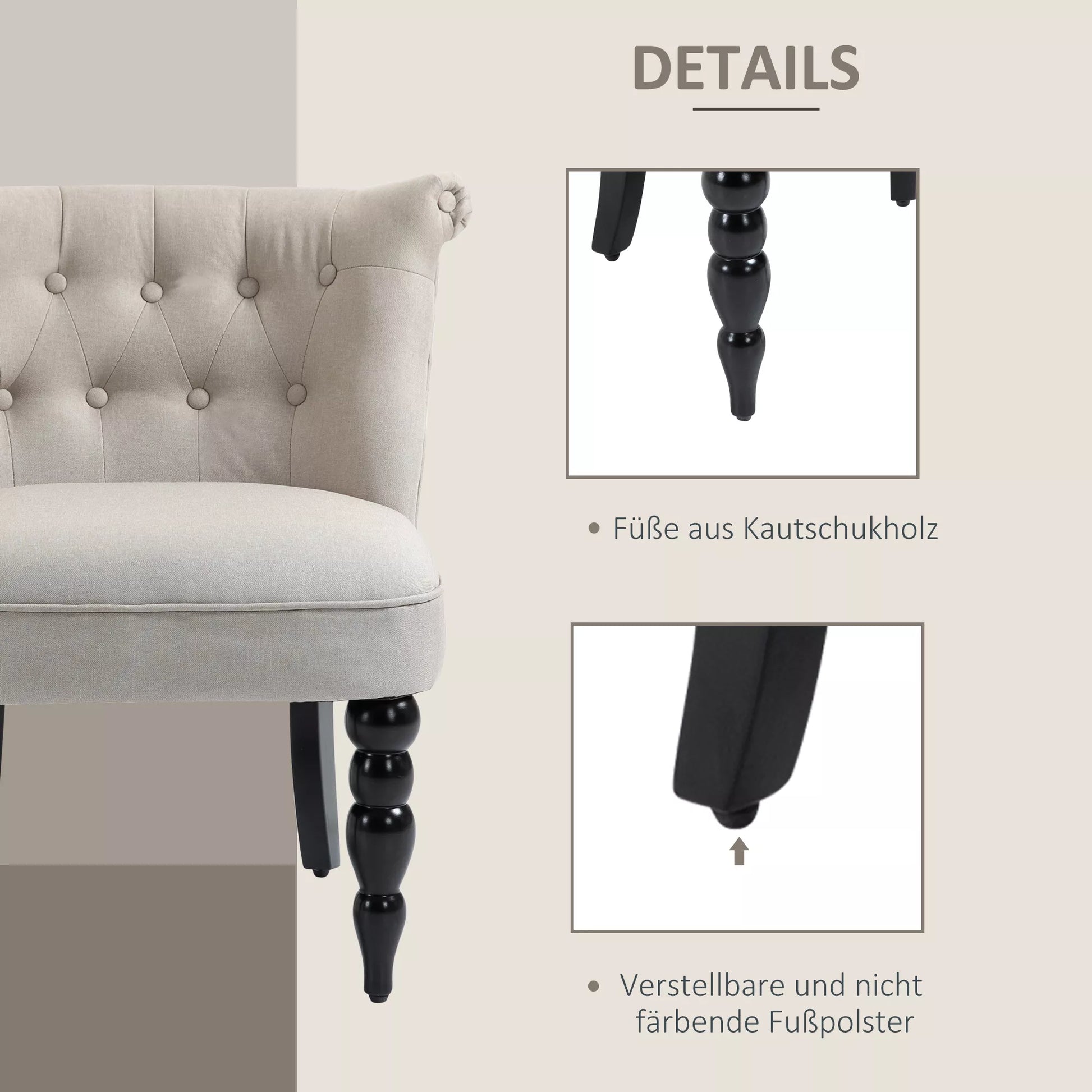 Vintažinis relaksacinis krėslas, poilsio krėslas, minkštas krėslas, valgomojo kėdė, lininis apmušalas, medinis rėmas, smėlio+juoda spalva 67 x 67 x 78 cm