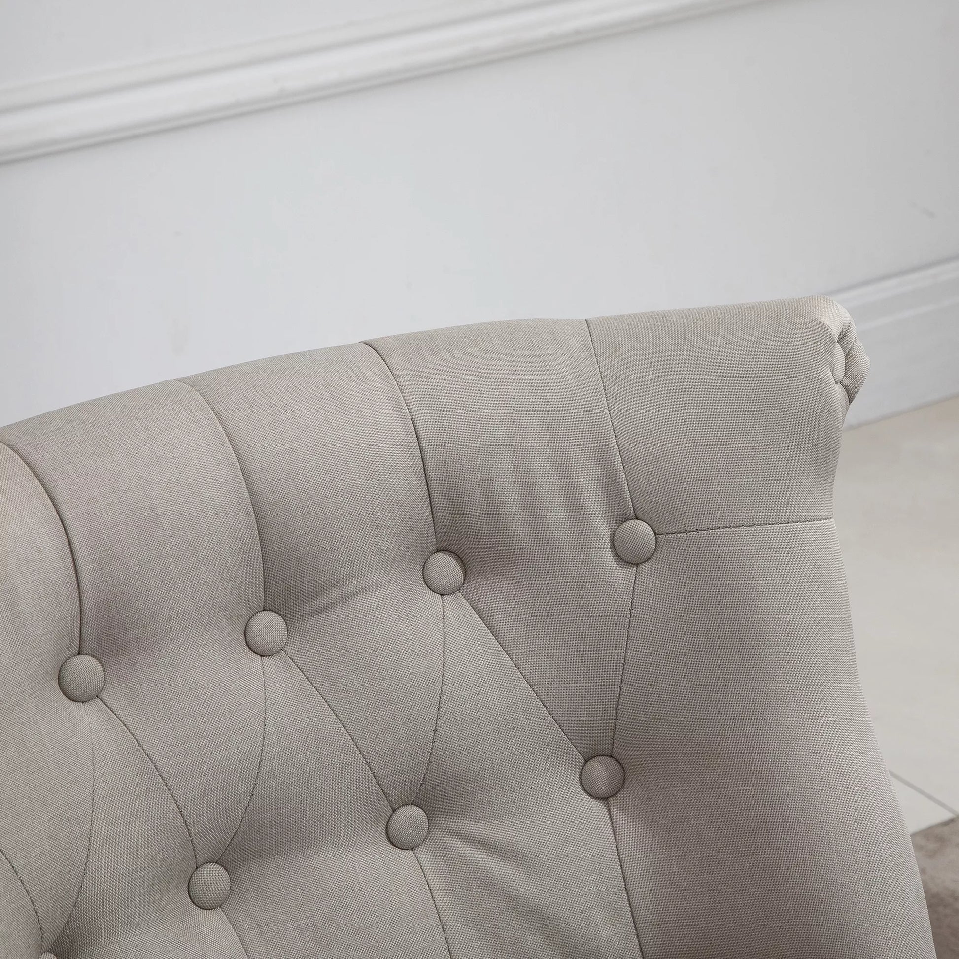 - ✔ Vintažinio stiliaus kėdė su sagčių dizainu, lenktu atlošu ir apvaliomis kojomis