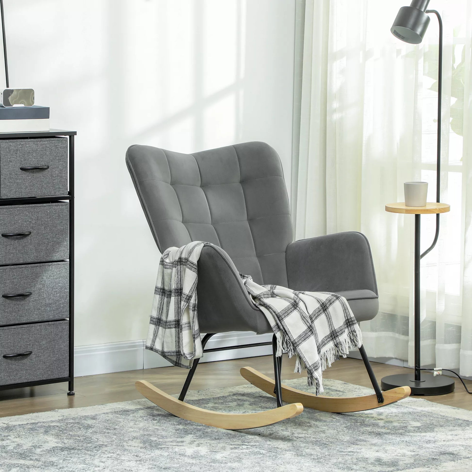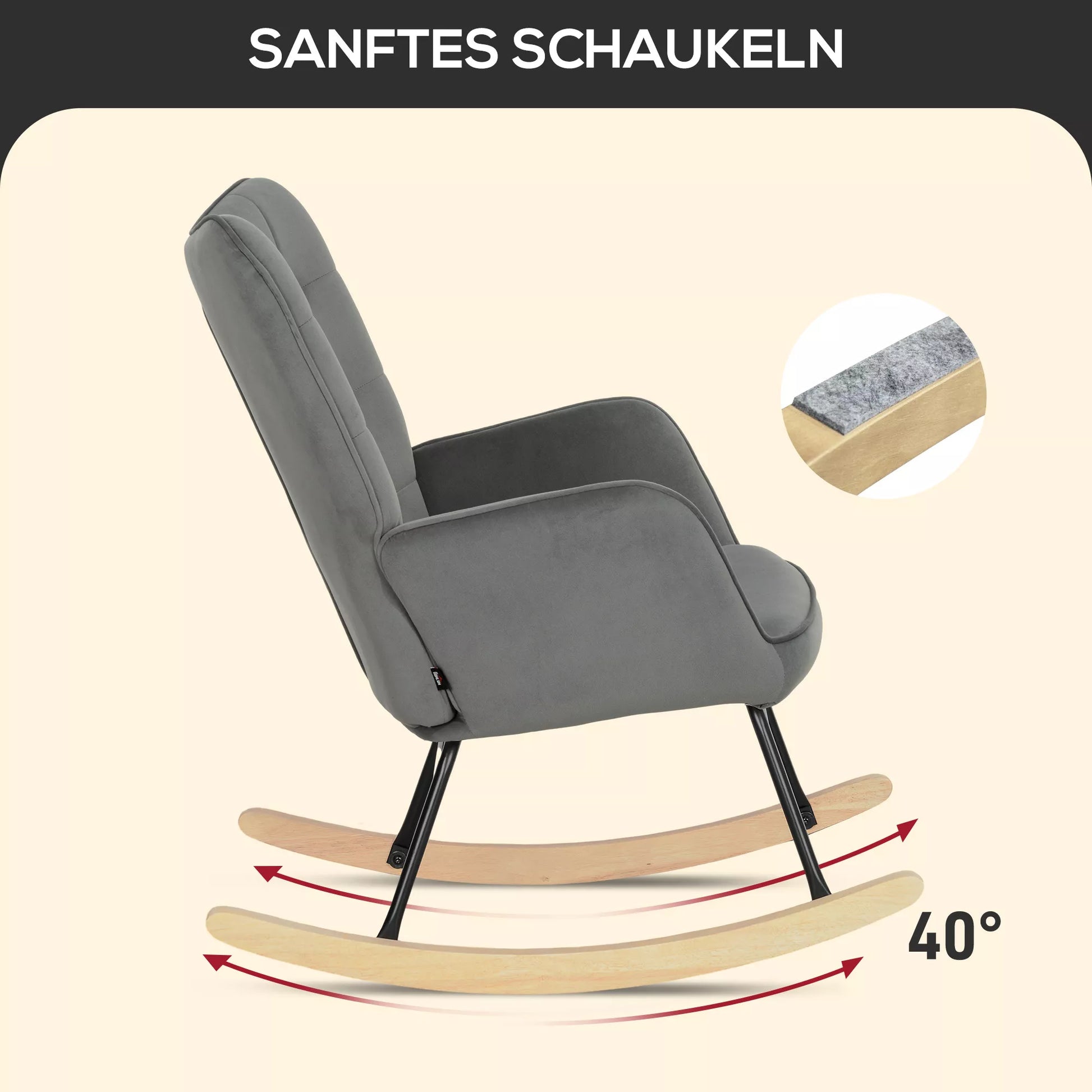 Vintažinė supamoji kėdė, išlenkti bėgeliai, storas paminkštinimas, buko mediena ir plienas, tamsiai pilka
