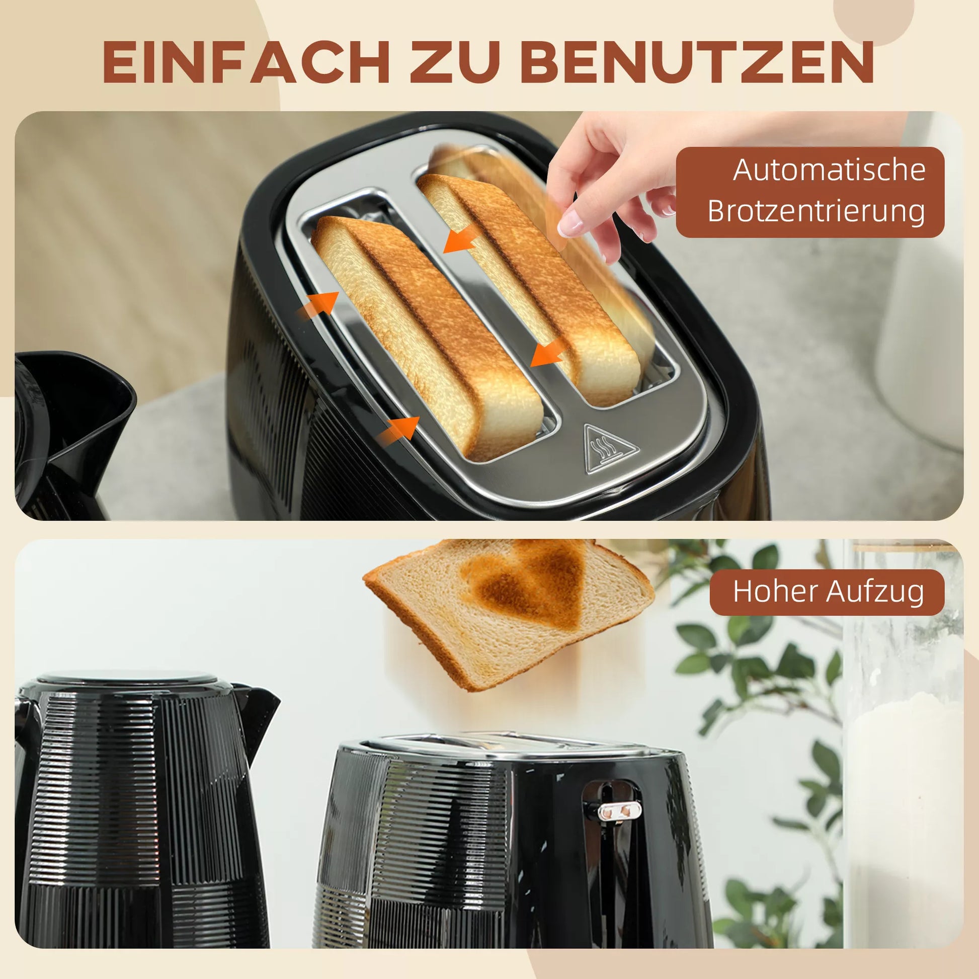 Pagerinkite savo rytą su juodo vandens virdulio ir skrudintuvo rinkiniu. Šis elegantiškas rinkinys apima 2200W vandens virdulį, kuris vandenį užvirina vos per 42 sekundes, ir universalų skrudintuvą su atšildymo, atšildymo funkcijomis ir septyniais skrudinimo lygiais. Abu prietaisai turi automatinę saugos išjungimo funkciją ir yra lengvai naudojami bei valomi, užtikrinant tobulus pusryčius.
