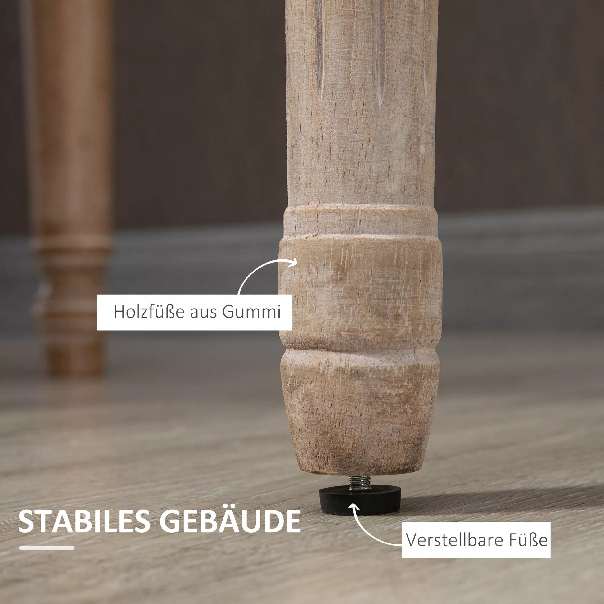 - ✔ Tvirtos medinės kojelės garantuoja aukštą stabilumą