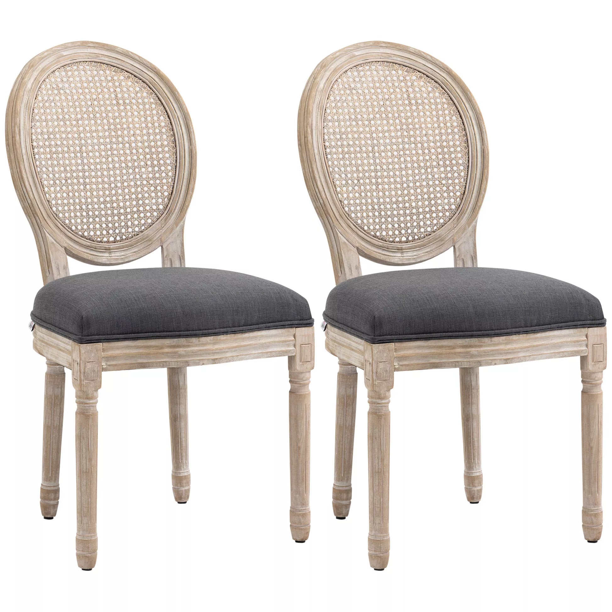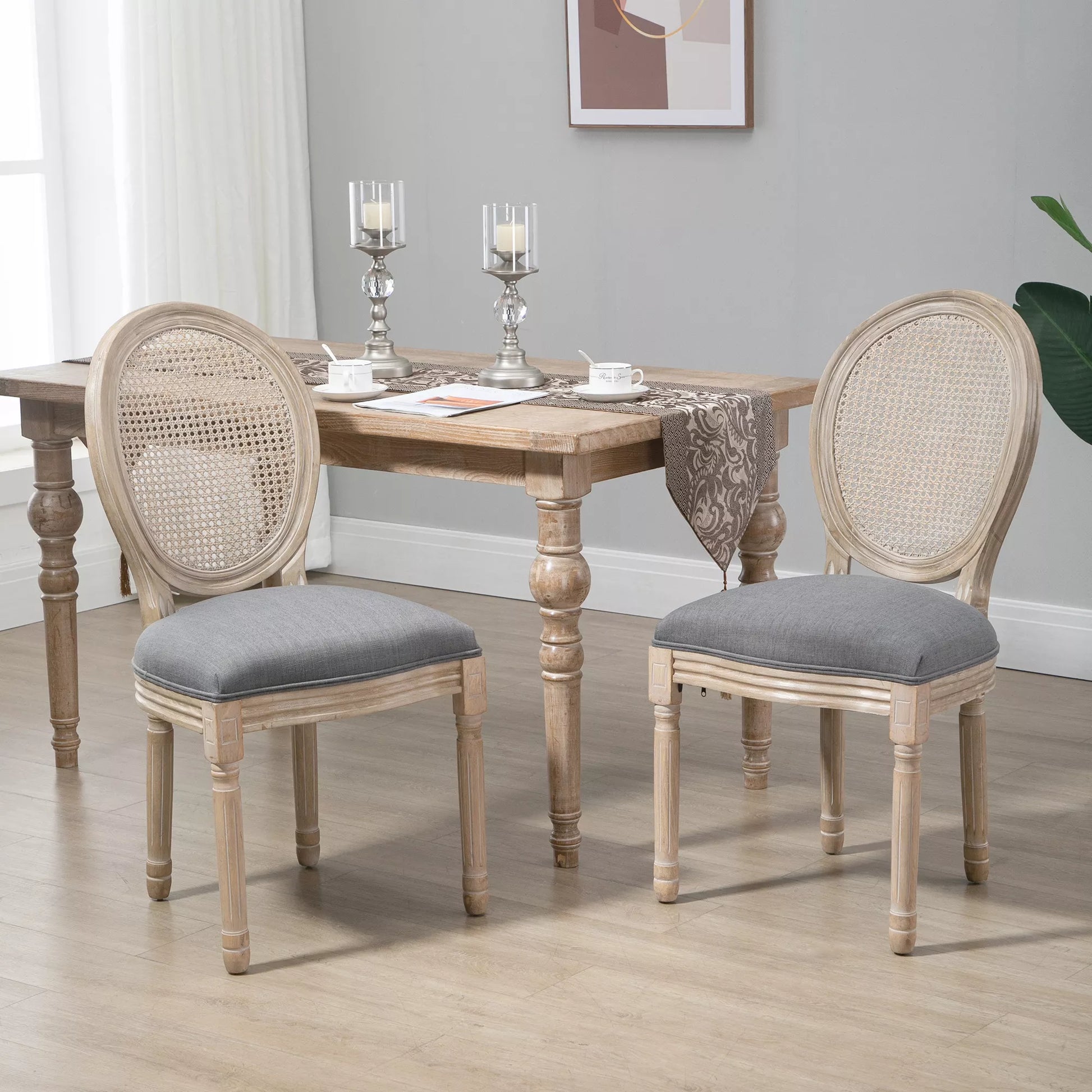 Virtuvės kėdės 2 vnt. komplektas, minkštai apmuštos, vintažinio dizaino, rotango išvaizdos, pilkos
